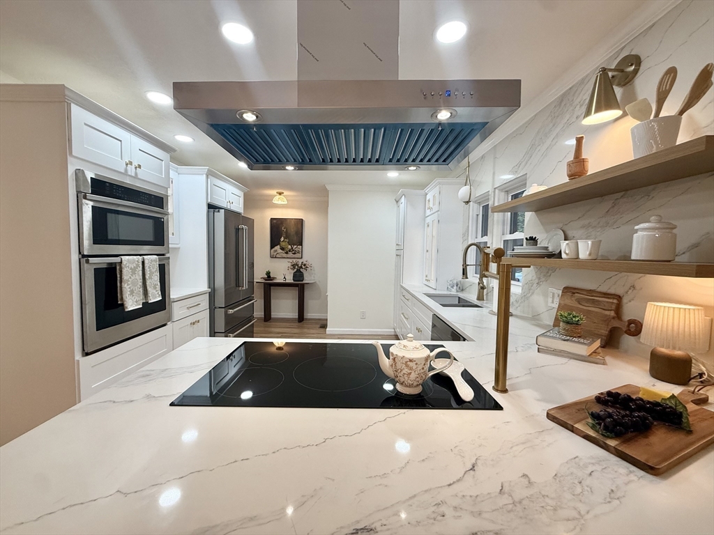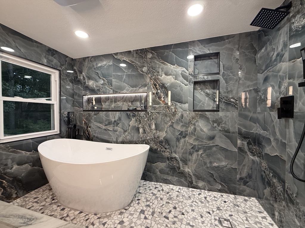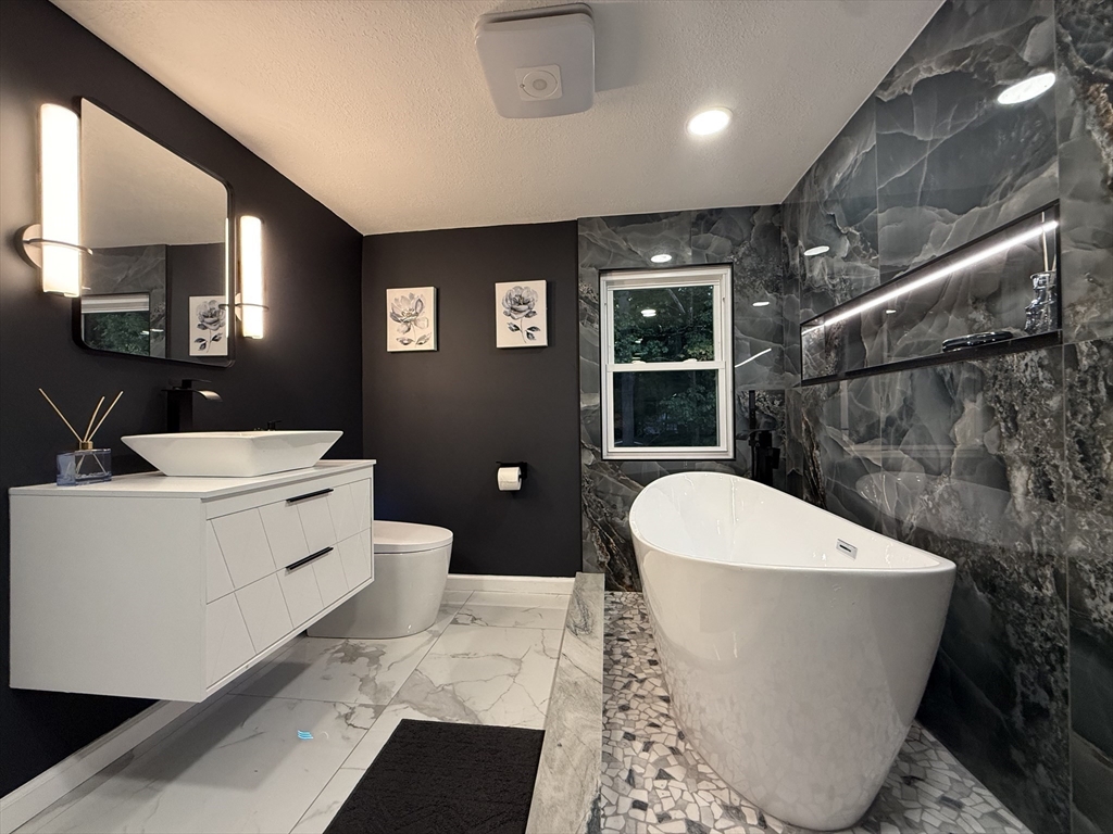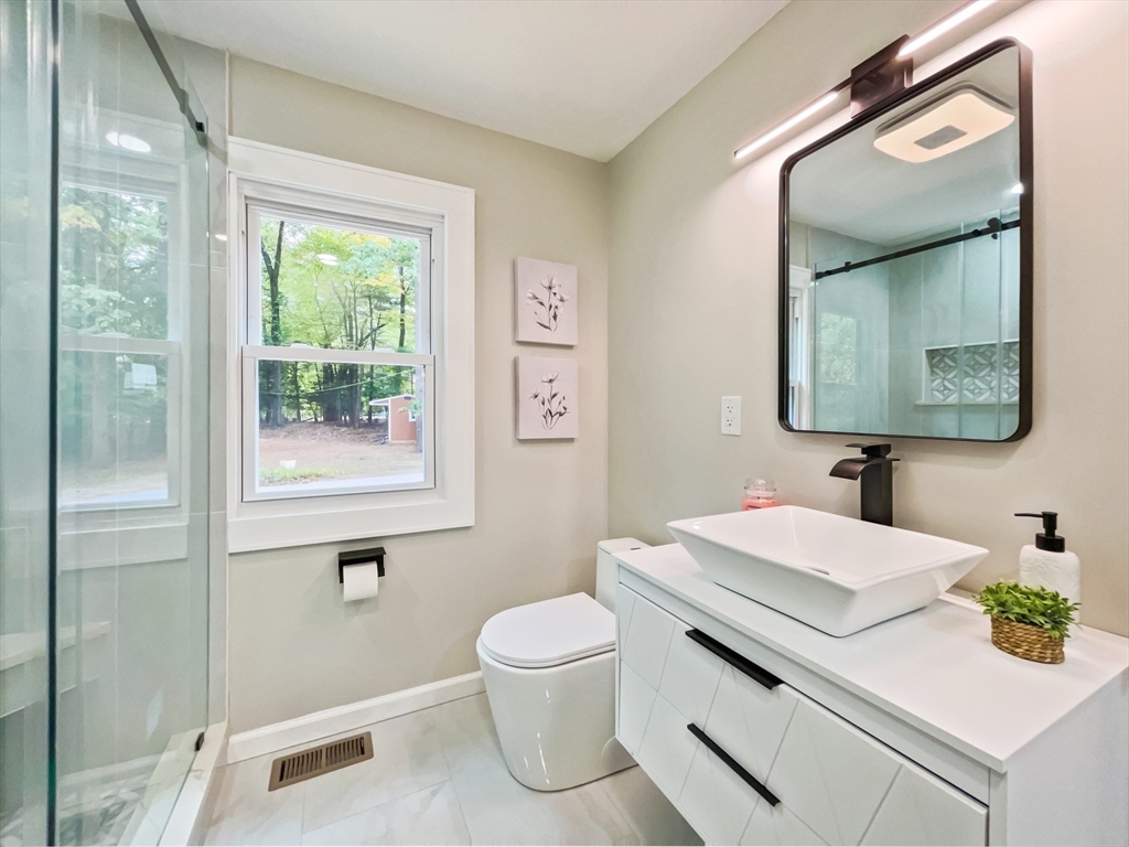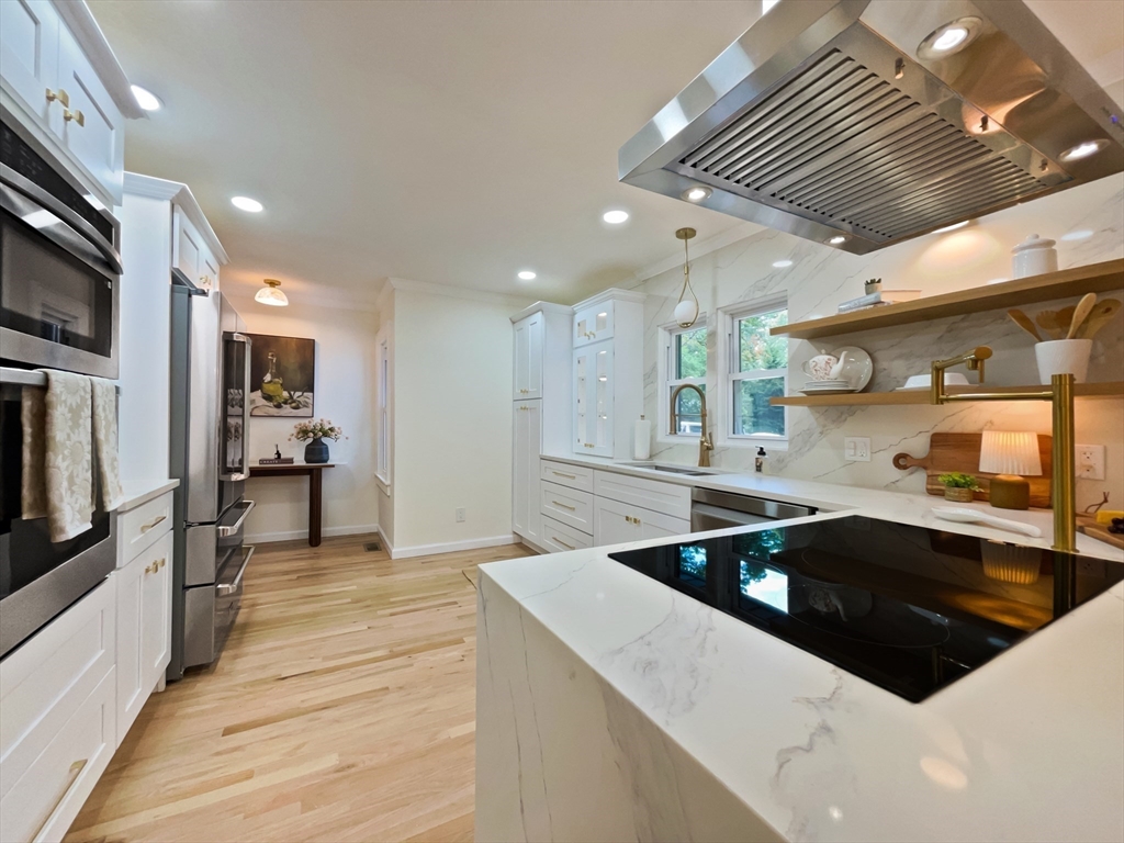 Located in the highly sought-after Colony Hills neighborhood on the Springfield/Longmeadow line, this beautifully remodeled home sits on a spacious .43-acre lot and features a new luxury kitchen with quartz countertops, custom cabinets with crown molding, Blanco sink, induction stove, Thor refrigerator, and stainless steel appliances. Enjoy hardwood floors throughout, brand new central air conditioning, gas forced air heating, and replacement windows. Bathrooms are fully custom tiled, including a master suite with walk-in closet and full bath. The finished basement offers extra living space with a half bath. Property can only be accessed through Longmeadow but benefits from Springfield taxes, water, and sewer, plus Longmeadow insurance rates. School district is Springfield; however, you’re minutes from St. Mary’s Academy or may apply for Longmeadow school choice (not guaranteed).