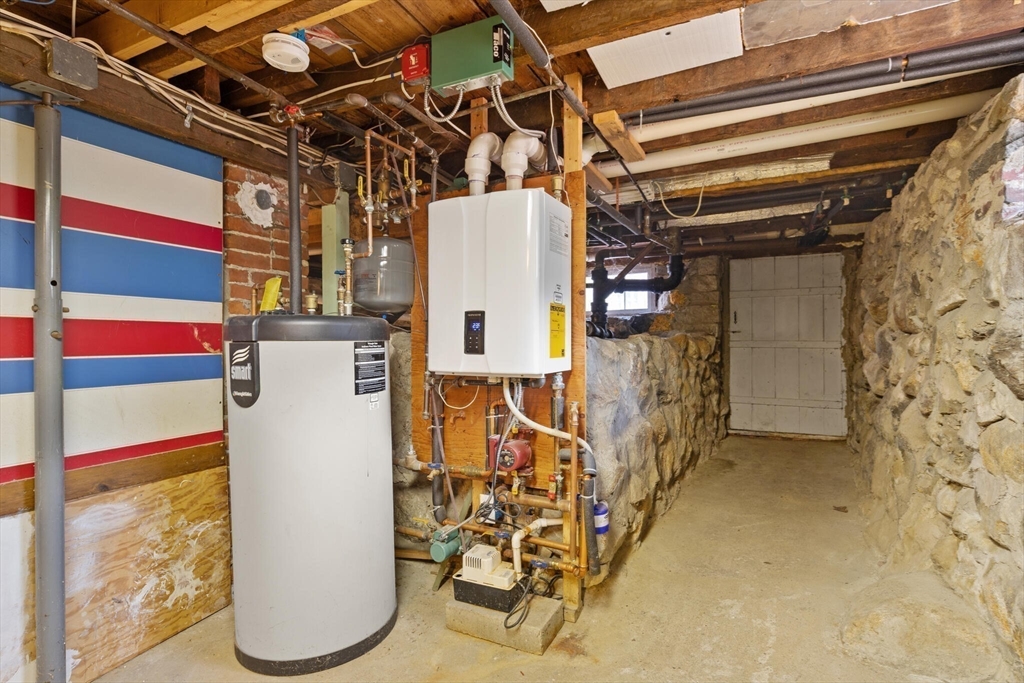 Antique Colonial brimming with CHARM at every turn! Set on picturesque lot with mature, flowering trees and shrubs. Backyard is serene, private oasis with dedicated beds, pergola and water feature, enjoyed from three season porch and deck. Country kitchen with oak cabinetry, separate breakfast area, open to welcoming family room, centered around fireplace. Dining room and living room feature high ceilings, custom built-ins and architectural molding. An office and full bath complete the first floor. Upstairs are three bedrooms, the primary with ensuite bath and creative, custom storage. Full basement with workshop area and finished rec room heated by wood stove. LOTS of storage, unique loft. All the charm of the era combined with modern upgrades. Minutes to schools, athletic fields, highways. Directly across to Crooked Spring Reservation, conservation park and trails. Loved by one family for 47 years, this home has a warm, welcoming feeling ready for new owners to CHERISH!