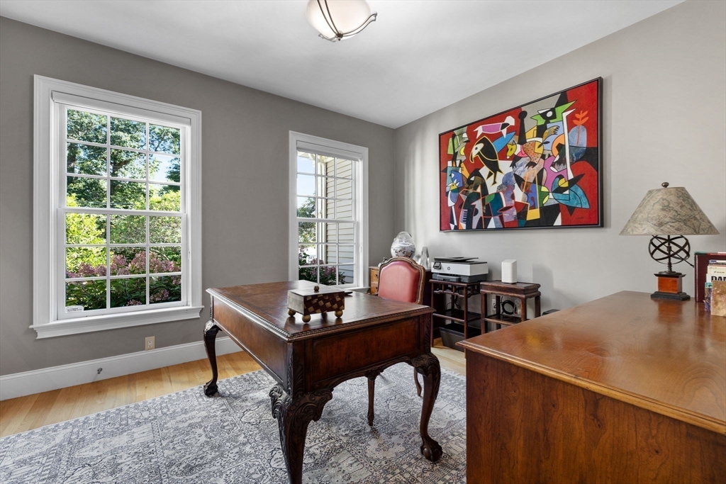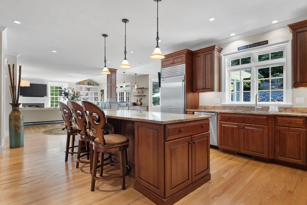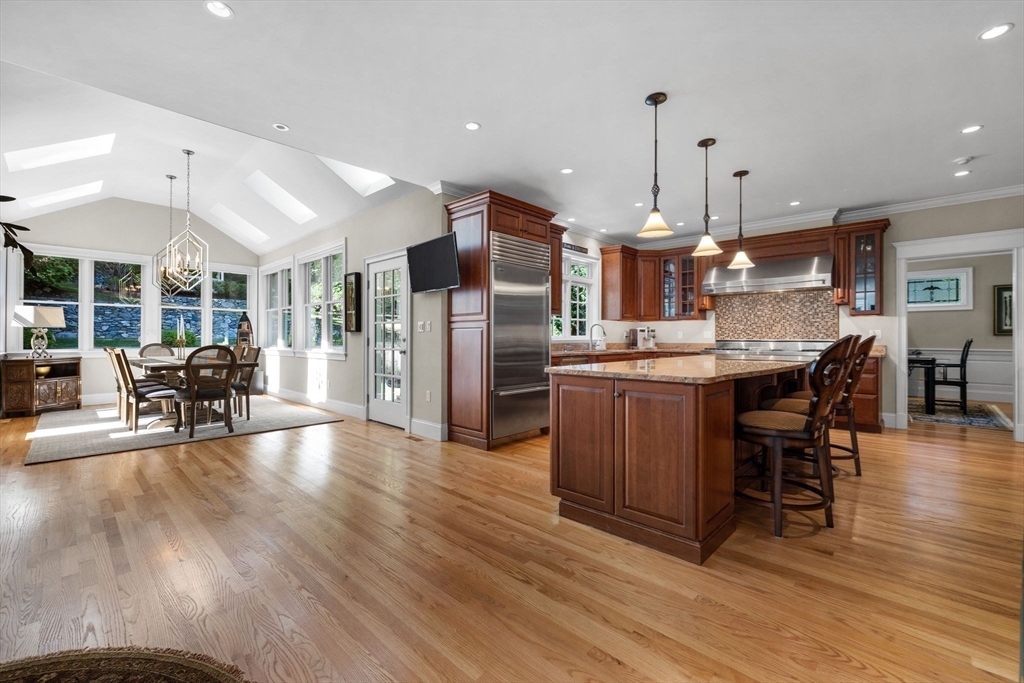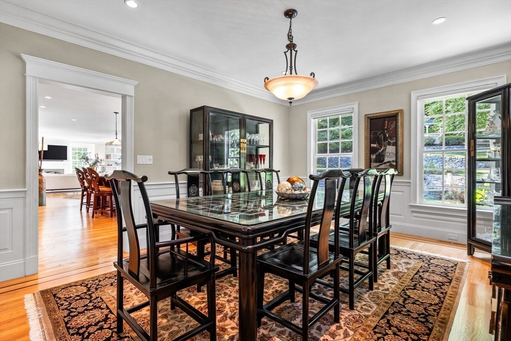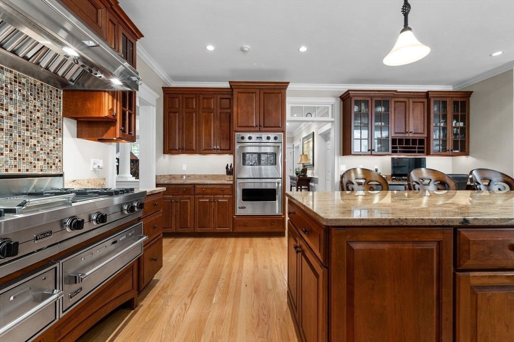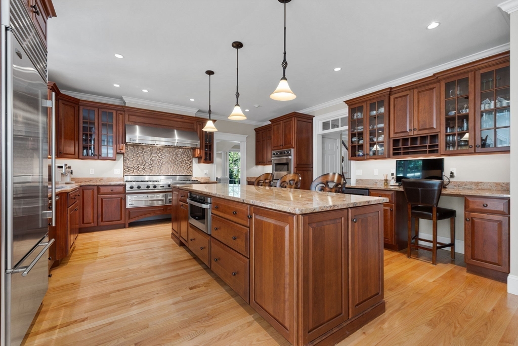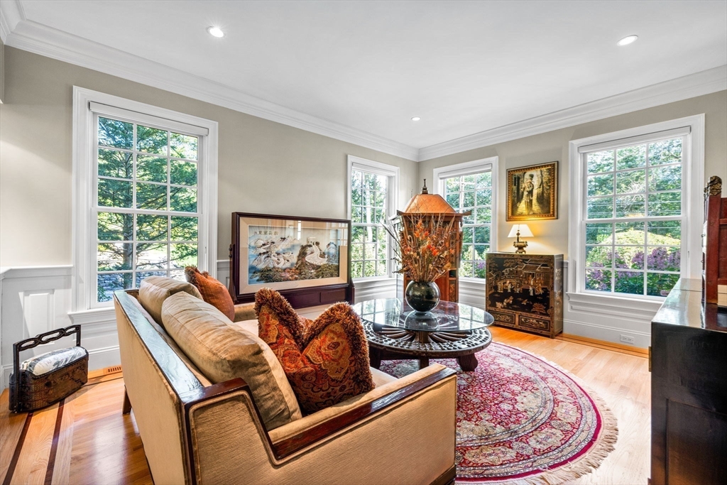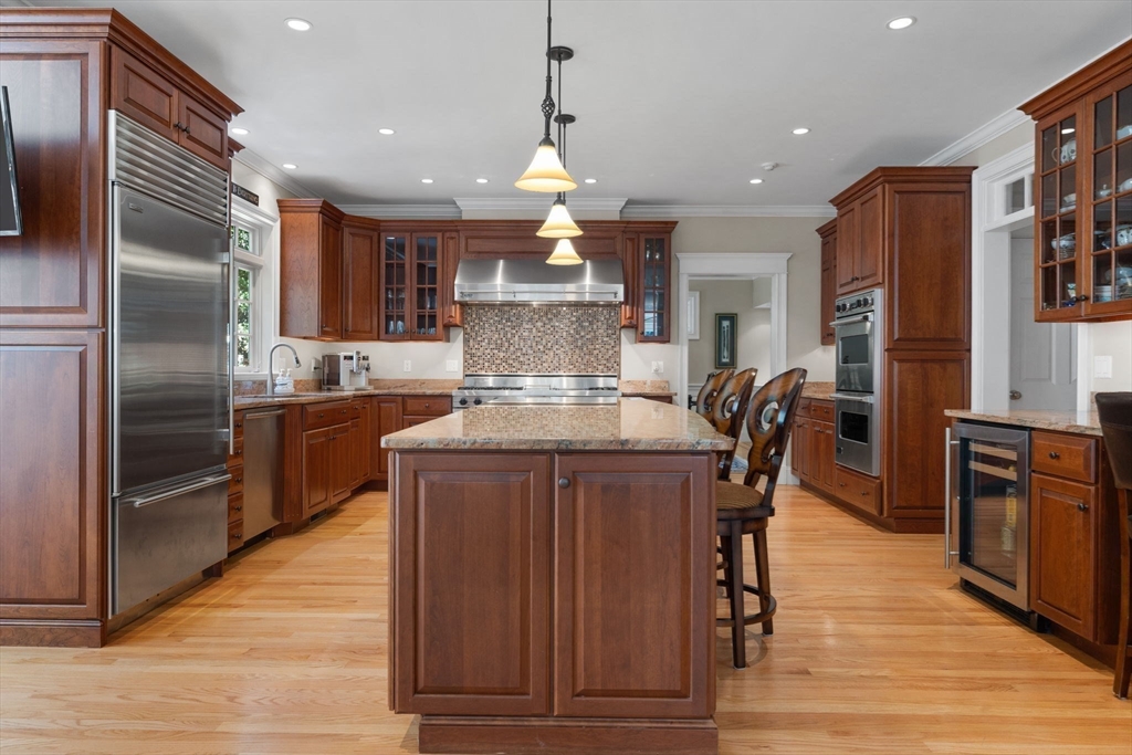 Welcome to this impeccably maintained colonial blending elegance, craftsmanship, and convenience. Ideally located near Lexington’s top-rated schools, Lincoln Fields, walking trails, historic center, and major highways.The first floor offers a chef’s dream kitchen with commercial-grade appliances and an open layout flowing into the dining area, wet bar, and family room—perfect for entertaining. Step outside to enjoy a patio for dining, gazebo retreat, fire pit, and serene water fountain overlooking a beautifully terraced 1.6-acre backyard with four-season views. A first-floor ensuite bedroom (or office), plus formal living and dining rooms, add versatility.Upstairs features a spacious primary suite with walk-in closet and bath, three additional bedrooms, two full baths, and a laundry room. The third floor offers a large, flexible space with full bath—ideal for a playroom or guest suite. The unfinished, plumbed basement provides endless potential.Don’t miss this exceptional home!