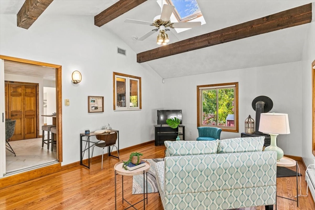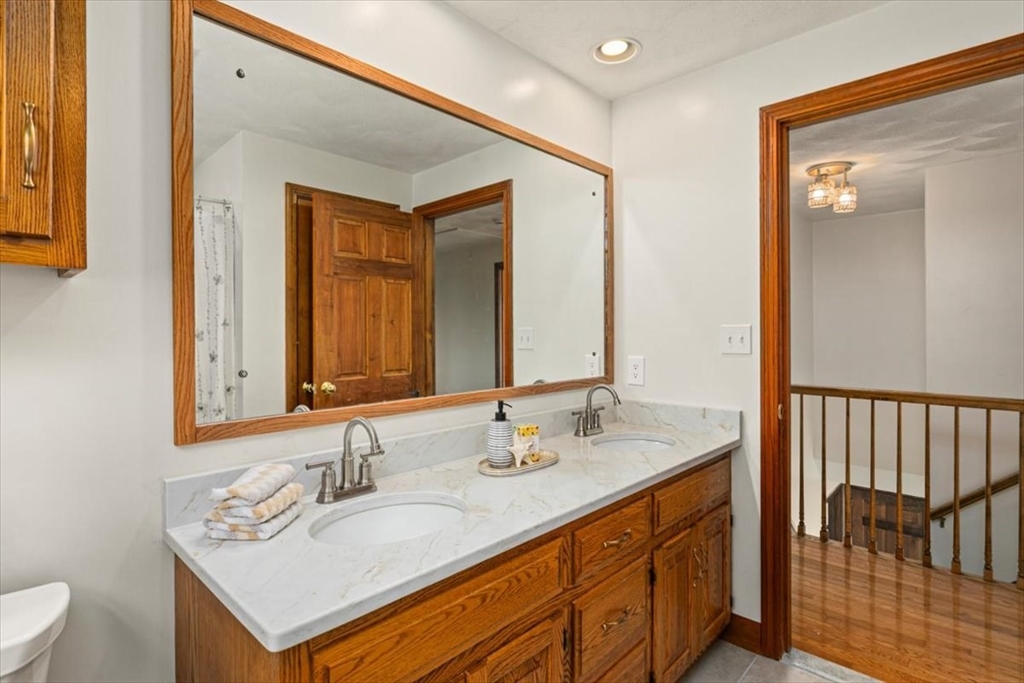 Welcome Home! Stylish & well-planned updates throughout are only a few impressive highlights in this 4 Bedrm, 2.5 bath, 2,456 sf Colonial. This extraordinary home is set on 4 acres in sought-after North Andover offering a generous layout that encourages both social gatherings and quiet relaxation. Enter to find the beautiful foyer, spacious family room w/French doors & fireplace, a superb eat-in kitchen that features stainless steel appliances, quartz counters and an abundance of cabinets. Off the kitchen you will find the great room w/ a wood stove - perfect for New England winters & access to the back deck overlooking the wooded backyard. The main living level is complete with a formal living room open to a striking dining room & powder room. Upstairs you will find the primary suite with a stunning en-suite bathroom & walk in closet, 3 add'l BRs & full bath. Additional features incl an oversized heated 2 stall garage, C/A, freshly painted interior, full basement and lovely pond views