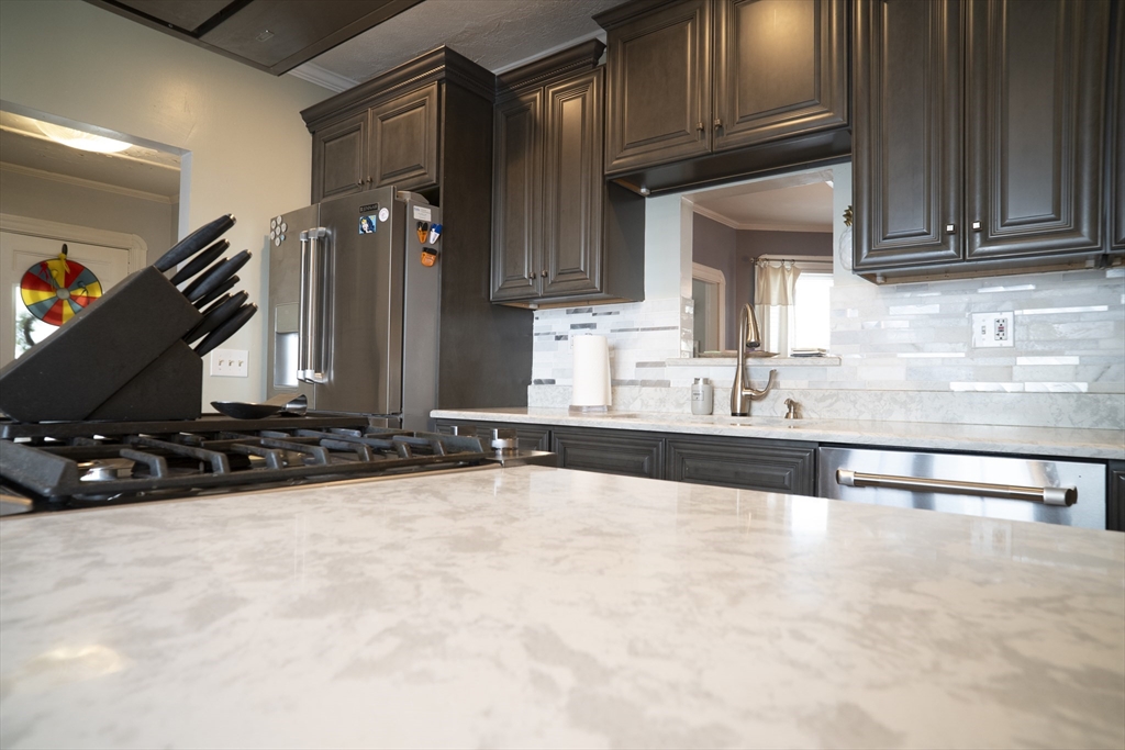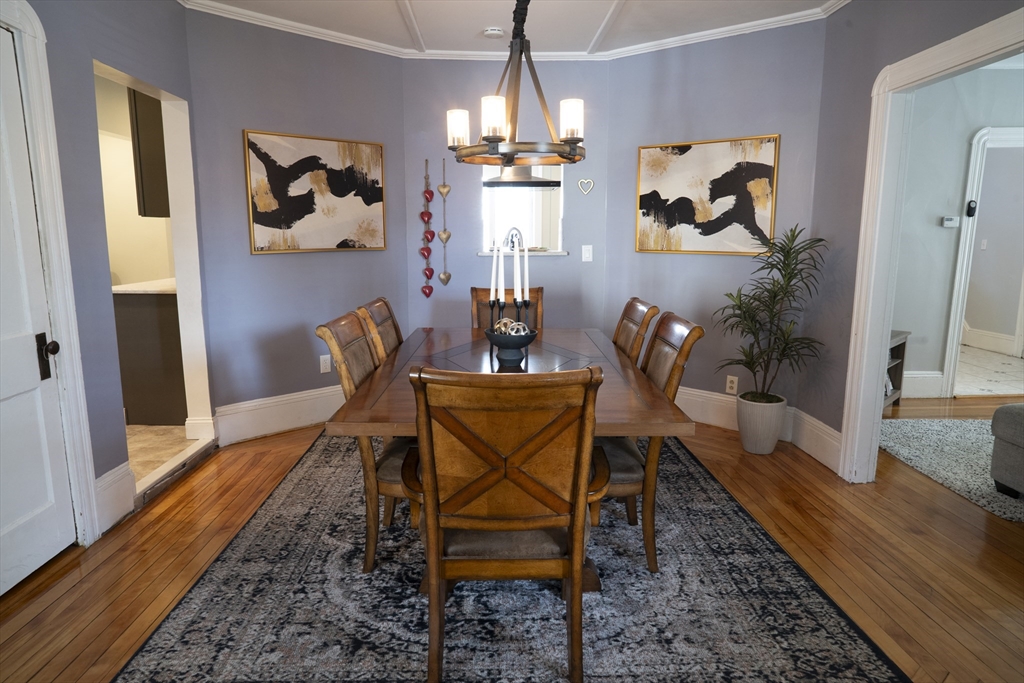 Welcome to a beautifully well maintained 5 bedroom, 3.5 bath and a 2 car detached garages colonial nestled on a quiet dead-end street situated in Lynn, MA within the Greater Boston urban area. This charming home features hardwood floors, and the kitchen stands as a culinary centerpiece, featuring a kitchen bar and a large kitchen island, perfect for both everyday meals and entertaining. An island range hood adds a touch of modern sophistication, while the crown molding echoes the home's classic heritage. Stone countertops provide a durable and elegant workspace, complemented by a stylish backsplash and high-end appliances. Outside, enjoy a private fenced-in yard with a patio, perfect for entertaining, relaxing, or gardening. Additional highlights include a newer roof installed in 2017, and and in-law style bedroom with full bath in the first floor. Don't miss the opportunity to own a unique a piece of history in great condition.