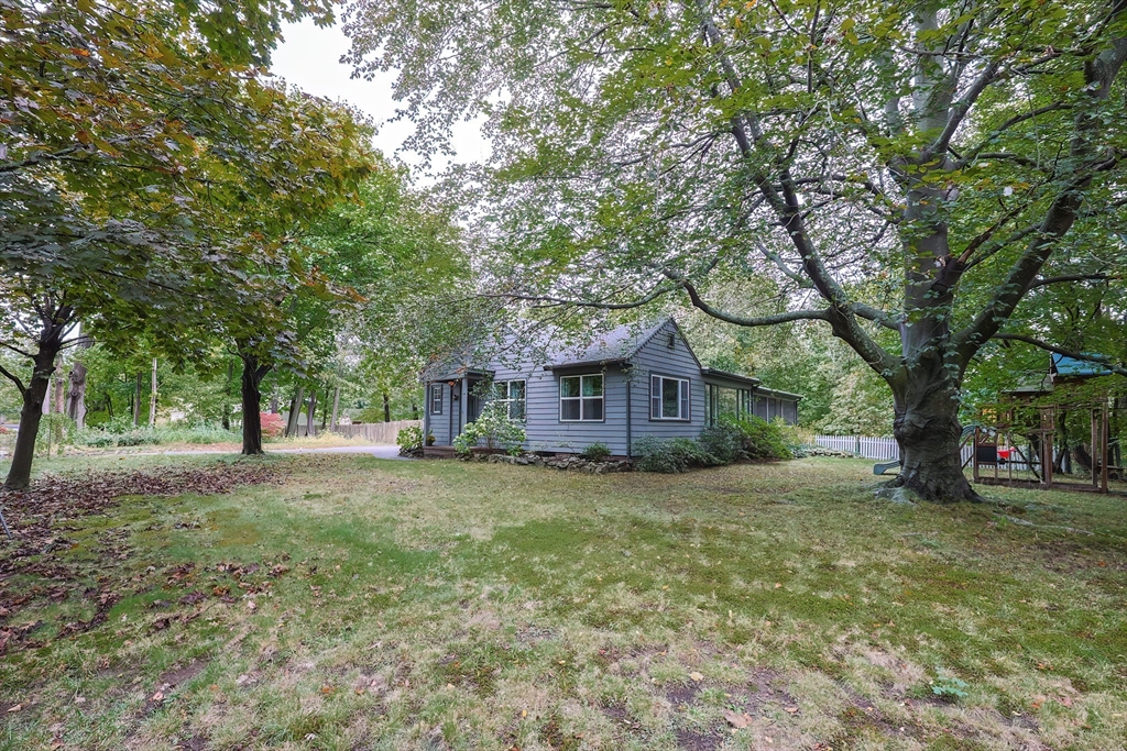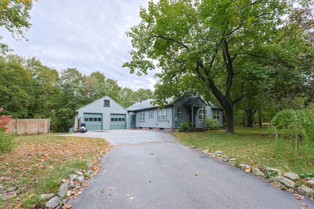 Scenic Sheldonville is the perfect back drop to your own 2 acre retreat! Single level living, complimented by a sun porch is the ideal space to make your own! Lined with hardwood flooring and classic architectural details, charm and updates come together to offer space for formal and casual spaces as well as ample storage in the oversized 2 car garage! Energy efficiency is preserved with a recently installed pellet stove and a comprehensive MASS Save Energy audit. Young roof, new oil tank, many replaced front windows, and fresh paint on the interior also add to the turn key and valuable appeal! A wide open floor plan with an ideal lay out for privacy! Come embrace the fall foliage from your sun porch and appreciate your convenient location, yet private and expansive backyard!