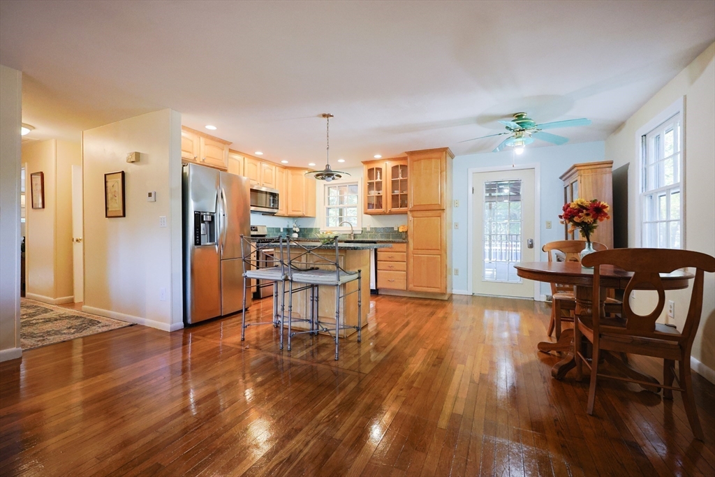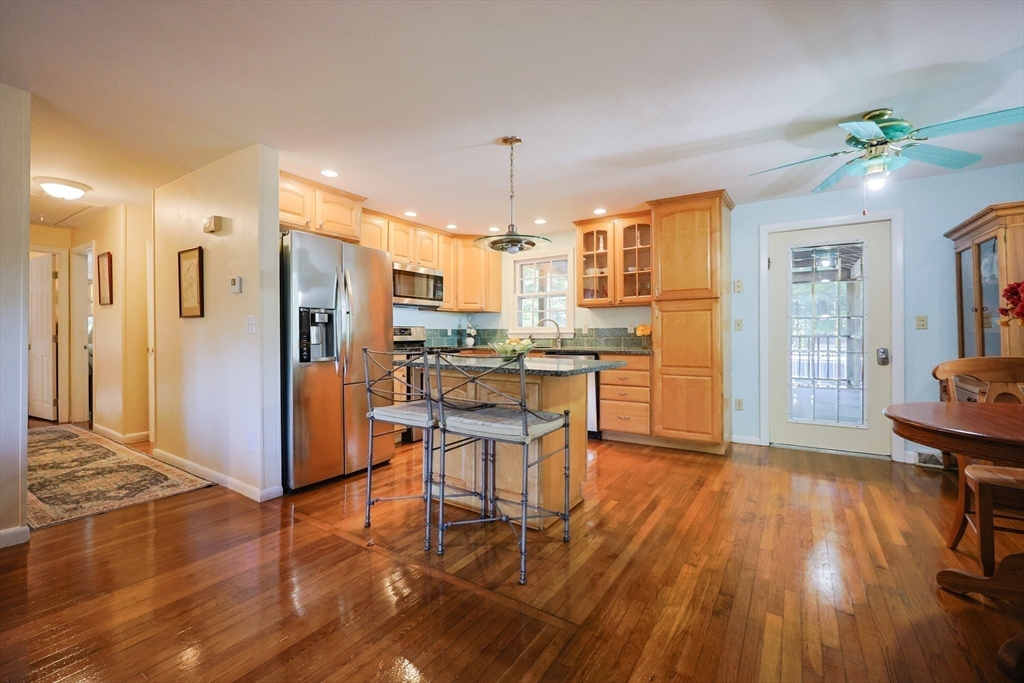 Nestled on a spacious wooded lot abutting acres of conservation land, this charming 3-bedroom home offers peace, privacy, and a true connection to nature. Inside, you’ll find a bright and inviting layout with comfortable living spaces perfect for relaxing or entertaining. The remodeled kitchen featuring granite counters and SS appliances, flows easily into the dining and living areas, creating an open great room feel throughout. Step out to the large screened-in porch, an ideal spot to enjoy morning coffee, dine outdoors, or unwind while surrounded by the sights and sounds of nature. The expansive yard offers endless possibilities for gardening, play, or simply soaking in the tranquility of your wooded retreat. With direct access to conservation trails and abundant wildlife just beyond your backyard, this home is a rare find for those who value space, serenity, and the beauty of the outdoors. Down the steet from two of Holliston's hidden gems, Pat's Blueberrys and Waushakum mini Trains