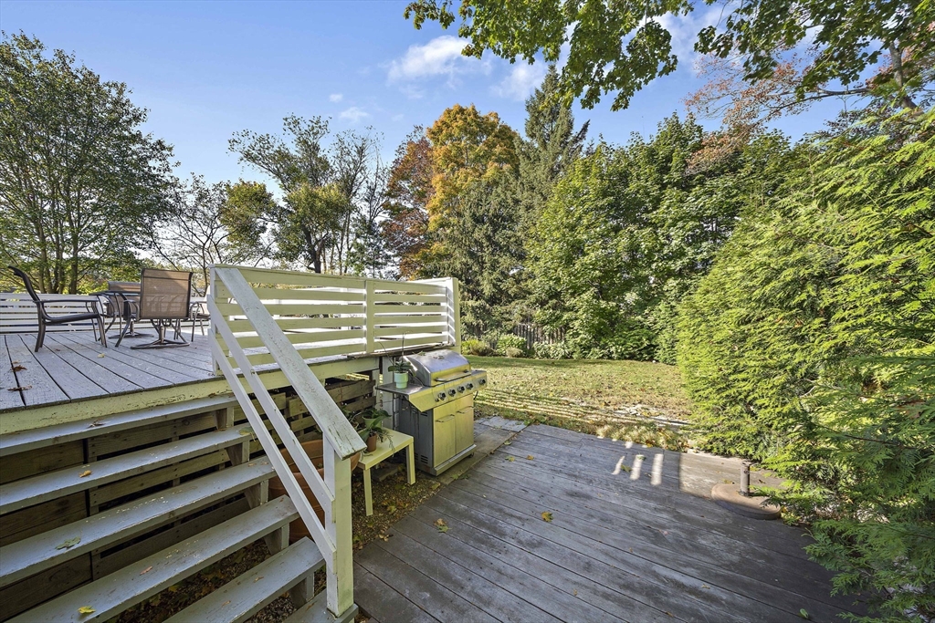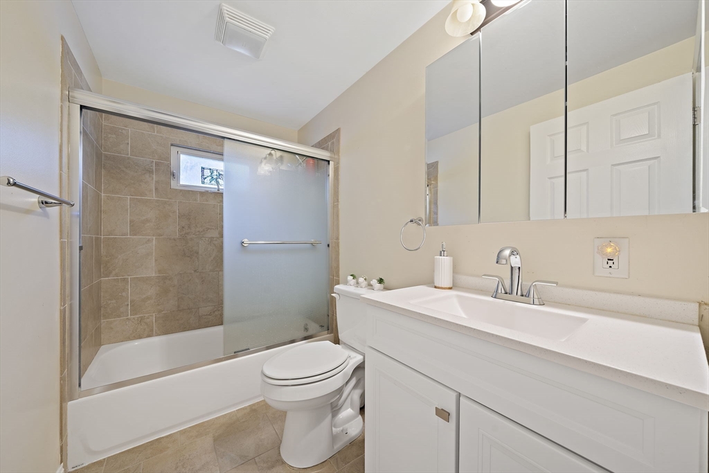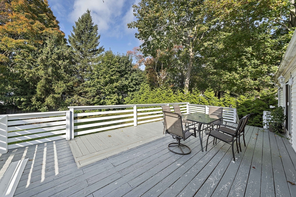 Welcome to this inviting 3-bedroom ranch tucked away in a quiet, well-established neighborhood. This single level home is perfect for the empty nester or first-time home buyer. It offers an easy comfortable layout with a spacious living room with fireplace, bright dining area/ kitchen updated with custom cabinets, quartz countertops. The home also features generous sized bedrooms and a renovated bathroom. The finished basement offers a family room, workshop and a laundry area. Enjoy outdoor living on your expansive deck overlooking the private backyard. The 2-car garage provides plenty of parking and storage space. Conveniently located near schools, shopping and major routes-this home combines privacy and practicality in one perfect package. Don't miss this gem!!