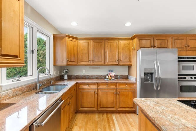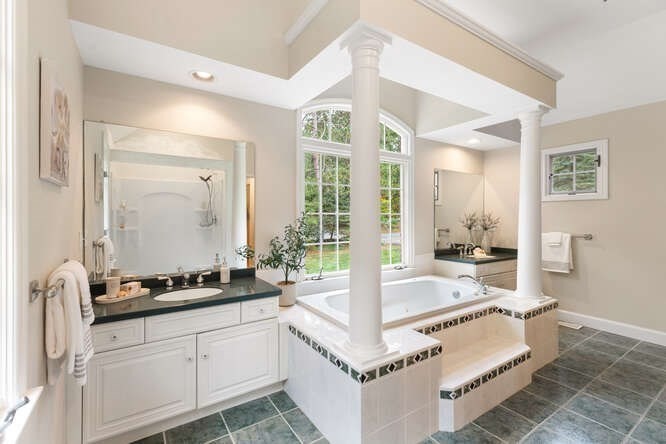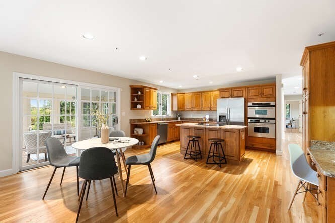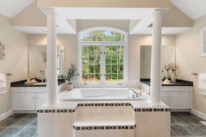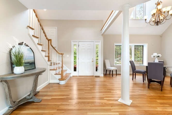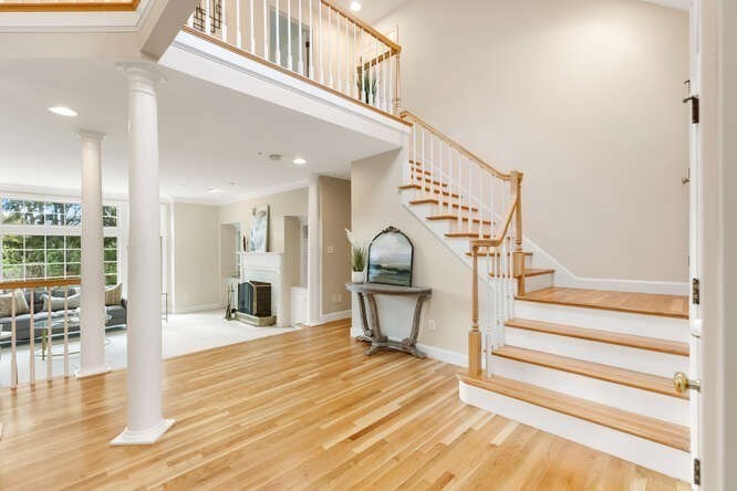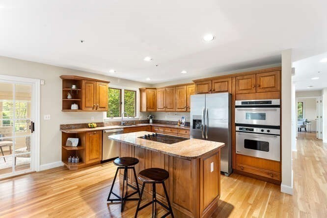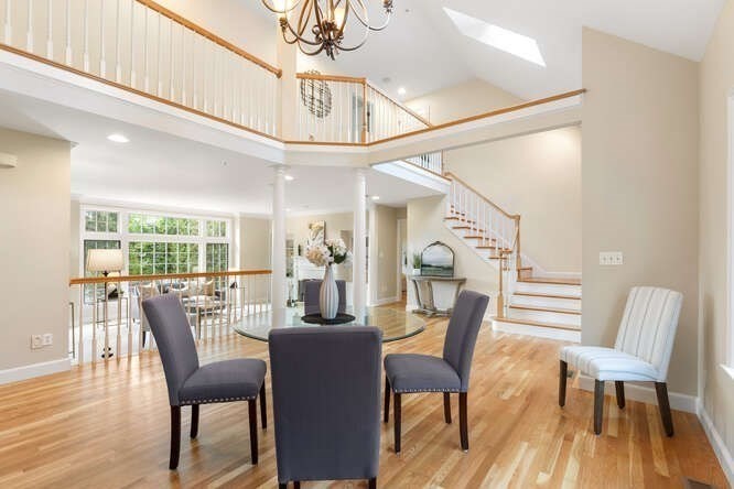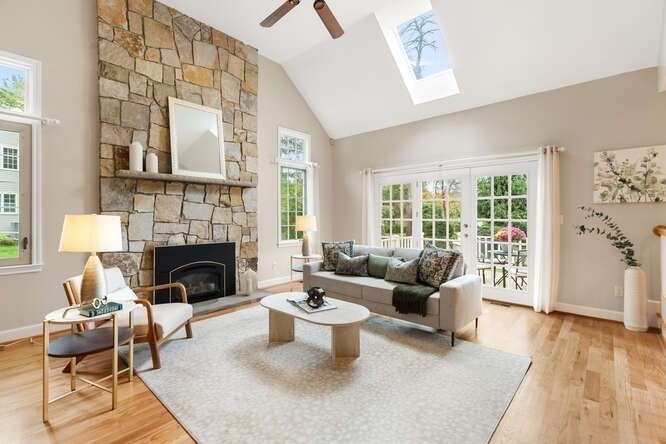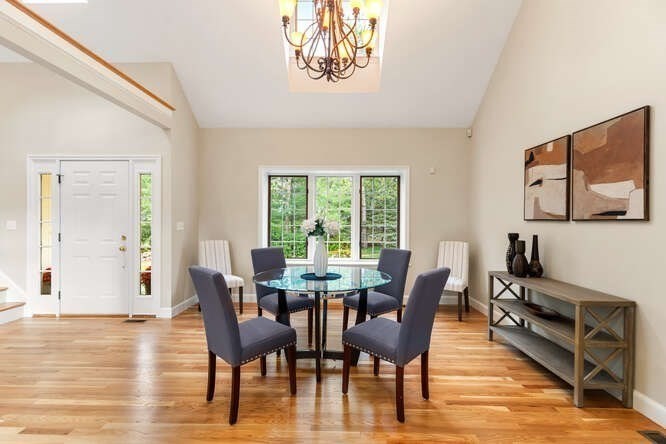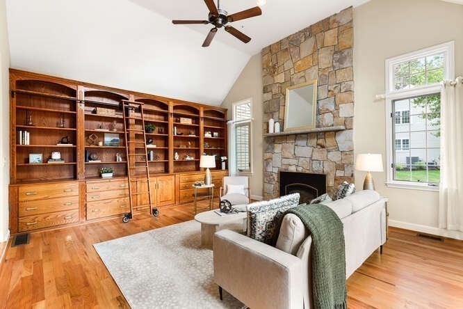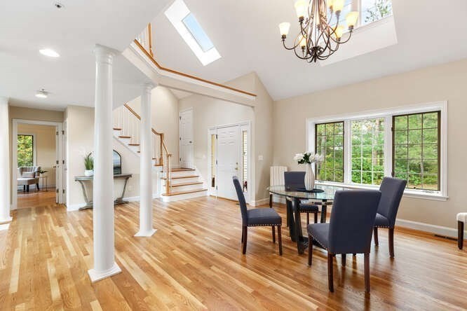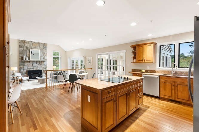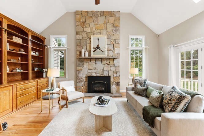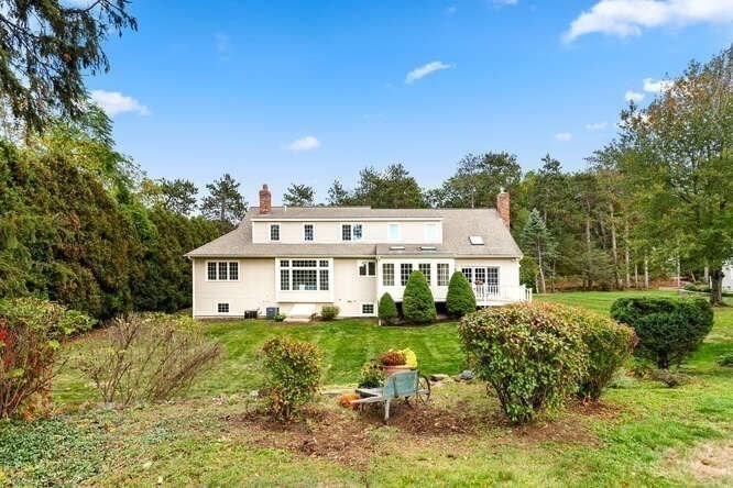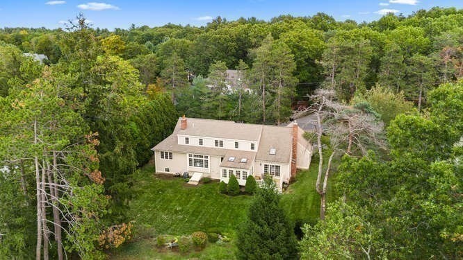 Custom built Cape Style home nestled behind New England stone walls in North Andover's most idyllic location. Sought after open and sun filled floor plan with first floor primary suite with two walk-in closets, elegant two story entry foyer, sunken formal living room with a wall of glass overlooking the lush two acre lot, step down cathedral ceilinged family room with two story stone masonry fireplace and a wall of custom book shelves that would be the envy of any bibliophile! Large kitchen with eat in area that leads to the screened in porch, pantry and desk unit and separate 1st floor laundry room. Spacious 2nd floor with loft style overlook and three generous sized bedrooms. Lots of storage nooks, full sized basement and attached 2-car garage for all your stuff! Minutes from North Andover's historic Old Center, Stevens Pond recreation area with sandy beach, swimming, fishing, and popular Weir Hill trails and Half Mile Hill. New England countryside atmosphere at its best!!