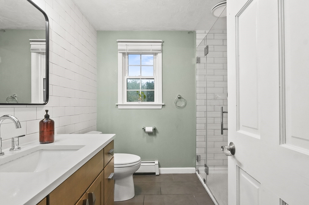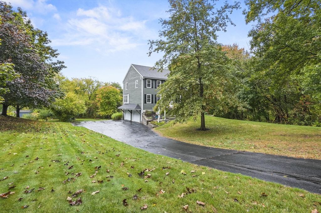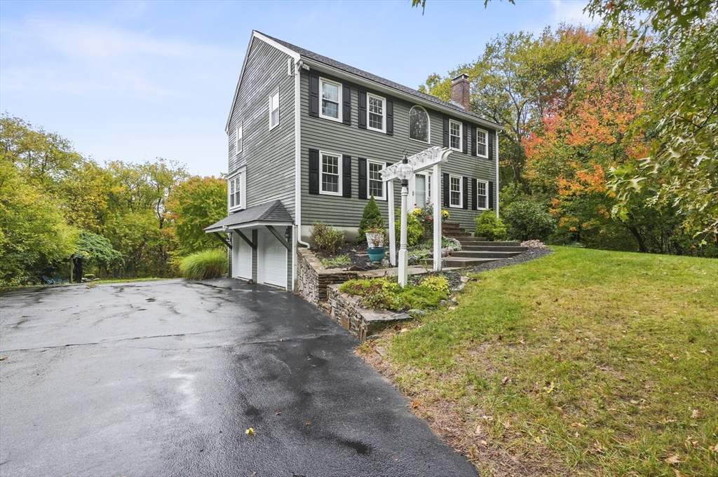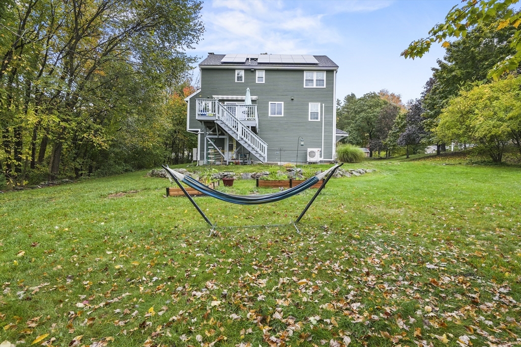 This beautiful 3-bedroom colonial sits on over 1.5 private acres, tucked back from Lincoln Street! Enter and discover the living room, centered around a fireplace and a separate family room for casual downtime. Just off the kitchen, the dining room shines with built-in shelving and bench overlooking a large window. The modern kitchen shines with updated cabinets, quartz countertops, an over-sized center island and stainless-steel appliances. Upstairs, the expansive main bedroom impresses with a vaulted ceiling, walk-in closet, and private full bath. Recent upgrades include new solar panels installed within the past year, six mini-split systems for efficient heating and cooling year-round, and a new water heater. The walk-out finished basement offers great bonus space for a home gym, office, or media room, while the expansive backyard features a gazebo and a peaceful sitting area, a perfect blend of comfort, privacy, and convenience close to area amenities including a dog park.
