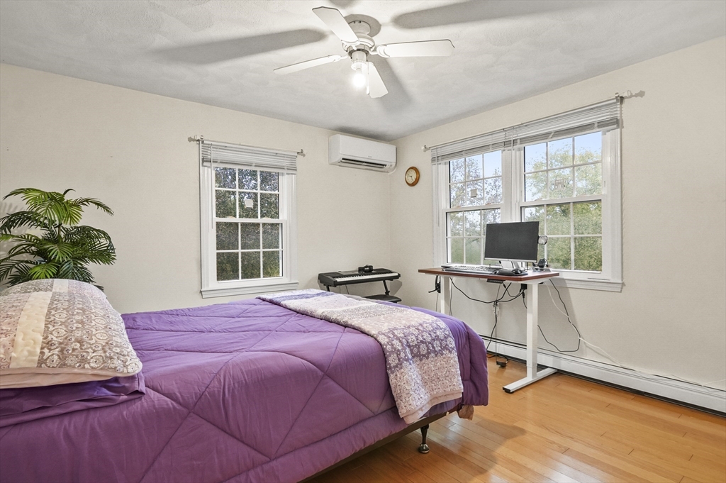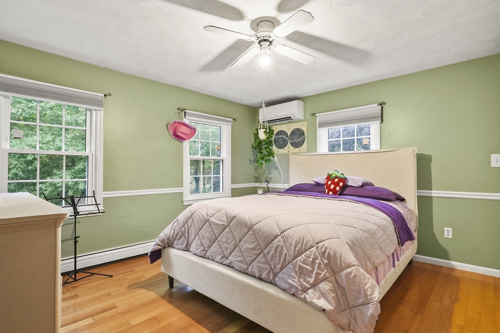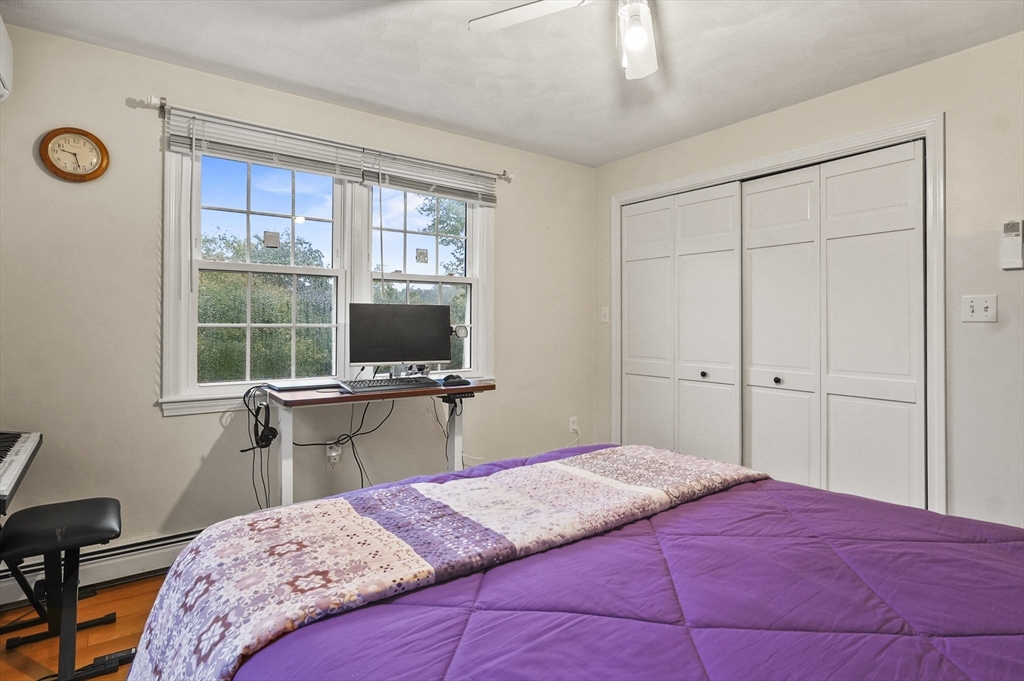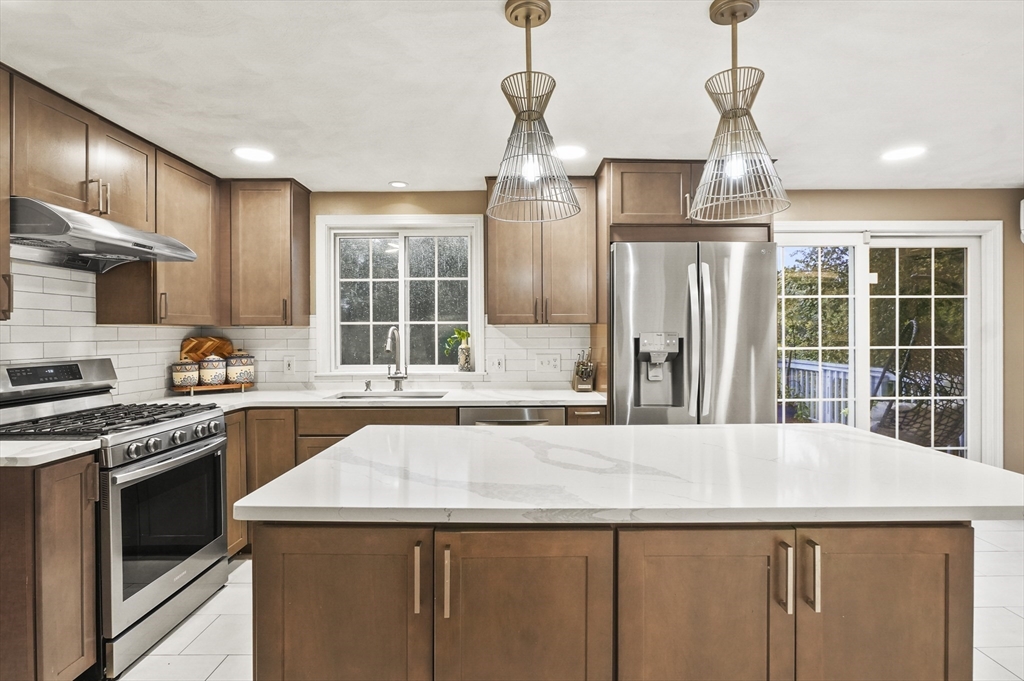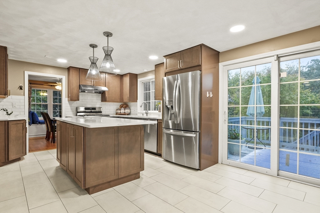 This beautiful 3-bedroom colonial sits on over 1.5 private acres, tucked back from Lincoln Street! Enter and discover the living room, centered around a fireplace and a separate family room for casual downtime. Just off the kitchen, the dining room shines with built-in shelving and bench overlooking a large window. The modern kitchen shines with updated cabinets, quartz countertops, an over-sized center island and stainless-steel appliances. Upstairs, the expansive main bedroom impresses with a vaulted ceiling, walk-in closet, and private full bath. Recent upgrades include new solar panels installed within the past year, six mini-split systems for efficient heating and cooling year-round, and a new water heater. The walk-out finished basement offers great bonus space for a home gym, office, or media room, while the expansive backyard features a gazebo and a peaceful sitting area, a perfect blend of comfort, privacy, and convenience close to area amenities including a dog park.