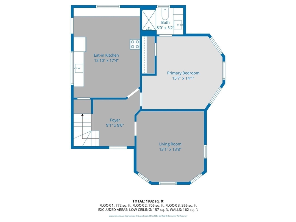 建筑面积1,997 平方英尺 (约 186 平方米)
