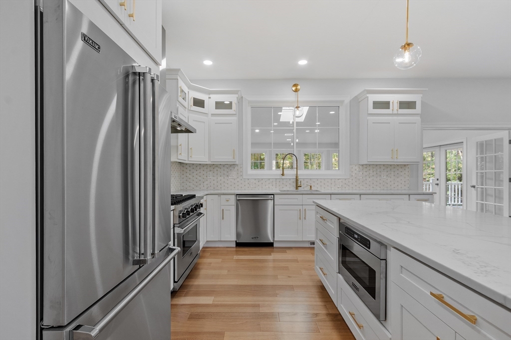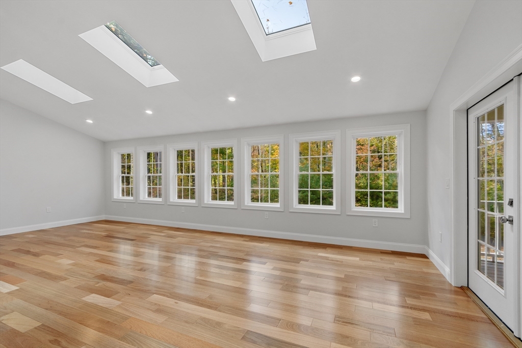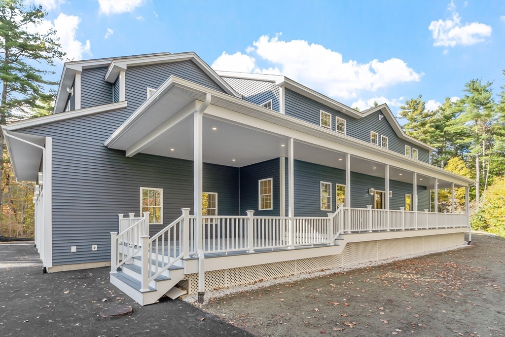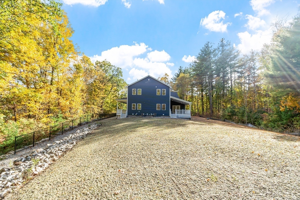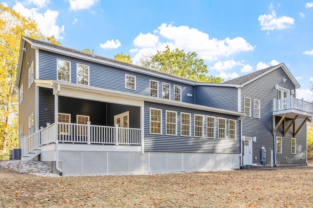This beautiful 4,300 sq ft Colonial is set on 5.14 wooded acres with a private trail and a brook. The open floor plan flows from the living and dining area into a three-season sunroom and a covered rear deck. The elegant kitchen features Viking appliances, marble and granite surfaces, a gold-accented backsplash, and an adjacent walk-in pantry. Five bedrooms each have a walk-in closet; the main suite includes a private balcony. Additional amenities include an office, laundry, a covered front entry, an attached three-car garage, ample driveway parking, and usable yard areas to enjoy the change of the seasons. A modern design, designed for practical, year-round indoor–outdoor enjoyment.
