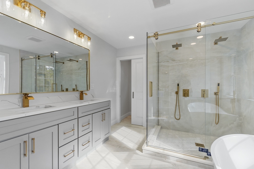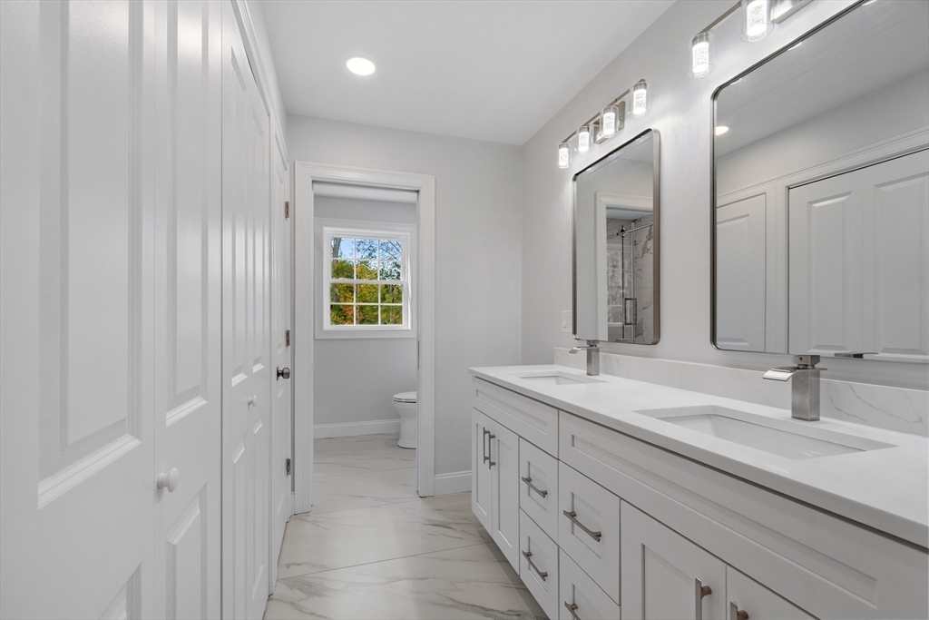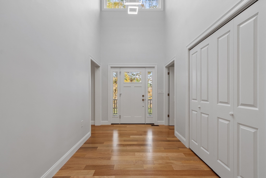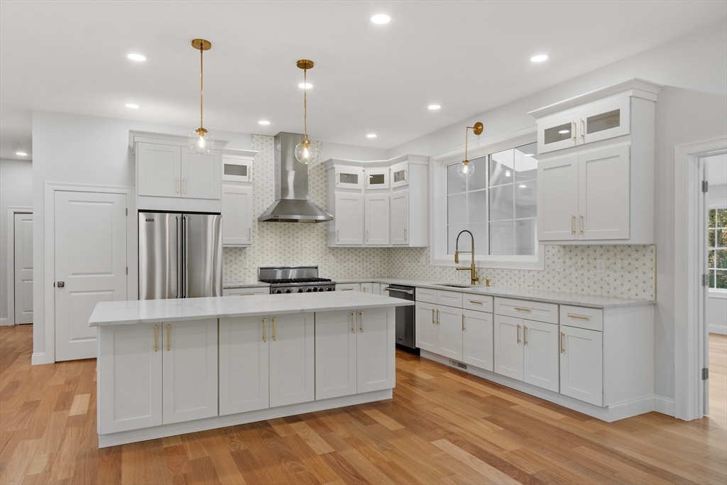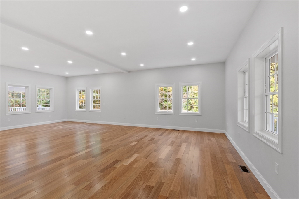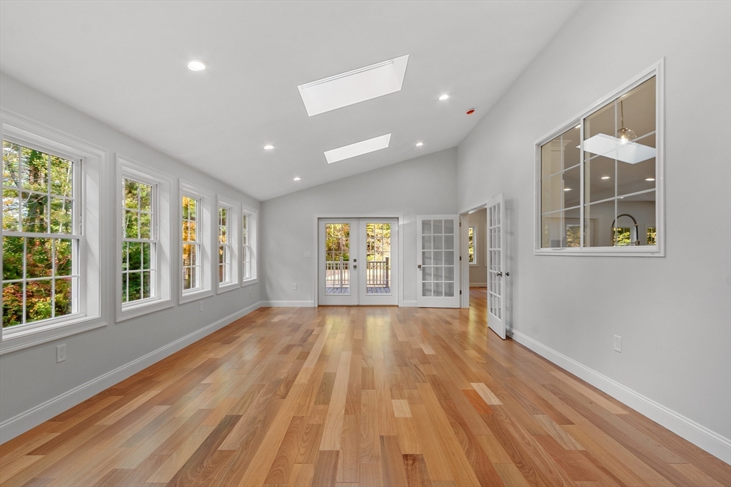 This beautiful 4,300 sq ft Colonial is set on 5.14 wooded acres with a private trail and a brook. The open floor plan flows from the living and dining area into a three-season sunroom and a covered rear deck. The elegant kitchen features Viking appliances, marble and granite surfaces, a gold-accented backsplash, and an adjacent walk-in pantry. Five bedrooms each have a walk-in closet; the main suite includes a private balcony. Additional amenities include an office, laundry, a covered front entry, an attached three-car garage, ample driveway parking, and usable yard areas to enjoy the change of the seasons. A modern design, designed for practical, year-round indoor–outdoor enjoyment.