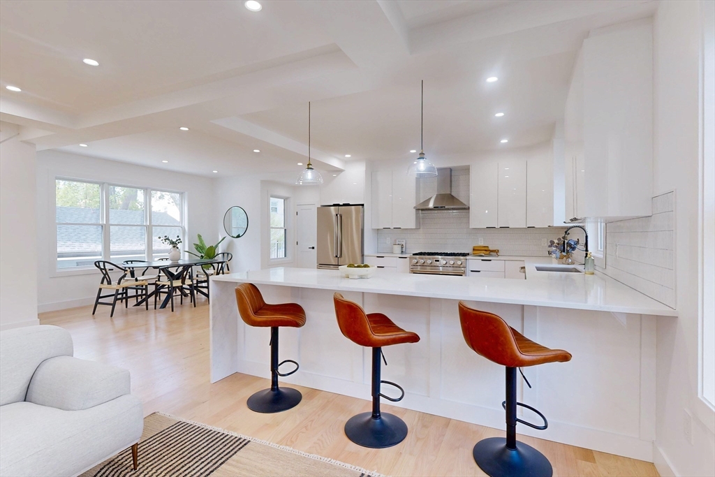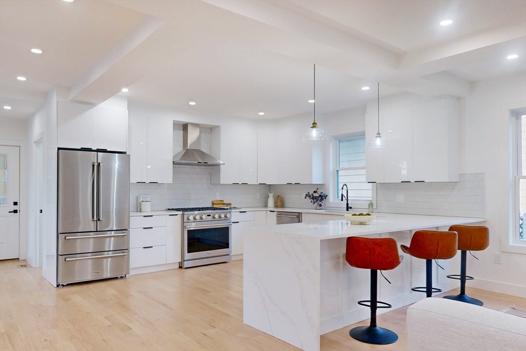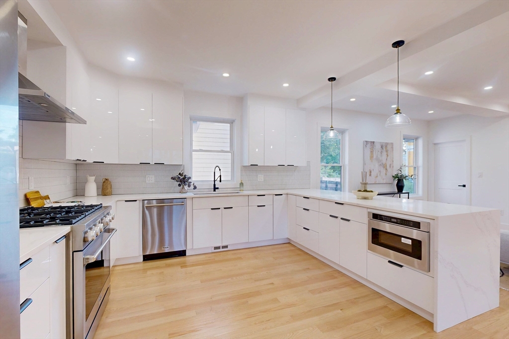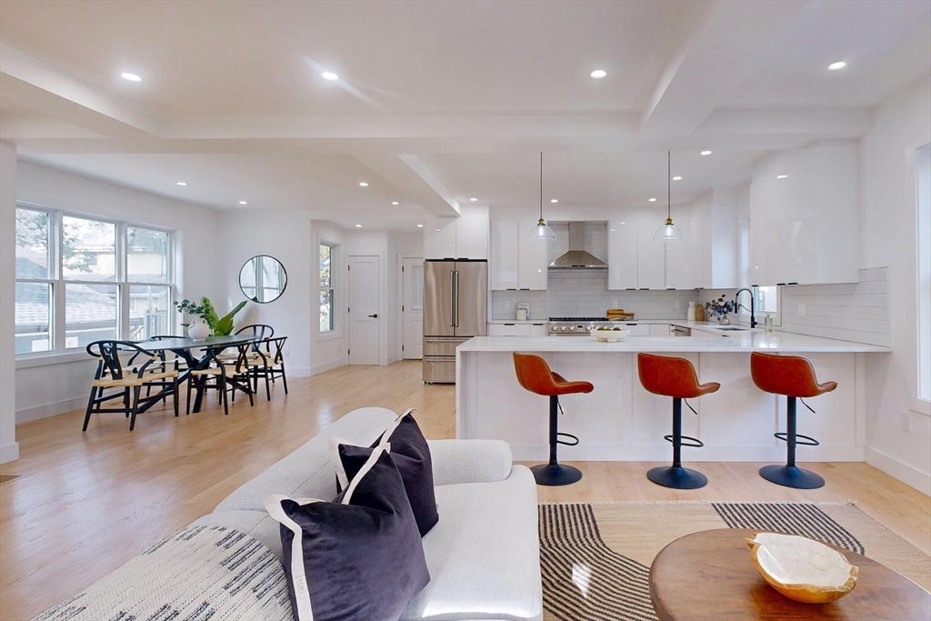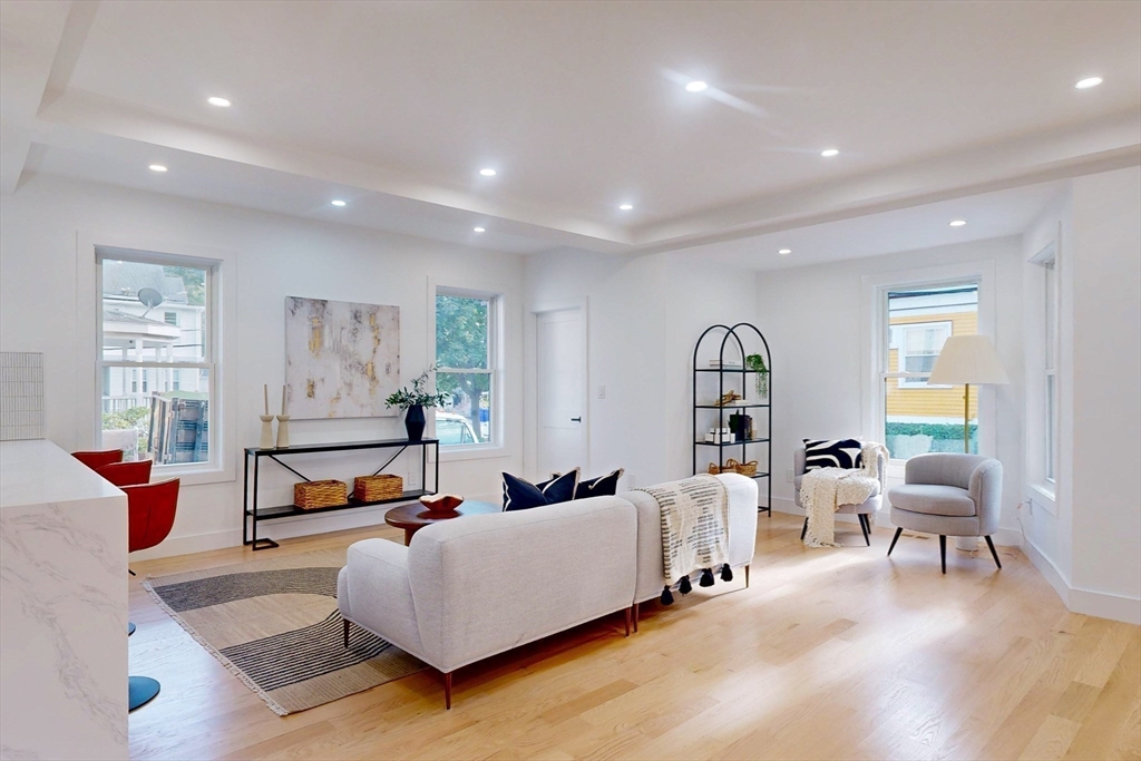 Tucked away on a quiet one-way street, this fully renovated home is truly unlike anything else on the market. With its contemporary design, abundance of windows & natural light throughout, it is sure to impress. The first floor features a wide-open living & dining area seamlessly connected to a modern kitchen with high-end stainless steel appliances, custom cabinetry & sleek quartz counters. Just off the kitchen, an oversized deck offers the perfect space for entertaining or relaxing. A walk-in pantry & full bath complete this level. Upstairs, you’ll find three generously sized bedrooms & a beautifully appointed bath. The top floor is dedicated to the primary suite, featuring three closets & a luxurious bath. The finished lower level is ideal for a family room or home gym. An oversized two-car garage plus four outdoor parking spaces complete this home. Ideally located within walking distance of Newman & Bell Rock Park,Malden Center Train Station & with easy access to all major highways