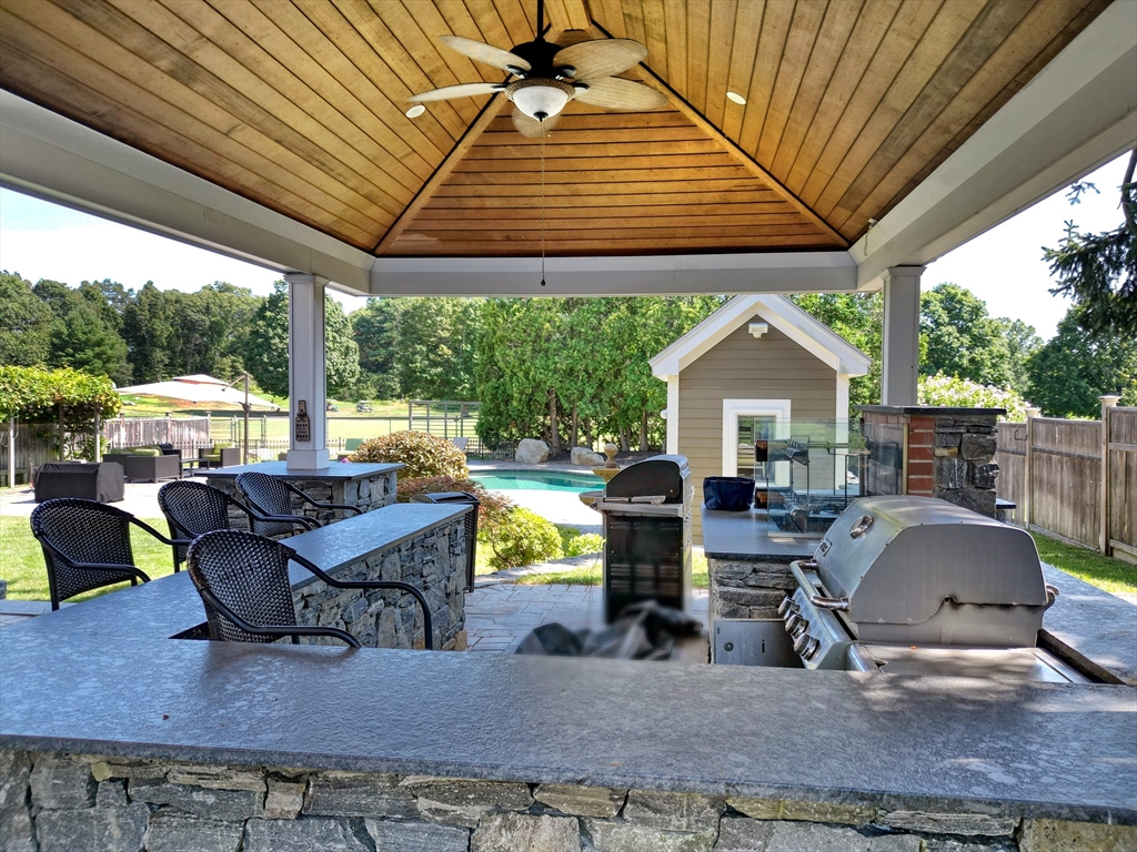 Exceptional 6-bedroom, 4-bath Colonial perfectly sited on its lot overlooking the 2nd fairway of Mount Hood Golf Course. Renovated in 2015. The backyard is entertainer’s paradise, featuring a heated in-ground pool, custom outdoor kitchen, multiple fire pits, and a stunning patio with panoramic golf course views.Inside, the expansive kitchen offers a large island, Thermador range, Sub-Zero refrigerator, and a walk-in pantry, all open to generous dining and living spaces ideal for gatherings. The oversized primary suite includes a spa-inspired bath and custom walk-in closet. All additional bedrooms are spacious with great closet space, complemented by a convenient second-floor laundry room. The walk-out lower level is impressive — complete with a home gym, a large bonus room with a full bar, and direct access to the 2-car garage. Solar panels add energy efficiency to this already exceptional home. A must-see for anyone seeking room for extended family or simply more room! Don't miss it!