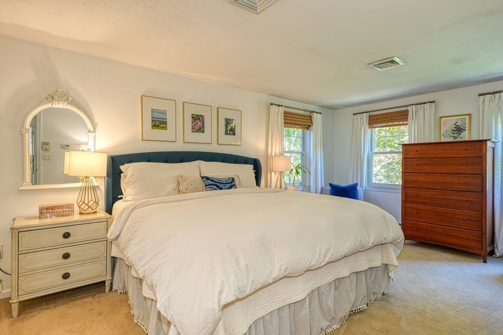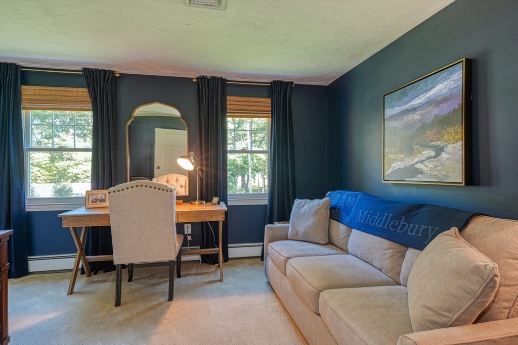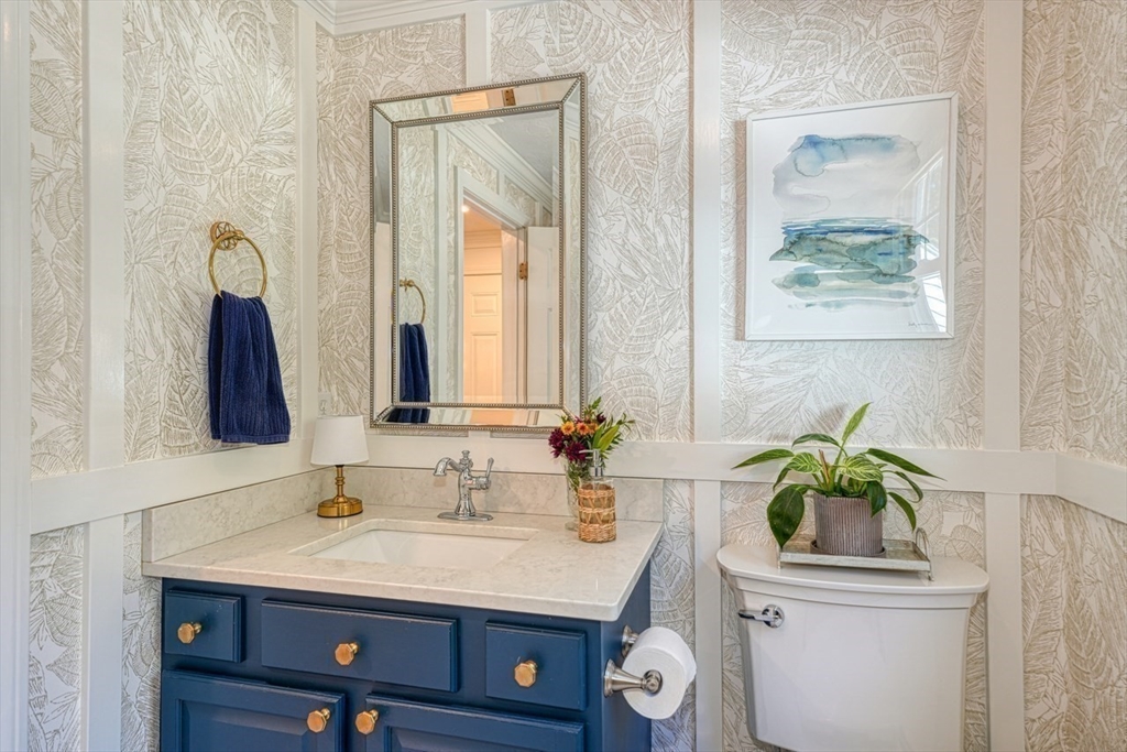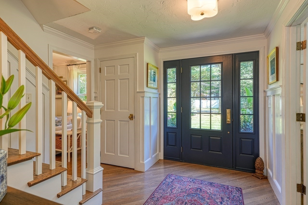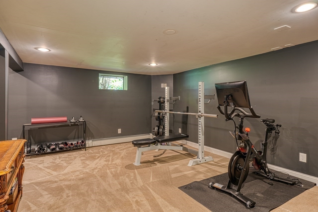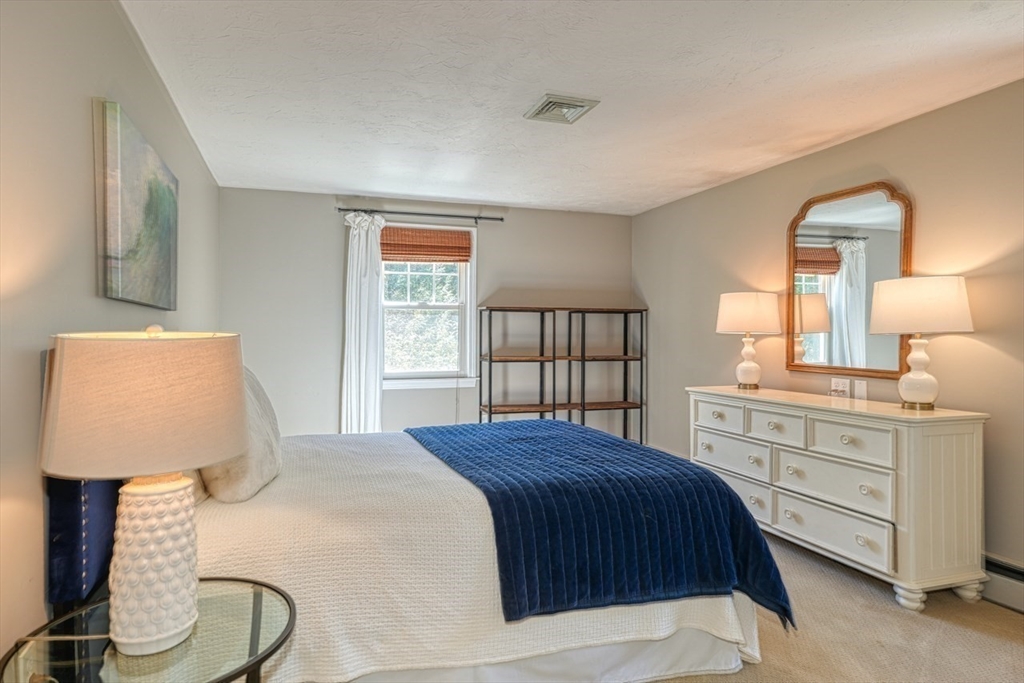 Beautifully updated and meticulously maintained Colonial offering a spacious and functional layout. The remodeled kitchen features sleek quartz countertops, ample cabinetry, and newer stainless steel appliances. Enjoy a sun-filled family room with a cozy fireplace, a gracious living room with custom built-in shelving, and an elegant formal dining room with detailed trim work. Step outside to a generous deck with retractable awning overlooking a serene, landscaped backyard with a built-in fire pit—ideal for outdoor entertaining. The second level boasts a large primary suite with a fully renovated bathroom featuring marble tile, plus three additional well-sized bedrooms and a stylish updated full bath. The finished lower level offers a versatile bonus room with high ceilings, perfect for a home office, gym, or recreation space. Notable updates include windows (2024/2012), roof and gutters (2021), and furnace and hot water tank (2020). Truly move-in ready!