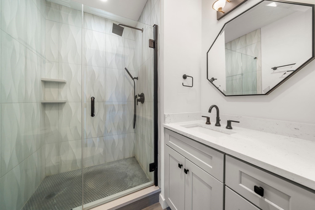 Stunning Duplex Penthouse in East Boston! Built in 2021 by one of the area’s top builders, this home feels better than new. The main level offers an open layout with a two-toned kitchen, large quartz peninsula, hardwood floors, designer lighting, and a private deck with a half bath nearby — perfect for entertaining. Upstairs features two spacious bedrooms, including a serene primary suite with its own deck and skyline peek, plus a custom-tiled en-suite bath with walk-in shower. A guest bath, bedroom level in-unit laundry, and two-zone Nest thermostats add convenience. Custom shutters throughout provide a calm, private feel. Enjoy a shared backyard for additional outdoor space and a prime commuter location with easy access to major routes and public transit. Stylish, spacious, and move-in ready — this East Boston gem delivers the best of modern city living!