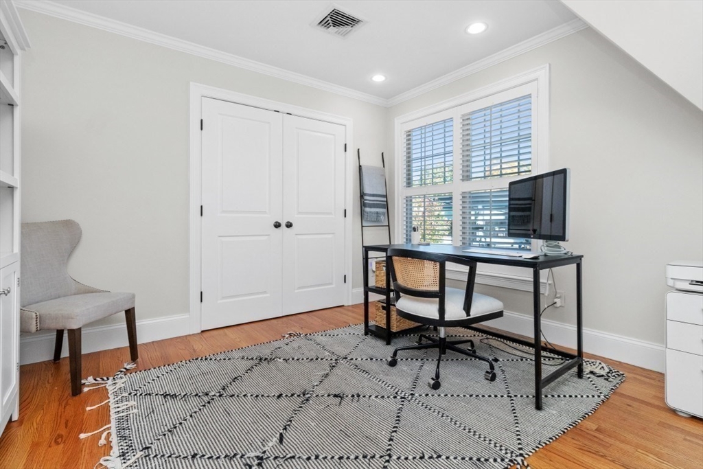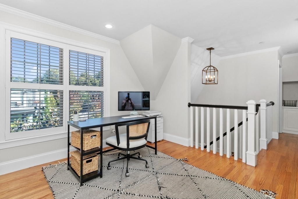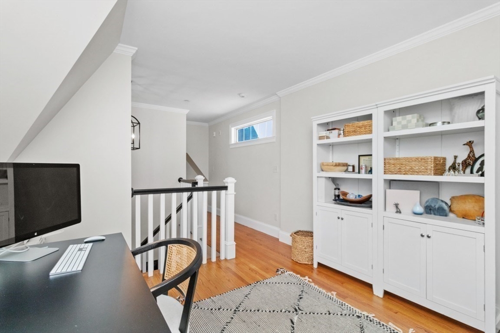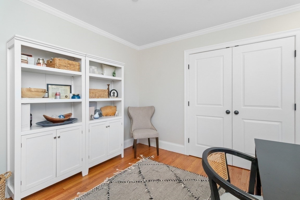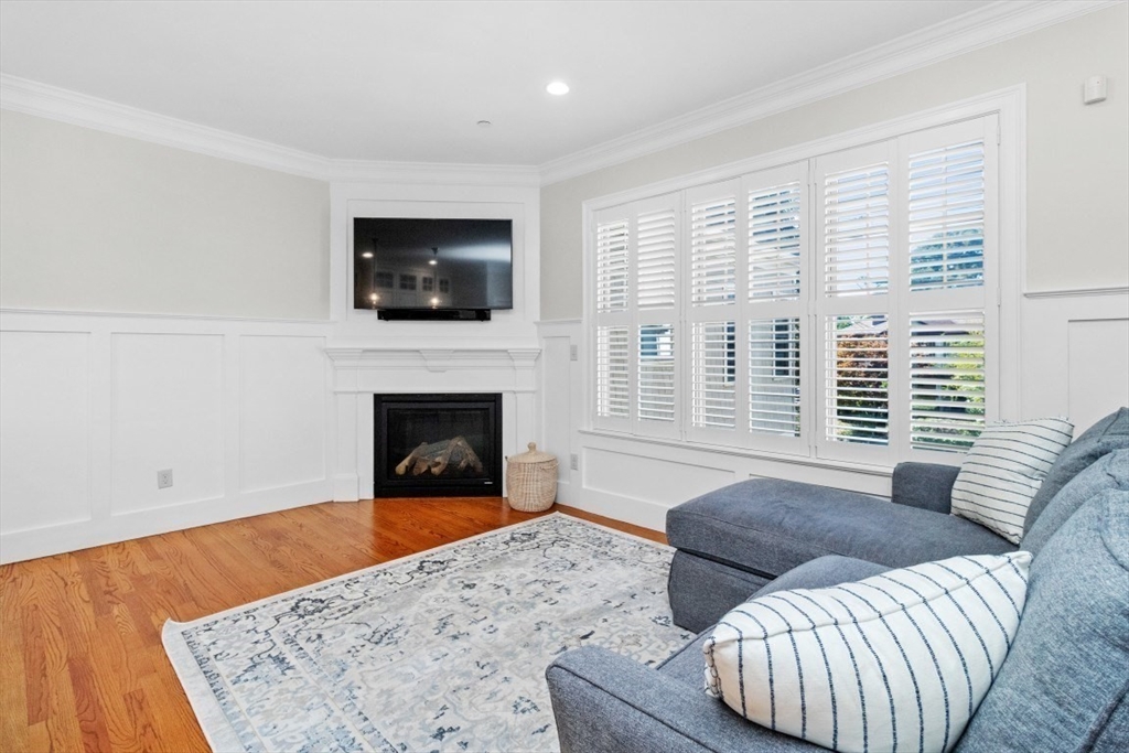 Exceptional and impeccably maintained townhouse with an open concept main level & built for everyday living and entertaining. The spacioous kitchen features a center island, high ceilings, beautiful cabinetry, laundry, & hardwood floors. The living room is accented with high end finishes, crown molding, wainscotting, gas fireplace & plantation shutters. The primary suite boasts a marble bathroom & opens to a private outdoor deck, great for relaxing with your morning coffee, or after a long day. There are two additional bedrooms & a marble bathroom. The home office is a bonus to potentially convert into a fourth bedroom. Updates in 2021 include freshly painted interior, kitchen with new sink, countertops, & disposal. New light fixtures, recessed lights & new carpeting are also additional updates. Rarely available 2-car garage with storage.Conveniently located in Needham Heights near restaurants, shops, and commuter rail. Welcome Home!