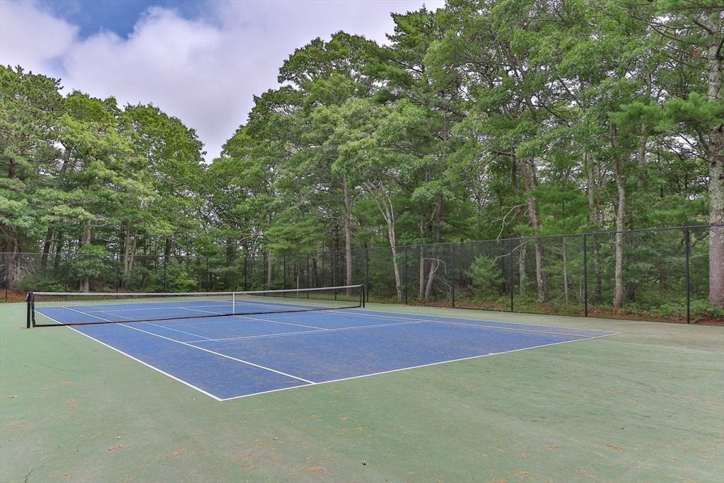 Effortless Cape Cod living in this sun soaked, updated 2BR/2.5BA end-unit townhome in sought-after Sea Oaks. Features include new flooring, fresh paint, updated central heat/AC, new water heater, and new stainless steel fridge. The living room offers a wood-burning fireplace and abundant natural light. Upstairs, two spacious bedrooms with ensuite bathrooms and ample closet space provide comfort and privacy. The guest suite features a Juliette balcony overlooking tranquil conservation land. The primary suite includes a jacuzzi tub and walk-in shower. The partially finished lower level adds flexible living space, currently used as a bedroom, with a new mini-split for heating/cooling. Enjoy updated custom landscaping and a private patio for outdoor relaxation. Sea Oaks community offers professional management, pool, tennis/pickleball, deeded parking, and is pet-friendly. Conveniently located just minutes to Mashpee Commons, gorgeous local beaches, and all that Cape Cod has to offer!