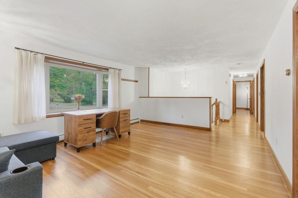 Welcome home! This well maintained 3-bedroom, 2.5-bath split-entry home offers over 2,600 sq ft of living space on nearly half an acre. The main level features Eat-in Kitchen fully applianced, granite countertops and access to the exterior patio, and composite deck-perfect for entertaining, Dining Room, Living Room, Primary Bedroom has full bath, full bath in hallway. Hardwood floors throughout most of the upper level. Finished lower level offers a cozy family room with fireplace, built-in bar, laundry, and half bath, and sunroom. Enjoy outdoor living in your private, landscaped backyard with storage shed. Spacious two-car garage. Conveniently located to schools, shopping, parks, and major routes including I-95/128. A perfect blend of space, comfort, and location. OPEN HOUSES Saturday, 10/18 10-11:30, Sunday 10/19 10-11:30. Schedule your showing today! OFFERS DUE on Tuesday, 10/21 at 10 am.