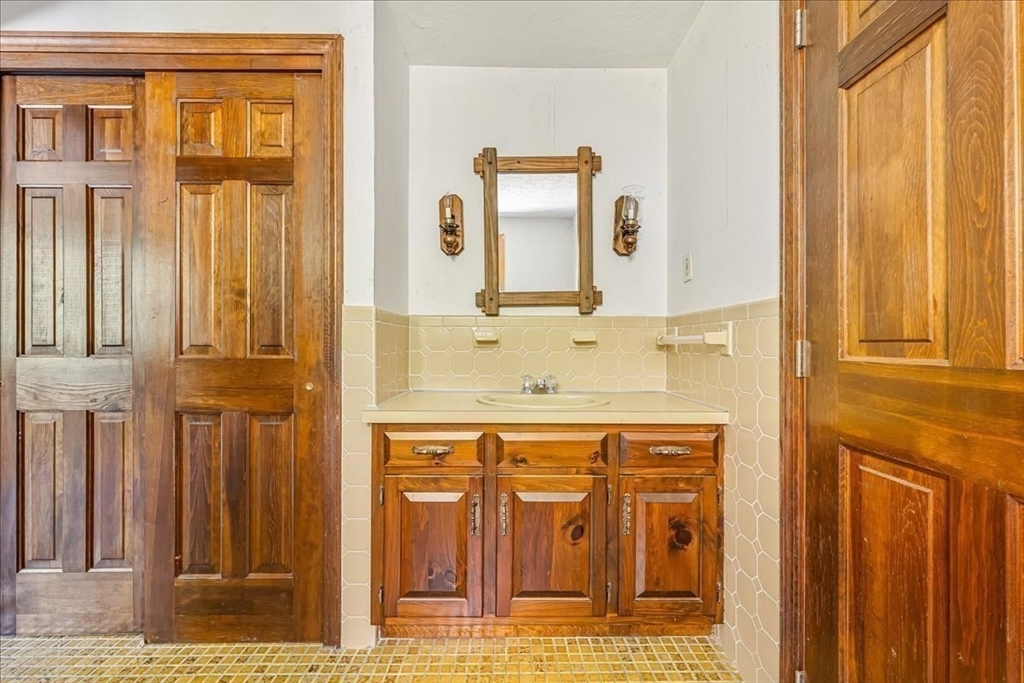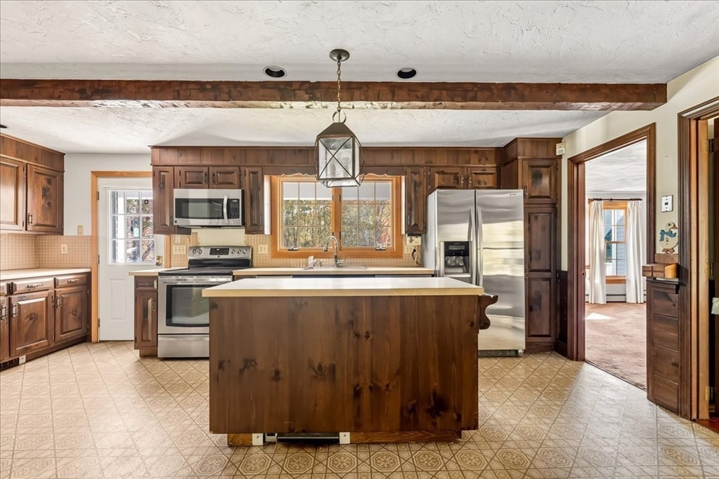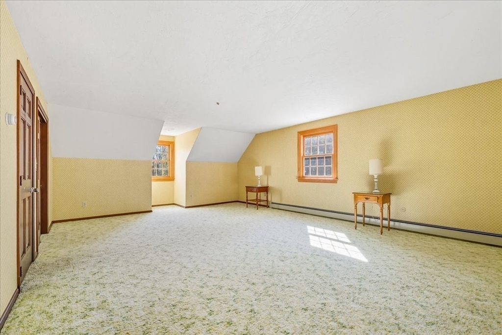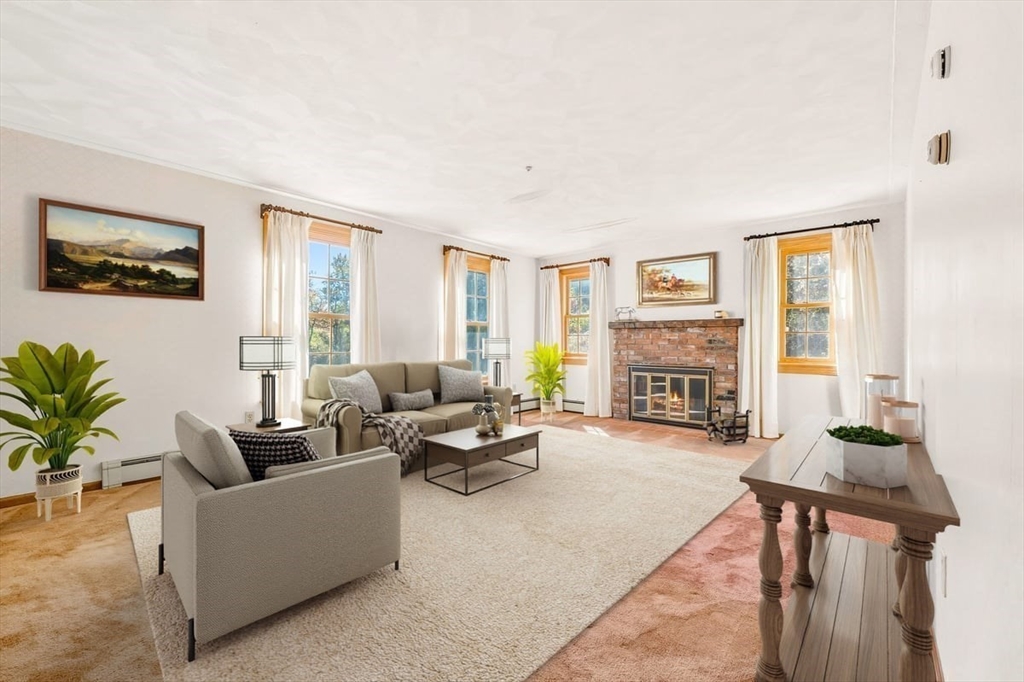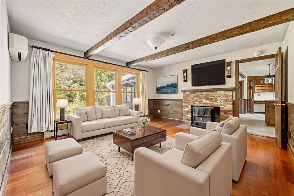 Custom Cape set on a picturesque 2.61-acre lot along a scenic country road has potential for a buildable two home lot with 474 feet of frontage. The first-floor primary suite offers hardwood floors and private bath with tiled flooring. A formal living room with fireplace and abundant natural light opens to the formal dining room. The family room features cherry hardwood flooring, a brick fireplace, beamed ceiling, and wainscoting. The spacious kitchen boasts a fireplace, center island, walk-in pantry, laundry area, and slider to a screened porch overlooking the private wooded lot. Upstairs offers two generous bedrooms with a Jack & Jill full bath. The huge unfinished lower level includes a versatile bonus room, once a professional woodshop. Relax with your morning coffee on the front farmer’s porch with views of towering pines. Two car attached garage. Town Water/Sewer. Award-winning school district with language immersion. Close to Oak Grove Farm and ~4 miles to the commuter rail.