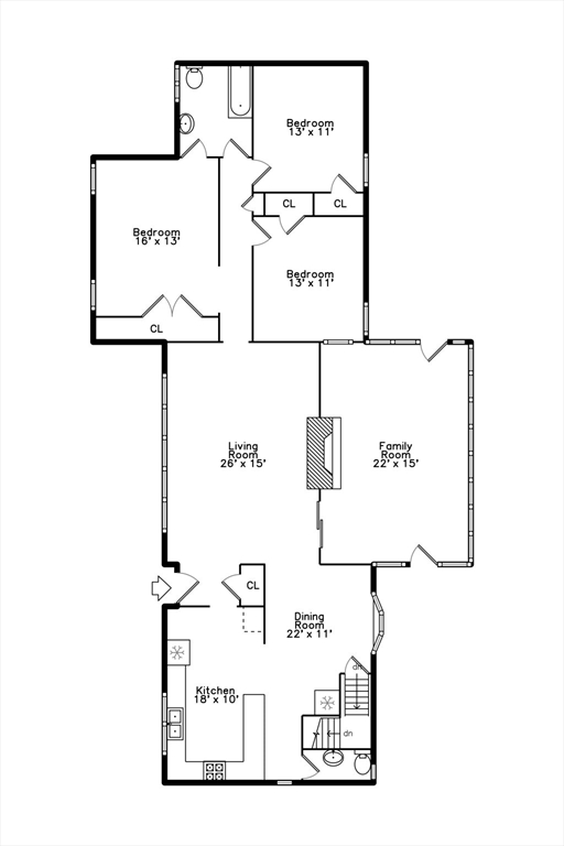 Excellent opportunity for investors, developers or buyers looking to restore and customize a home, or raze it and build new! Great location in Westwood on a corner lot. Sold as-is. Cash sale preferred. Spacious ranch. Living room with fireplace & hardwood floors. Family room with fireplace off the back of the house overlooking the enclosed in-ground pool. 3 bedrooms. Full bath with access to the primary bedroom and hallway. The basement has lots of potential for additional living space. Had been finished at one point in time. Basement has water damage and mold from a burst hot water tank. 3rd fireplace is in the basement.