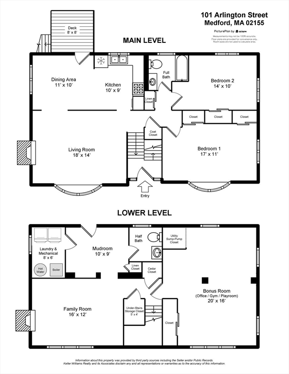 COMING SOON - amazing opportunity for First-Time Homebuyers! This raised ranch, 2-story home on a 6,500-SqFt lot, just off Rt.16 over the Mystic River on the Arlington/Somerville line. 50+year family-occupied, well-maintained throughout, and ready for its next chapter. Presently a 2BD/1.5BA home, the upper level offers a spacious front-facing living room with a fireplace and an eat-in kitchen, leading to a rear deck & fence-enclosed yard. Two generous bedrooms, each with corner windows, a full bath & adjacent closets. Transition to the lower level to find an open living area and fireplace; the former Family Room. A 2nd rear egress leads to the back yard from the mudroom, flanked by the laundry/utility room & half-bath. A finished “bonus room” offers many possibilities: home office, gym, studio or playroom. Neighborhood recreational amenities across-the-street, including tennis & basketball courts @ Dugger Park, Amsell Colebrooke Playground & walking trails along the Mystic River Path.