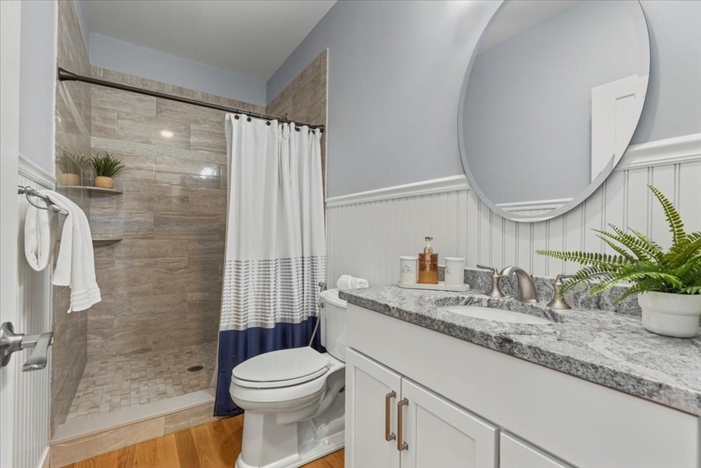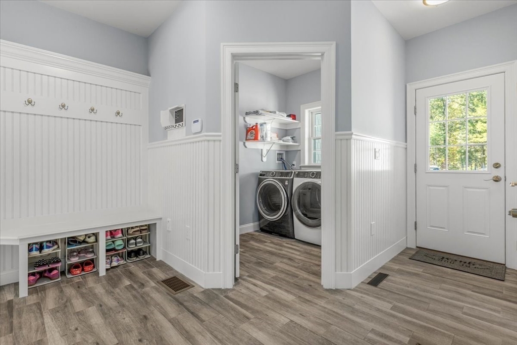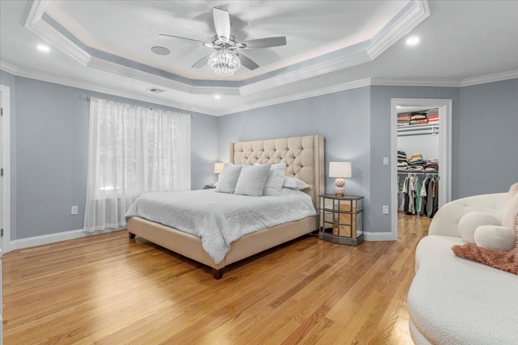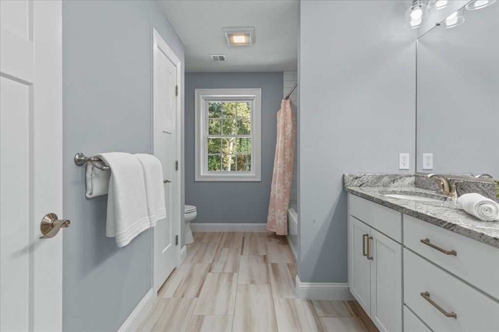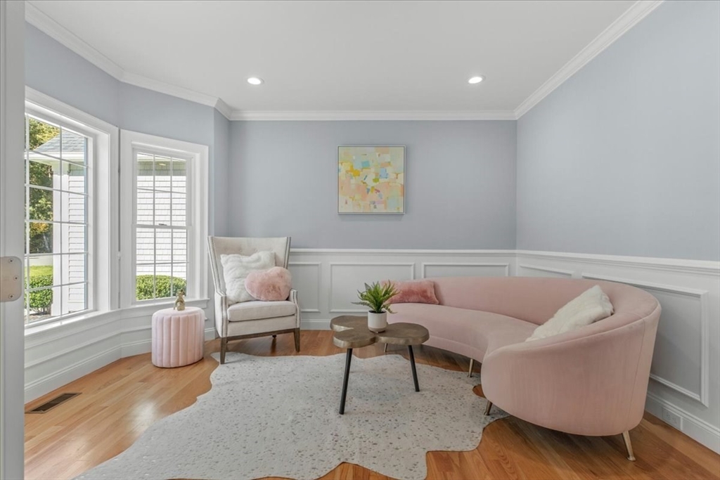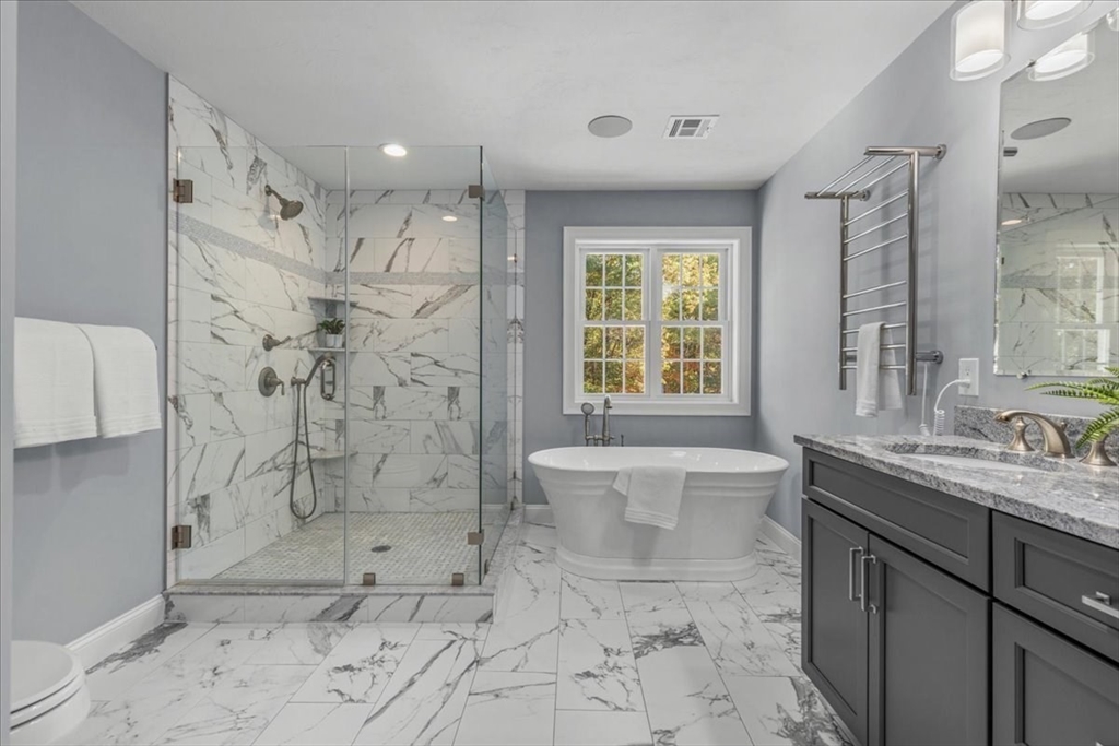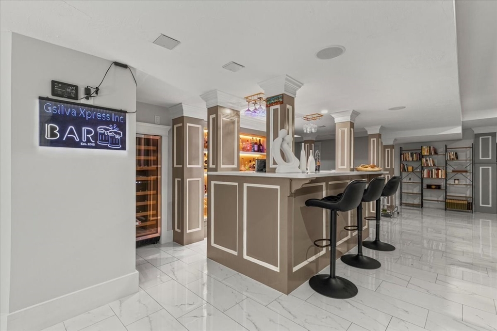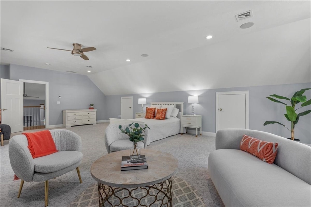 Welcome to 4 Lost Brook Trail in Walpole—an exceptional 5BR, 3BA Colonial built in 2020 on 2.94 private acres abutting conservation land. With 5800 sq ft, this home impresses with a soaring foyer, custom millwork, and abundant light. The gourmet kitchen offers a large 8 1/2 foot island, high-end Wolf appliances, 42" Sub-Zero fridge, walk-in pantry, and breakfast nook opening to a step-down cathedral family room with fireplace. Formal dining with bay window and an elegant living room provide ideal entertaining. The primary suite boasts a tray ceiling, spa bath with soaking tub, glass shower, dual vanities, and walk-in closet. Three additional bedrooms plus a bonus room add flexibility. The finished basement with bar and movie theatre elevates recreation. Outdoors, enjoy an expansive 50'x56' patio with built-in hot tub, firepit, and pergola. Nestled in North Walpole’s premier enclave near schools, parks, shopping, and major routes, this rare offering is complete with a three-car garage.