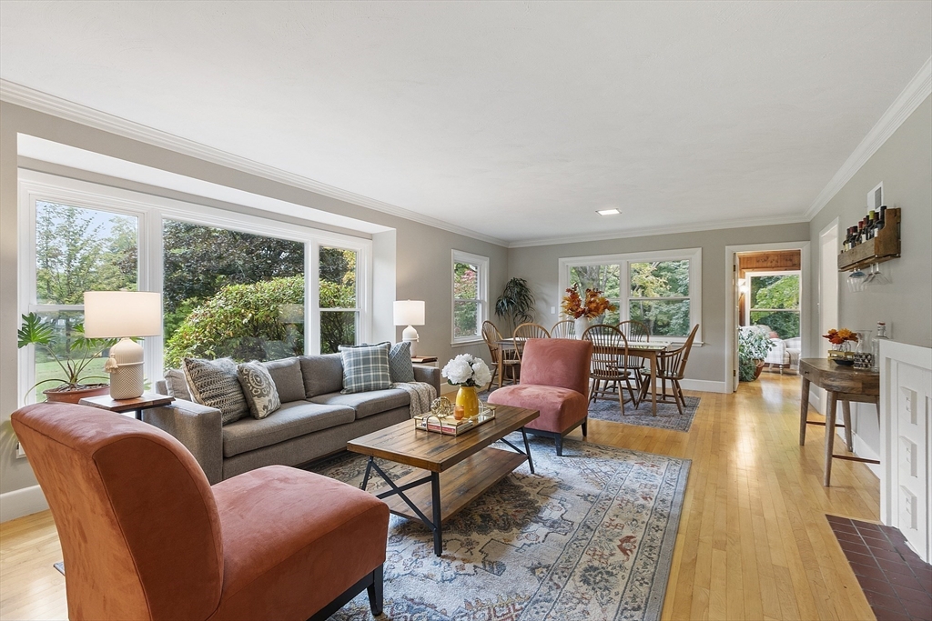 Welcome to 179 Harwood Ave., enjoy single level living in this beautifully renovated brick ranch on 1.4 acres just minutes from The Point, MBTA rail, major commuting routes, top-rated Littleton schools and Nashoba Valley Ski Area! The 2023 kitchen features pretty white cabinetry, quartz countertops and natural gas cooking, and leads to the three-season room overlooking the private backyard with firepit. The oversized fireplaced living room with bay window flows into the dining room, while the front-to-back family room lined with floor to ceiling windows showcases the expansive front and back yards. The main suite features a full bath and double closet, complemented by two additional bedrooms and second full bath. Renovations include the kitchen, septic, windows, roof and mechanicals. Outdoor highlights include a patio, stone walls, mature landscaping, and a two-car garage with extra parking. There’s nothing to do but pack your bags and move right in, see you at the open houses!