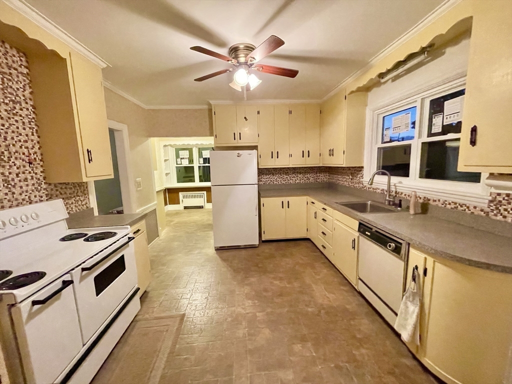 This lovingly maintained home located in the west end of town has been in the same family for 53 years and is ready for a new owner! The most recent updates include windows, exterior doors, vinyl siding, roof, 200 amp electric service. As you enter through the front door, imagine relaxing after a long day on the west facing 320 sq ft 3 season porch with Jalousie windows. Also located on the first floor is the expansive living room with hardwood oak flooring and brick fireplace, dining room and family room with hardwood flooring, large kitchen with separate dining area and 1/2 bath. The 3 bedrooms on the 2nd floor have hardwood flooring each with its own walk in closet, and a bonus cedar closet! The full bath has a new toilet and retro black and white tile with built in cabinets. The full basement has the washer/dryer, a tool closet, gas boiler installed in 2015 and gas hot water tank. The large partially fenced back yard is perfect for gardening and has a mature fruiting peach tree.
