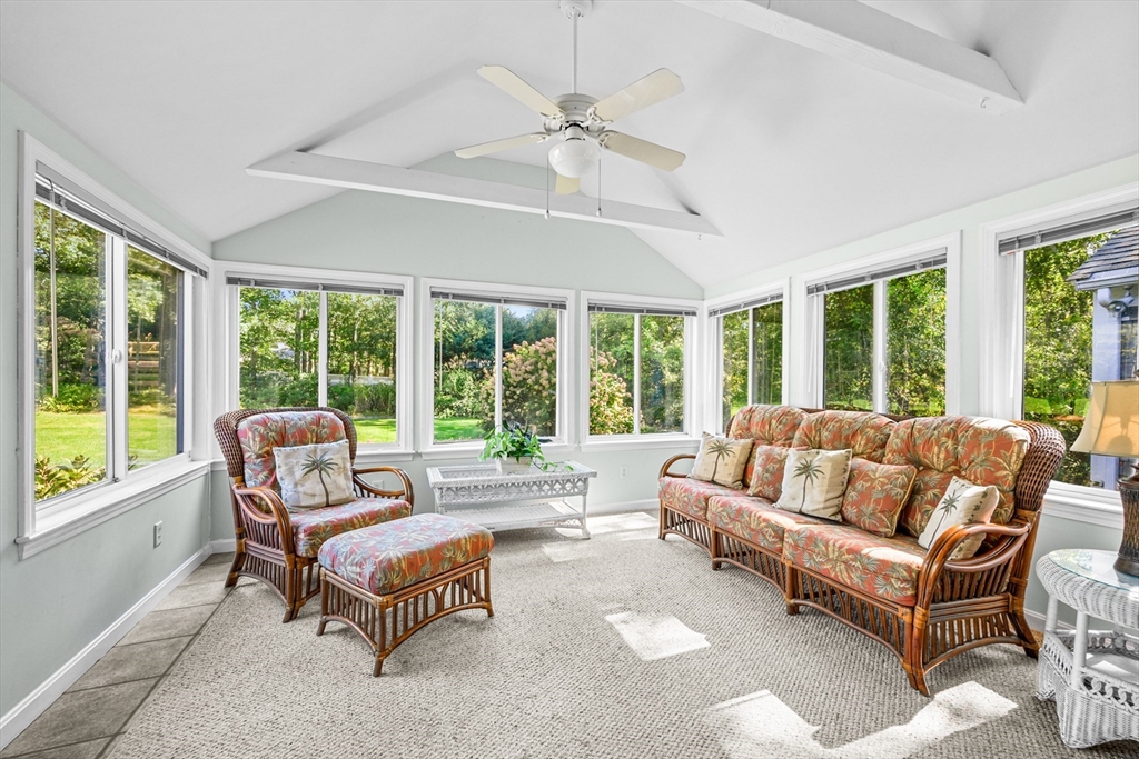 Charming ranch-style home, nestled in a popular neighborhood, with thoughtfully designed floor plan! The large living room features a wood-burning fireplace, surrounded by custom built-ins. The spacious kitchen boasts sleek silestone countertops and stainless appliances. A fabulous sunroom serves as a favorite spot for relaxation and soaking up natural light yr-round. The home includes 3 bedrooms and 2 pristine full bathrooms, as well as a laundry area for easy one-floor living.?Practicality meets ease with an attached garage offering direct access, making unloading groceries hassle-free, and there is a large basement for storage. The new roof and central AC adds to the home's list of modern updates. A standout feature of this property is the expansive, level yard with room for a pool and full sun. Additional amenities include an outdoor shower, retractable awning, and irrigation.?Close to dining and shopping, Bass River for boating or kayaking, and excellent beaches and golf courses,