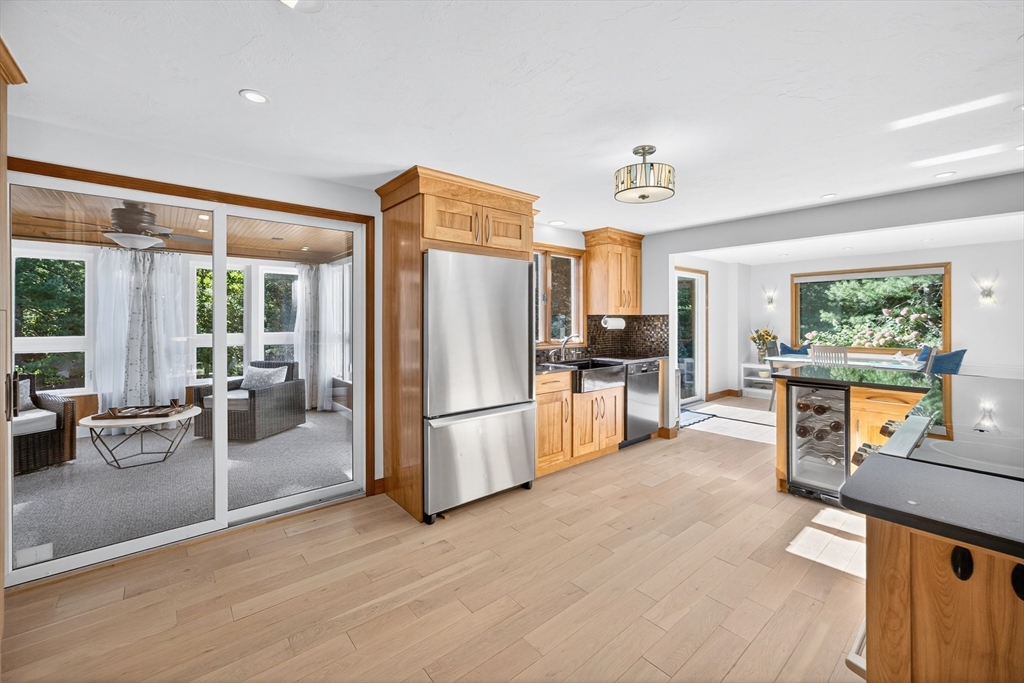 Welcome to 121 Streeter Hill in North Falmouth, where comfort meets coastal charm. This beautifully updated Contemporary style Cape offers four bedrooms and three full baths, designed for effortless living and entertaining. Sunlight fills the open-concept living area, featuring soaring ceilings, a lofted sitting space, and seamless flow to the modern kitchen with granite counters, stainless appliances, and rich wood cabinetry. Radiant tile floors in the entry and baths add a touch of everyday luxury. A sunroom overlooking the heated saltwater pool invites you to relax and take in the beauty of the lush, mature landscaping that surrounds this private backyard retreat. With three levels of flexible living space—including a bright walk-out lower level—there's room for everyone to spread out. Enjoy year-round comfort with updated heating and cooling systems, plus thoughtful upgrades such as a new epoxy-finished garage floor, stone driveway, and cedar fencing. A true N. Falmouth gem.