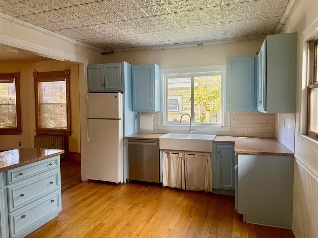 Welcome to this Charming Single-Family Home in the PRATTVILLE area of Chelsea! This very large well-maintained 3-bedroom, 1.5-bath home offers a warm and inviting layout with plenty of character. The first floor features a bright living and dining area with tall ceilings, an open floor plan, and beautiful French doors that lead to a spacious porch, ideal for relaxing or entertaining. The kitchen is equipped with hardwood floors, a gas stove, and classic radiator heating throughout. A convenient half bath is also located on the main level. Upstairs you'll find a generously sized primary bedroom, two additional bedrooms, and a nicely updated full bath. The finished attic provides excellent bonus space with a large closet, perfect for a home office, or additional storage. Located close to parks, public transportation, shopping, and just minutes from Boston, this home offers both charm and convenience. Don't miss your chance to own in a prime Chelsea location! This cutie will NOT last!