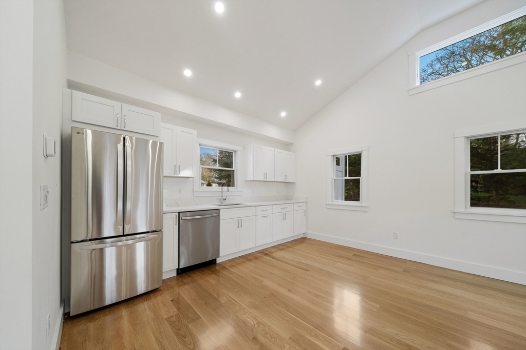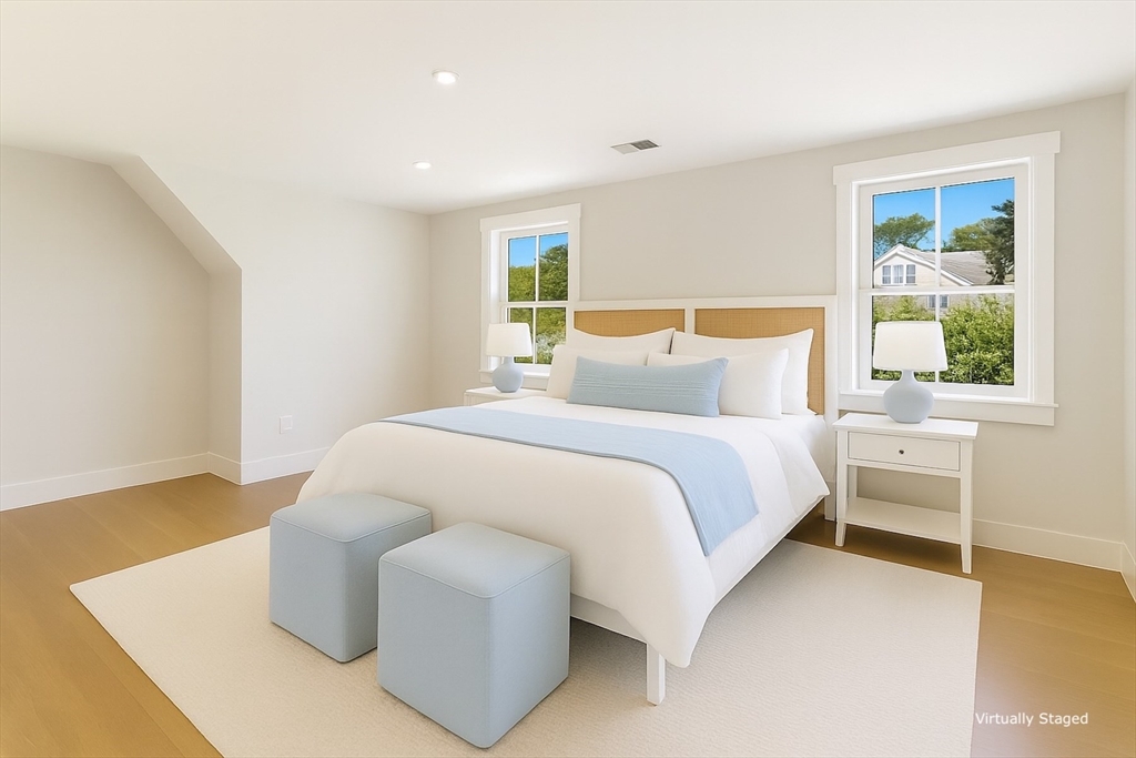 On the doorstep of vibrant Oak Bluffs, discover this exquisitely renovated four bedroom home with separate office or studio space, all ensconced in professionally landscaped grounds. Blending modern comfort with timeless island charm, the house features wide plank white oak floors, beautiful ceiling height and natural light, an open-concept living-dining space with a new kitchen, a first-floor primary bedroom with ensuite bath, powder room, and laundry room. Upstairs are three additional spacious bedrooms and two full baths. A new roof, siding, and central air enhance comfort. Outside, enjoy a large back deck, welcoming porch, and an expansive yard with irrigation, a new sod lawn, evergreen and privet hedge borders, plus a classic Vineyard must-have: an outdoor shower. Ideally located near charming Oak Bluffs with its whimsical gingerbread cottages, Flying Horses Carousel, harborfront, shops, dining, and nearby Oak Bluffs Town and Jetties beaches. Buyers and agents please verify all.