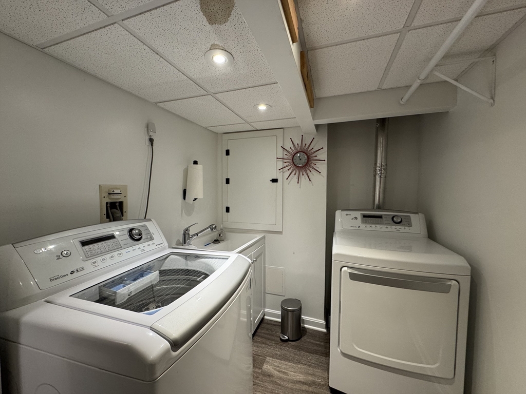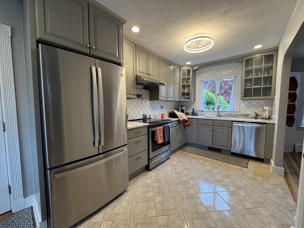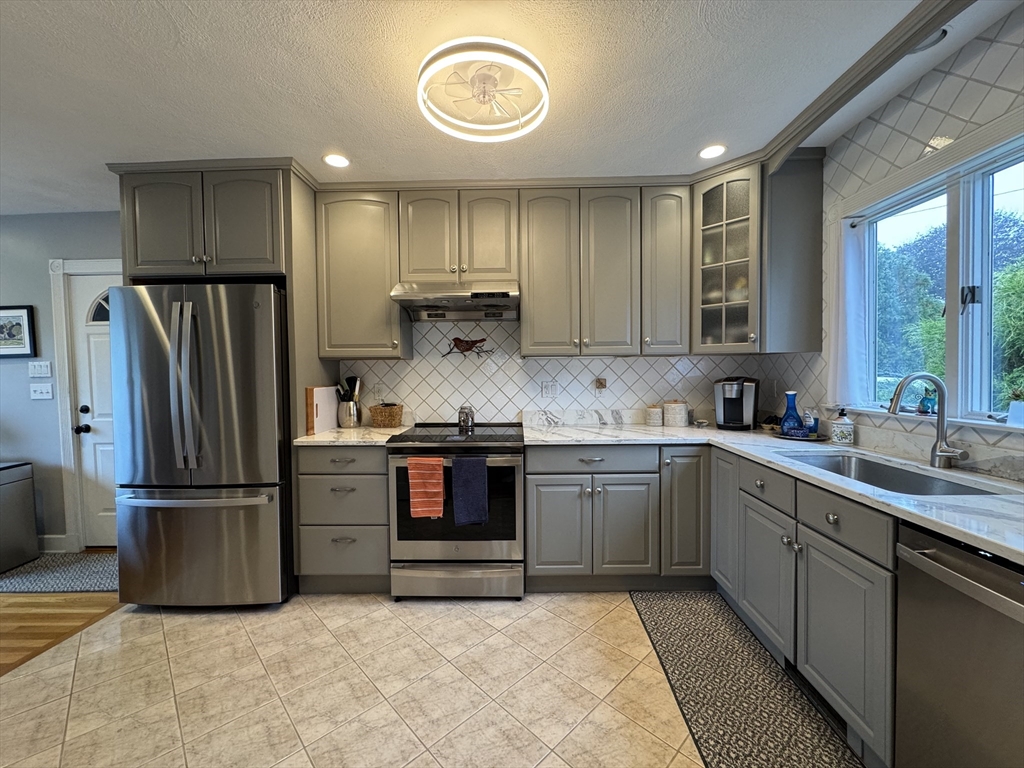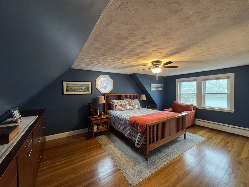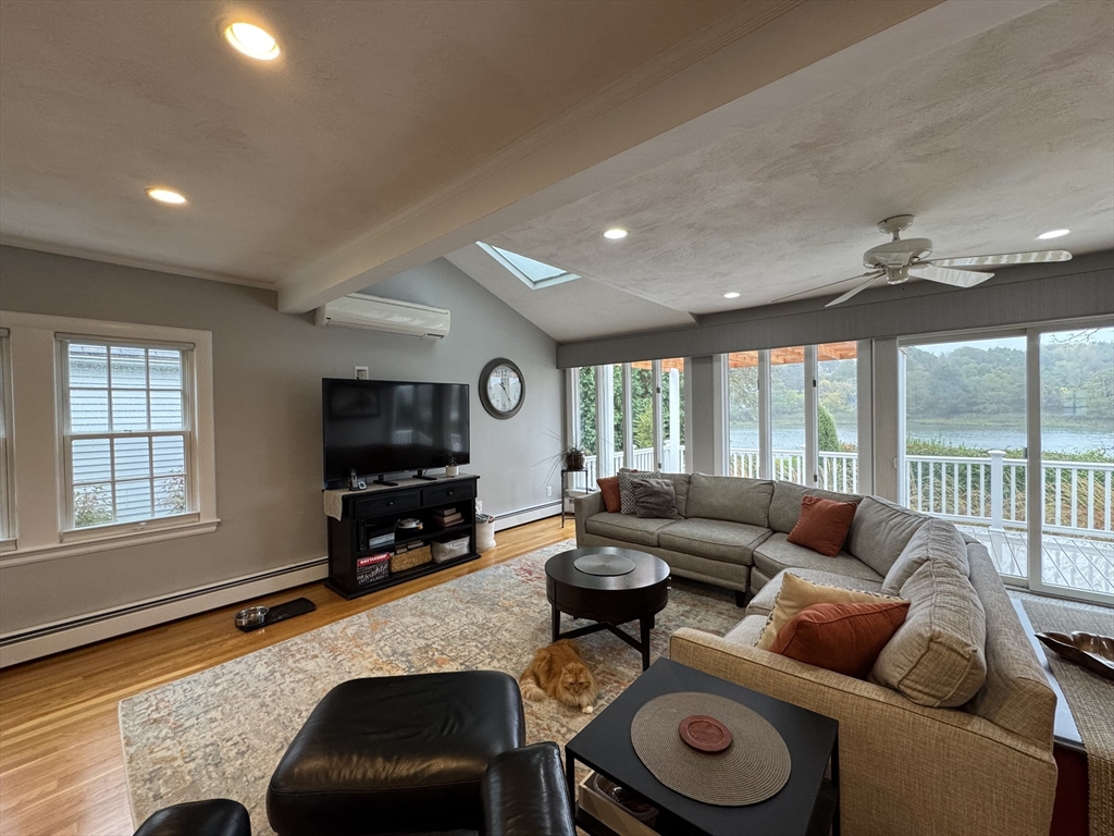 Idyllic private backyard with panoramic views of Forest River in Salem, MA, a short walking distance to the Marblehead Rail Trail and scenic views of Salem Harbor. Enjoy nature’s beauty while you barbecue and sit at the gorgeous deck or under the brand new pergola of this renovated two-bedroom, two bathroom Cape-style home with garage and ample additional parking. The first floor offers a spacious living room with full water views, hardwood floors, a beautiful gas fireplace and a full bathroom with steam. The bright and sunny kitchen overlooks the water and marsh and features stainless steel appliances and quartz countertops, and opens up to the dining room. Upstairs, retreat to a spacious master bedroom with ample storage and custom built-ins, a second bedroom and a stylish full bathroom. Enjoy the game with your friends in the finished basement that features a second gas fireplace, laundry, additional storage and space for an office or gym.
