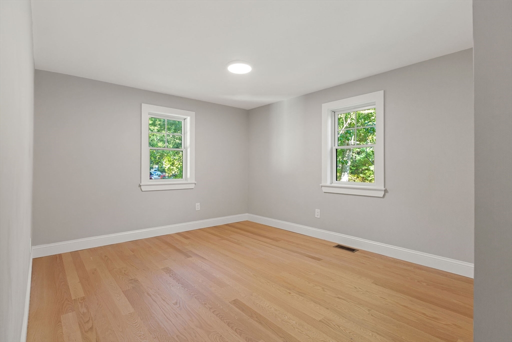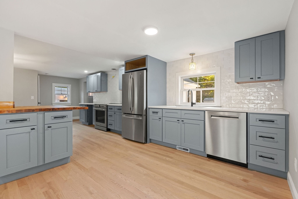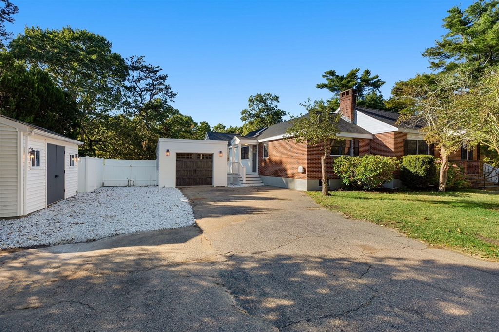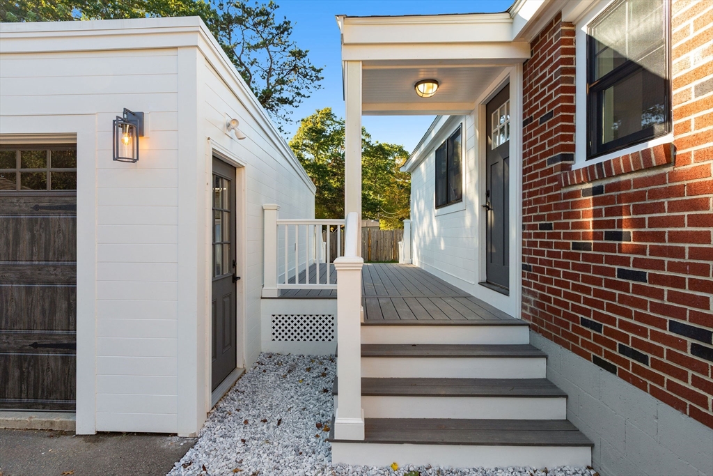 Gorgeous brick ranch home with hip roof lines on the "L'" turn addition. Everything has been updated, both inside and out. New roof, siding, trim and windows (black) on the house and garage. The brick was power-washed clean. All the exterior decking and railings have been upgraded. Inside the home, all systems are new- 200 AMP electric panel, New HVAC system (including ducts), plumbing, white oak hard wood floors, kitchen, cabinets, quartzite counters, s/s appliances, butcher block island, brand new bathroom tub w/ tile surround, vanity and fixtures- yes, all permitted, inspected and very expensive. Three bedroom passing title V in hand. Open concept floor plan seamlessly flowing from living room, kitchen to fireplace'd dining room / living room. Fenced in in yard for year round use for pets and children. Located off Red Brook Road and just steps from the gorgeous Lyman Reserve trails and Red Brook foot bridge. Wonderful opportunities for 2nd bath depending on buyer needs.