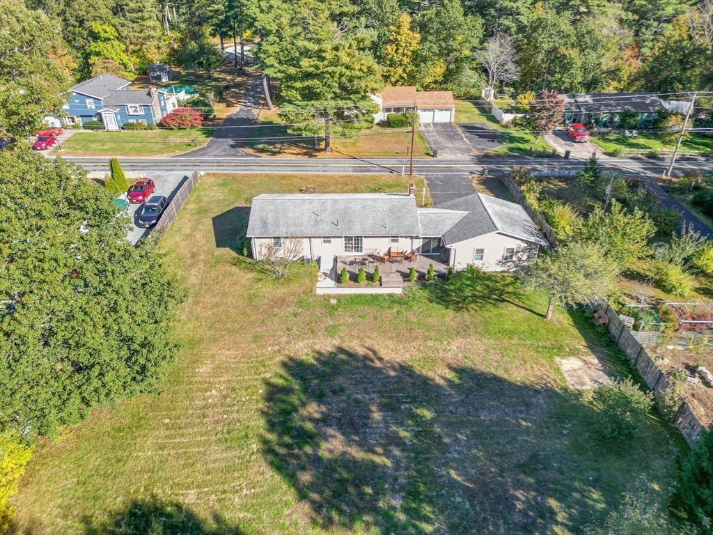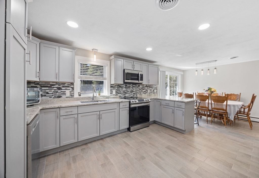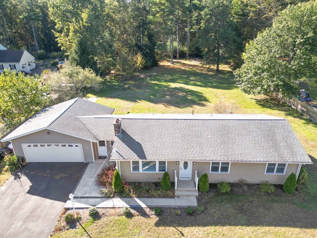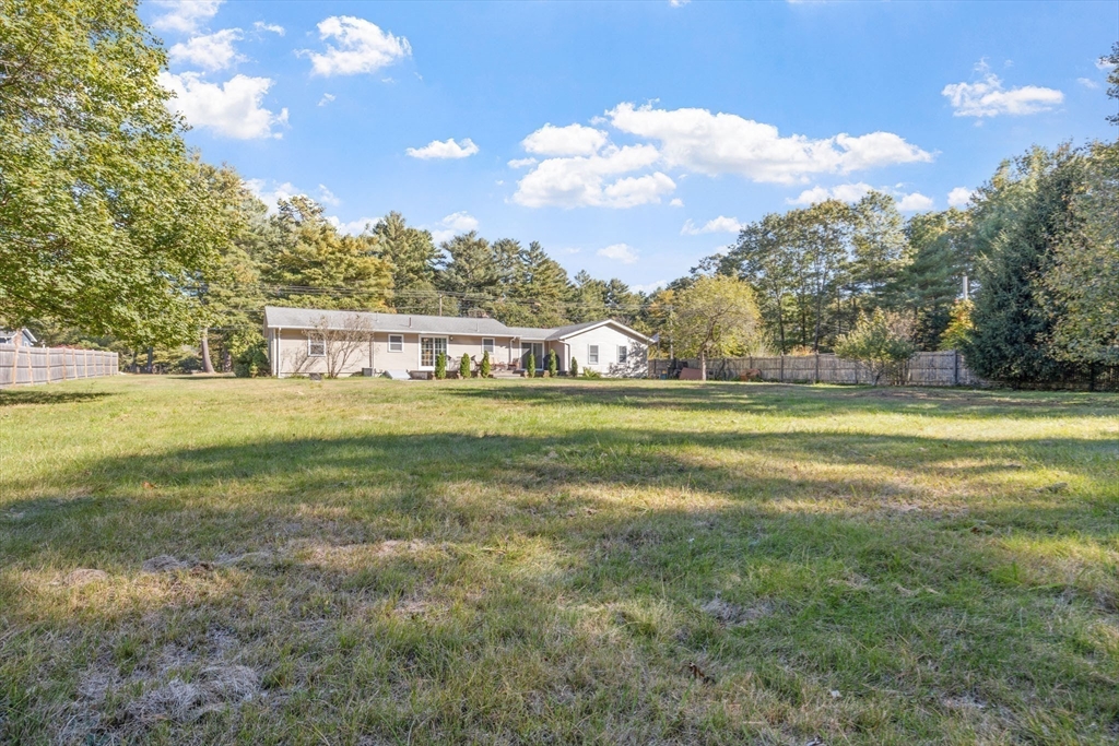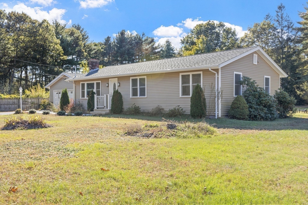 Open House Thursday 4:30-6 Friday 4:00-5:30 and Saturday 1-2:30. BEAUTIFUL RANCH! Set on over ¾ acre, this stunning 2023 renovation offers modern comfort and style throughout. Exterior updates include new vinyl siding, windows, roof, and landscaping. Inside, the bright open layout features a updated eat-in kitchen with granite counters, stainless appliances, and dining area flowing into a spacious living room with fireplace. Three large bedrooms and a beautifully renovated bath complete the main level. Sliders open to a large cement patio overlooking a private, tree-lined yard. The finished lower level adds approx. 1,000 sq ft of living space with a bar area, laundry, and full bath—perfect for entertaining or extended living. Freshly painted, with updated heating and central air. Move-in ready! Just 9 minutes (4.7 mi) to Franklin MBTA station—close to highway. An ideal commuter location!