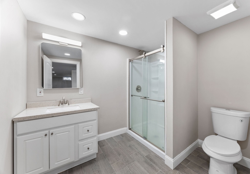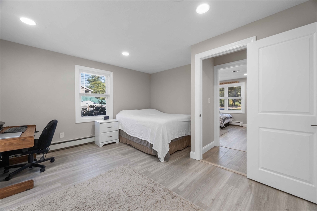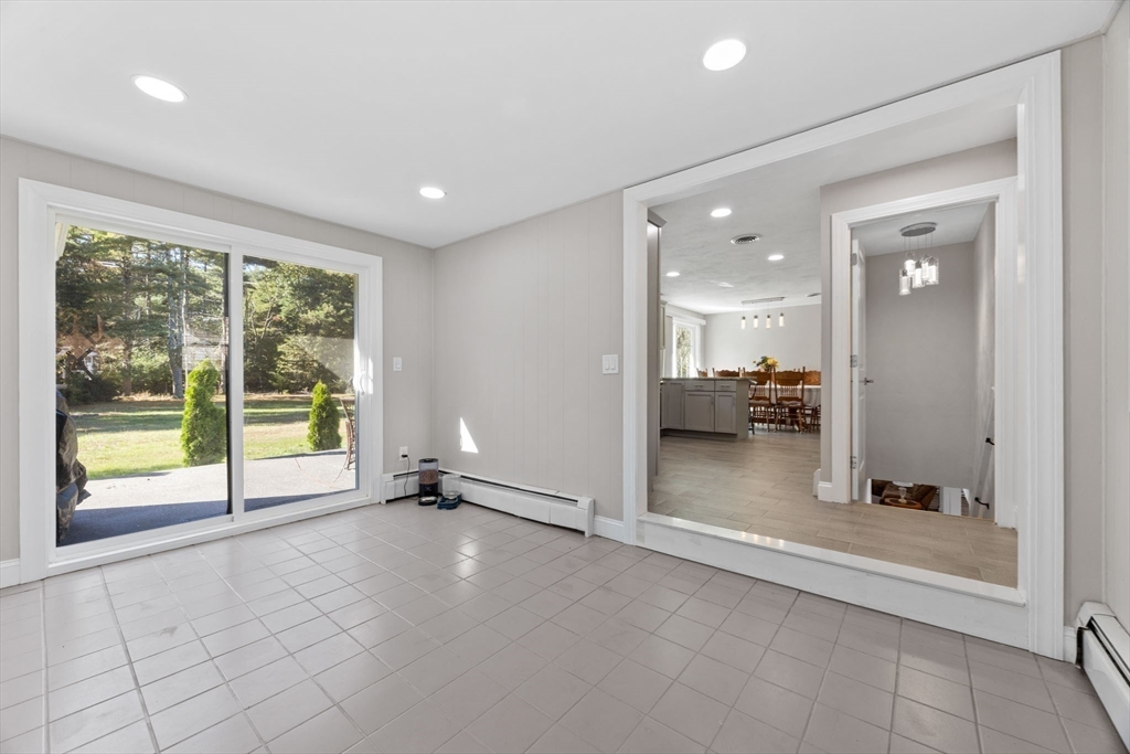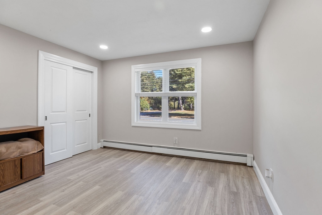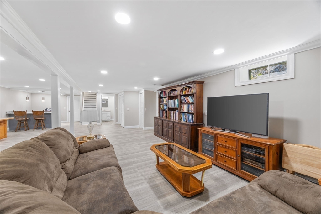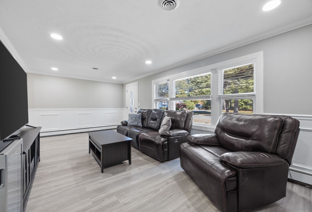 Open House Thursday 4:30-6 Friday 4:00-5:30 and Saturday 1-2:30. BEAUTIFUL RANCH! Set on over ¾ acre, this stunning 2023 renovation offers modern comfort and style throughout. Exterior updates include new vinyl siding, windows, roof, and landscaping. Inside, the bright open layout features a updated eat-in kitchen with granite counters, stainless appliances, and dining area flowing into a spacious living room with fireplace. Three large bedrooms and a beautifully renovated bath complete the main level. Sliders open to a large cement patio overlooking a private, tree-lined yard. The finished lower level adds approx. 1,000 sq ft of living space with a bar area, laundry, and full bath—perfect for entertaining or extended living. Freshly painted, with updated heating and central air. Move-in ready! Just 9 minutes (4.7 mi) to Franklin MBTA station—close to highway. An ideal commuter location!