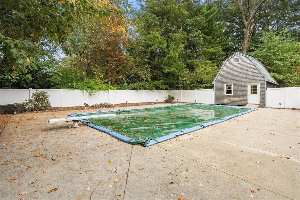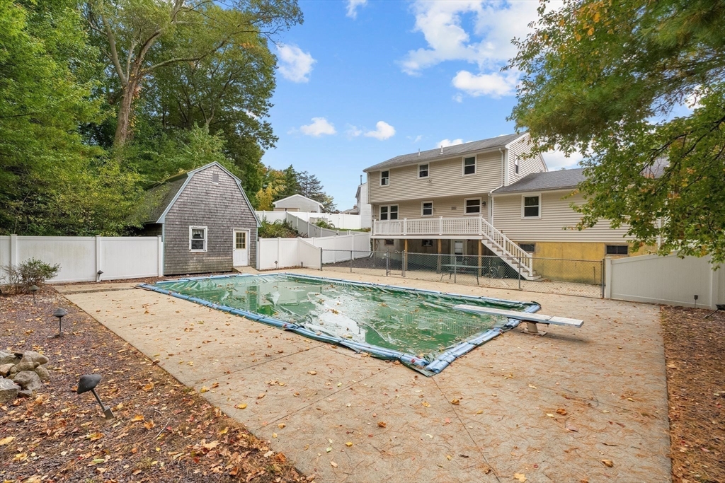 Lovingly maintained by the original owners since 1975, this beautiful Colonial sits on a quiet cul-de-sac in a desirable dead-end neighborhood. Featuring 4 bedrooms, 2.5 baths, and a finished basement, this home offers generous space for living, working, and entertaining. The open flow and large bedrooms make it ideal for family life. Step outside to a spacious deck overlooking the inground pool—perfect for summer gatherings. A huge two-story shed offers endless possibilities, from storage to a potential pool house. Conveniently located just 1.3 miles to the Red Line MBTA, close to shopping, restaurants, and more. An entertainer’s dream in a peaceful, sought-after neighborhood!