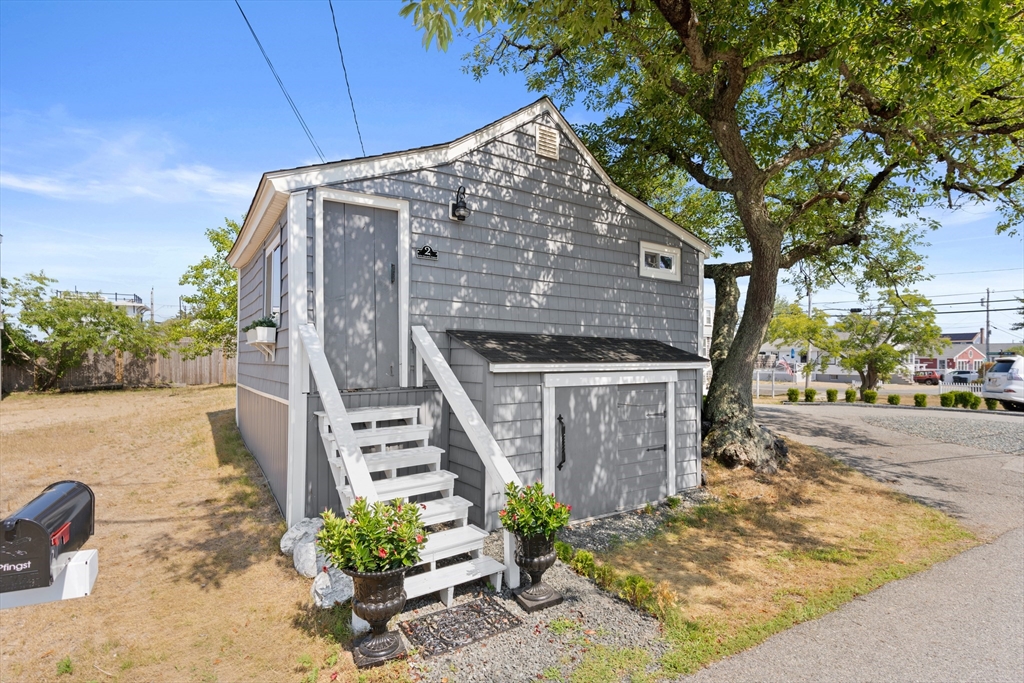 Discover the ultimate Plum Island retreat at the "Wishbone"— including 2 lots totaling 8,662 sqft. This charming 2-bedroom, 1.5-bath, 1,074 sqft main home is complemented by a detached bunkhouse with kitchenette and full bath, ideal for guests, home office, studio, or rental income. The 1,074 sq ft does not include the ~224 sqft bunkhouse or the ~371 sqft 3-season porch. Centrally located on the island, the property sits on a rare double lot with a large lawn, 6+ parking spots, and unbeatable proximity—just 1 block to the ocean and ½ block to the Basin. The first level offers living and dining rooms, 3-season porch, office, kitchen, laundry, and half bath; upstairs features 2 bedrooms and a full bath. Outside, enjoy a private back porch, outdoor shower, and the charming bunkhouse. Proven short-term rental success ($125K+ in 2024, $116K+ YTD 2025) with option to convey fully furnished makes this an exceptional investment or lifestyle opportunity.