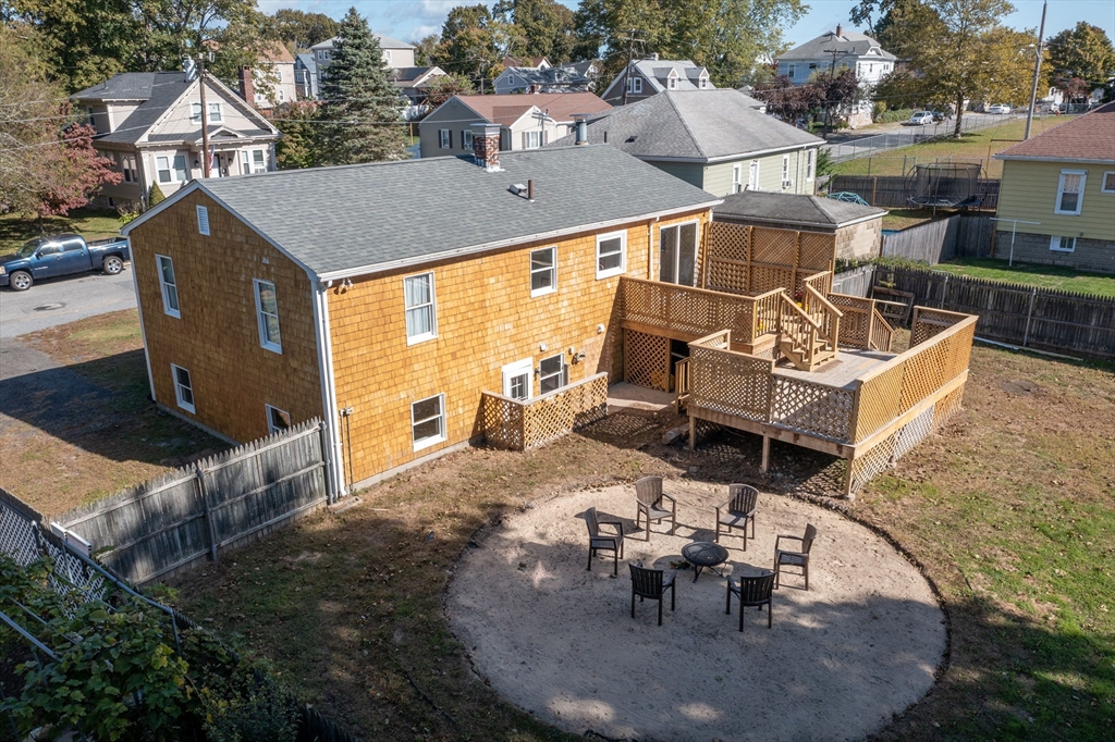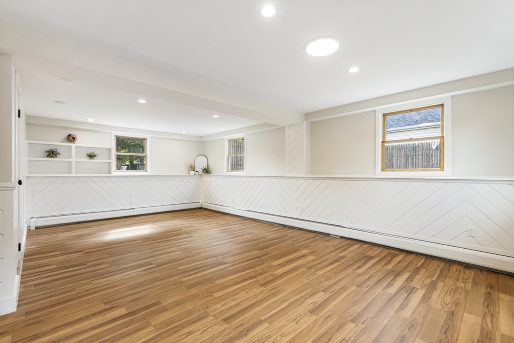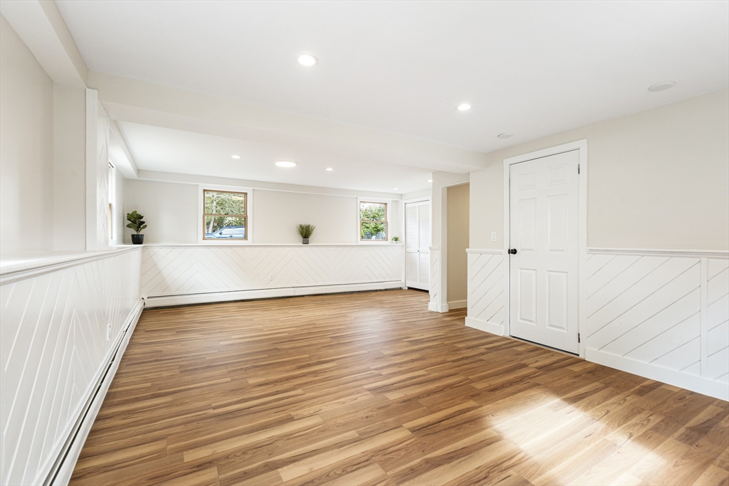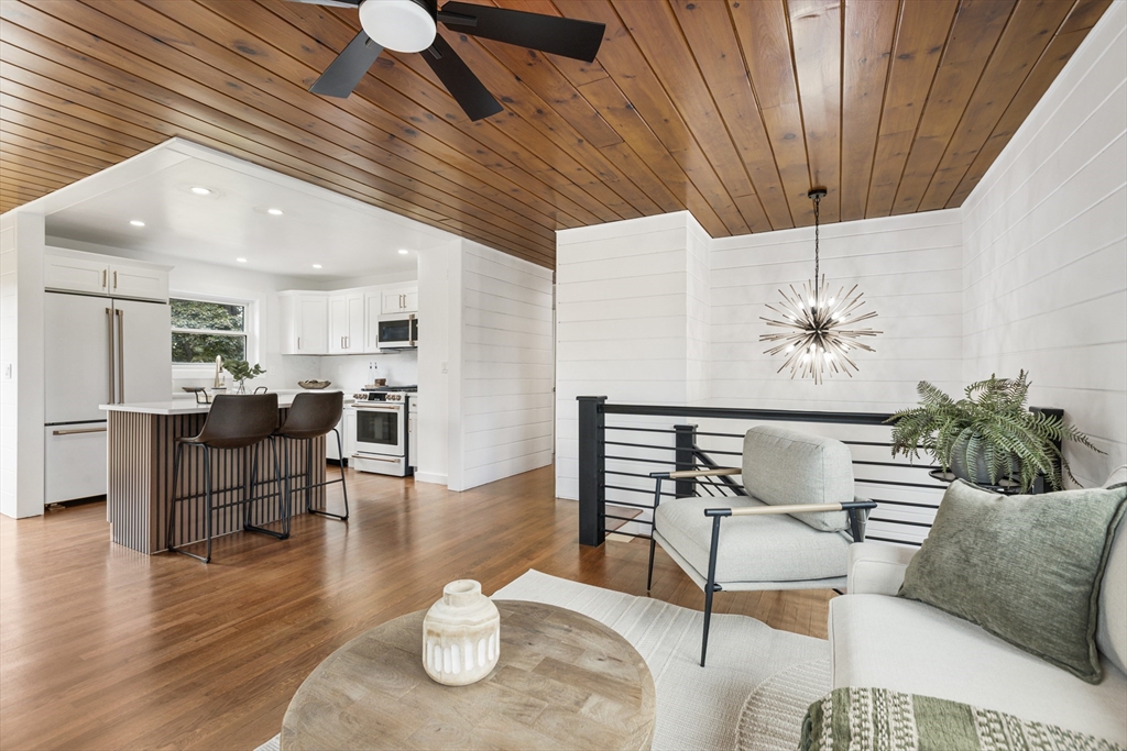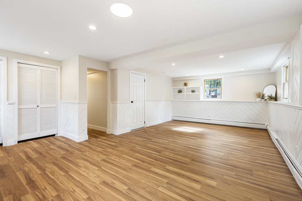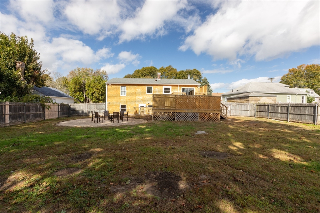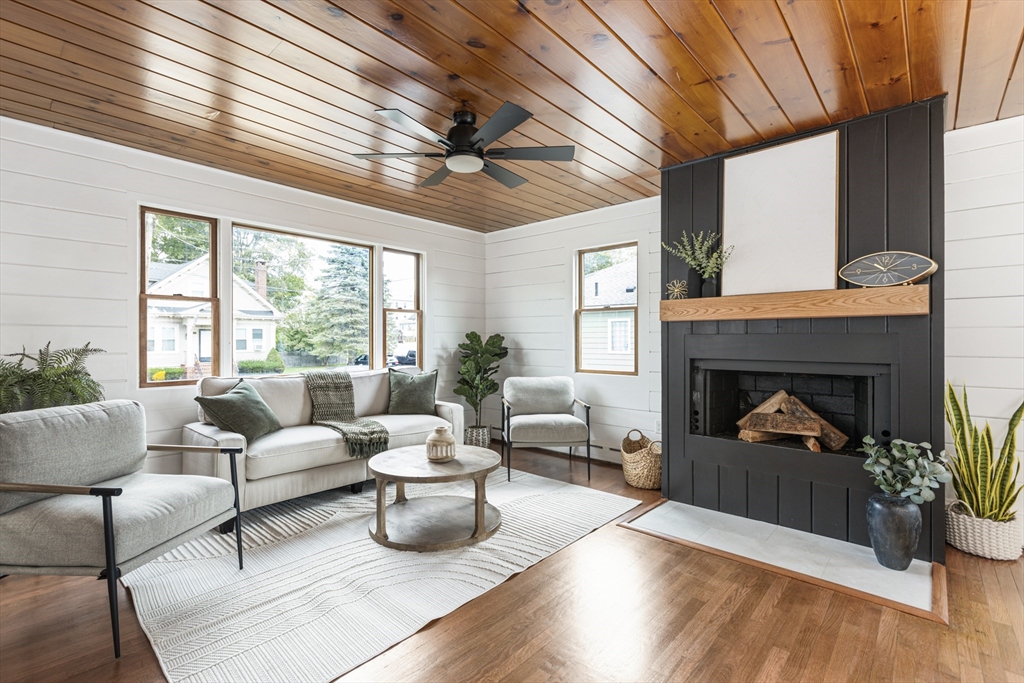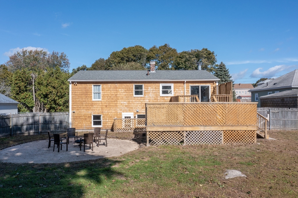 Modern comfort meets timeless style in this beautifully refreshed New Bedford Raised Ranch. Open-concept living where natural light pours across refinished hardwood floors. The living room’s fireplace sets a cozy tone that flows into the dining area and a kitchen designed to impress. Granite counters and backsplash, an island, and sleek Café appliances for that “wow” factor. Sliders lead to a spacious deck overlooking a fenced yard with shed, perfect for gatherings, morning coffee & night caps. The main level also features 3 Bedrooms and a Full Bath. Downstairs offers updated flooring, a second Full Bath, laundry hookup, and a walkout. The space is ideal for a media room, home gym, or in-law setup. Freshly painted throughout with a neutral palette, thoughtful updates, and statement lighting add just the right touch of modern edge. Conveniently located near schools, shopping, and highway access.