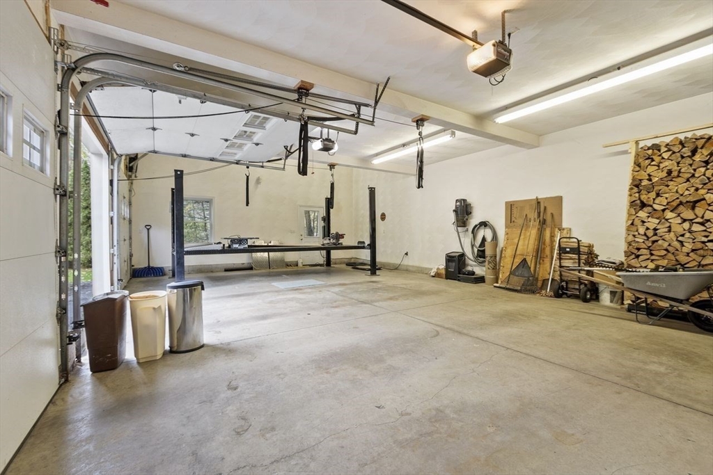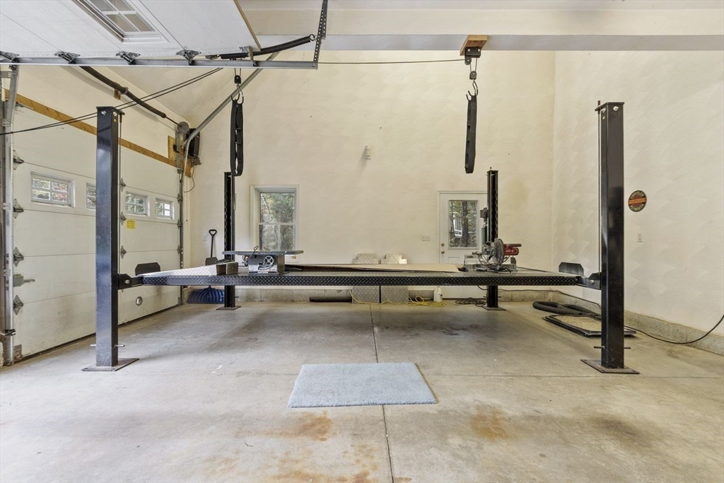 SANCTUARY!!! finds this gorgeous Cobtemporary Cape with soaring ceilings, Enter into the living room cathedral ceilings, wood fireplace and hardwood floors, everythingis light and bright and airy, then on to the open concept dining room with access to deck which runs the length of the house in back, and abuts lots of woods. then U-shaped kitchen which has tile floor and granite counters, and stainless steel appliances. Lastly you'll find 2 bedrooms off the living area. upstairs is your own private en suite primary bedroom with walk in closets and full bath. But the piece de resistance is the heated 3/4 car garage with its own lift which conveys, meander upstairs to a heated room with finished flooring and finished walls, this room could be anything you wish. Easy access to rte 2 for fast commute. Landscaped and irrigation system. True Paradise.