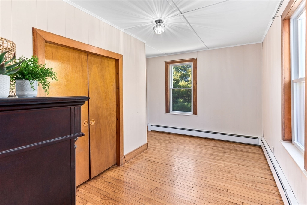 Welcome Home! Discover this charming 1920 farmhouse nestled on 4 acres of private, wooded land perfect for those who love peace, nature, and outdoor entertaining. Step inside to an inviting enclosed, heated porch, leading to a cozy front room ideal for guests or a home office. The kitchen and dining area are separated by a breakfast bar, creating a warm and functional layout. All bedrooms are located on the main floor, with a spacious 2-bedroom, 1-bath In-Law Suite upstairs, great for extended family or guests. The full basement offers ample storage plus a heated finished room perfect for a gym, studio, or hobby space. For the craftsman or hobbyist, enjoy a 3-car garage/workshop with wood stove, an additional recreation room, and extra storage areas throughout. Located in desirable North Attleboro, this home offers country charm with convenient access to shopping, restaurants, and major highways. Showings begin at the first Open Houses: Saturday 10/18 11-1PM and Sunday 10/19 2-4PM.