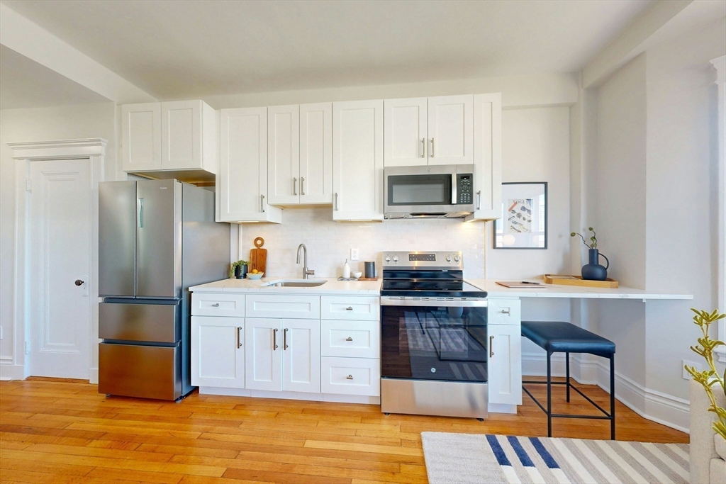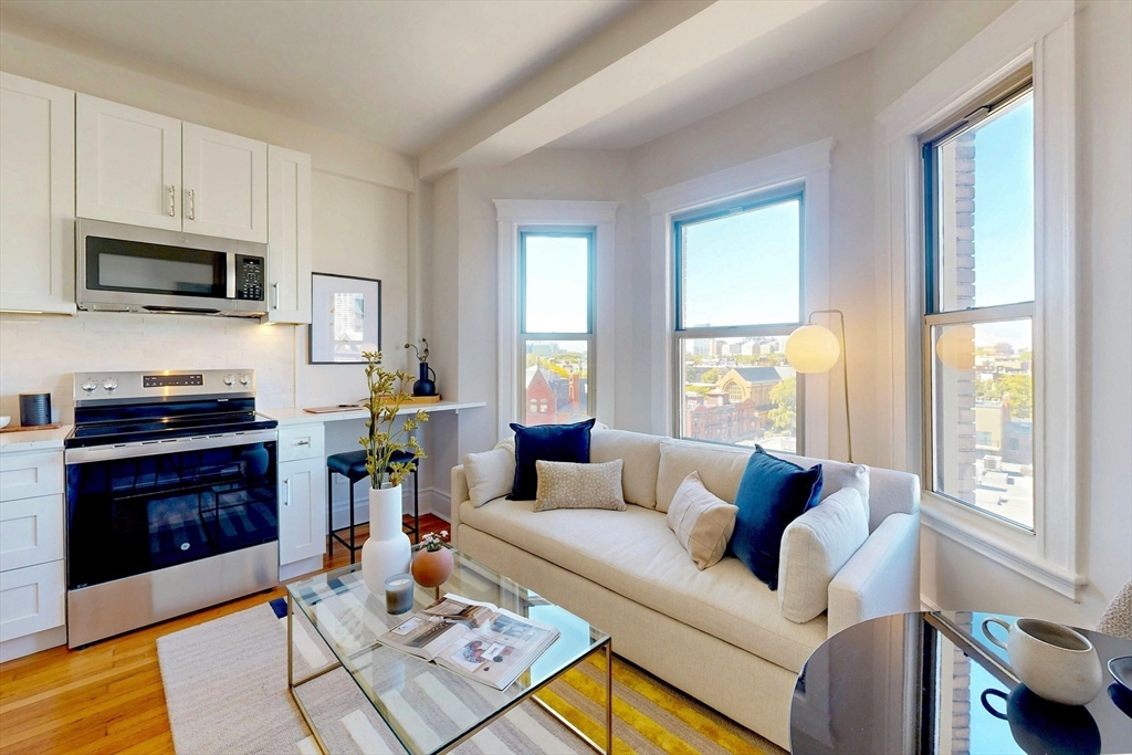Step into a slice of history at 270 Huntington Ave. Head to the 7th floor to enjoy sweeping views overlooking the renowned "Avenue of the Arts". This meticulously renovated, front-facing top floor unit offers modern living & features stainless steel appliances, elegant white cabinetry & oak floors. The open layout includes a convenient desk nook perfect for work/study & is pre-wired for a wall-mounted TV. Indulge in the chic modern bath, complete with a walk-in shower with glass surround. Located in a distinguished elevator building with 24-hour concierge and on-site super, the condo fee includes heat & hot water. Enjoy the bustling city right outside your door in Boston's cultural epicenter; just a stone's throw from Symphony Hall, Northeastern University, the New England Conservatory & Berklee College of Music. Enjoy the convenience of nearby Whole Foods, shopping, cafes & a diverse array of dining. Effortlessly connect to all major bus routes & the MBTA Orange & Green lines.