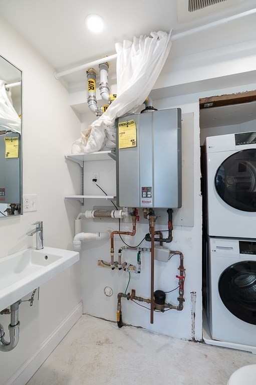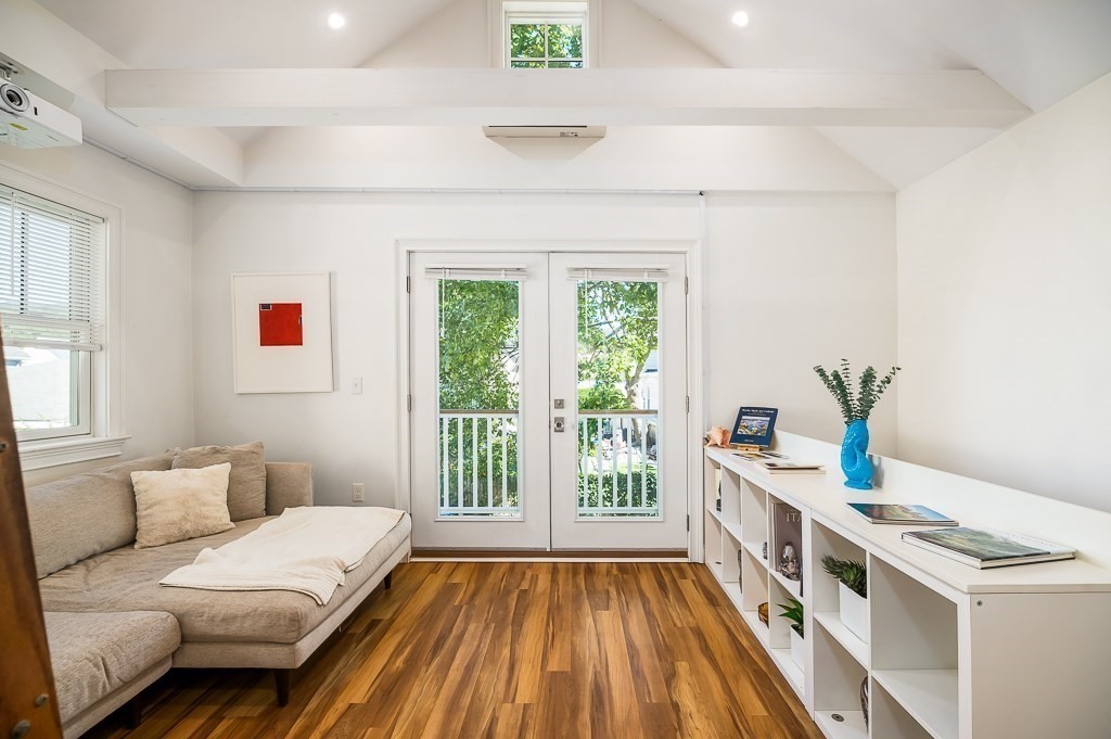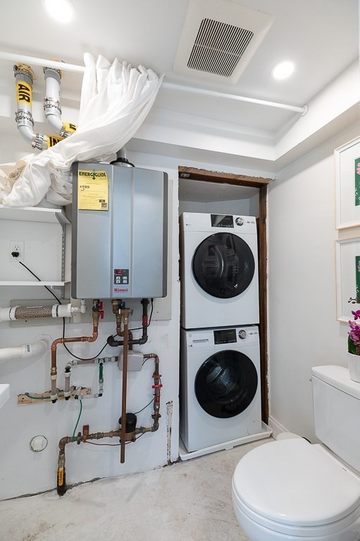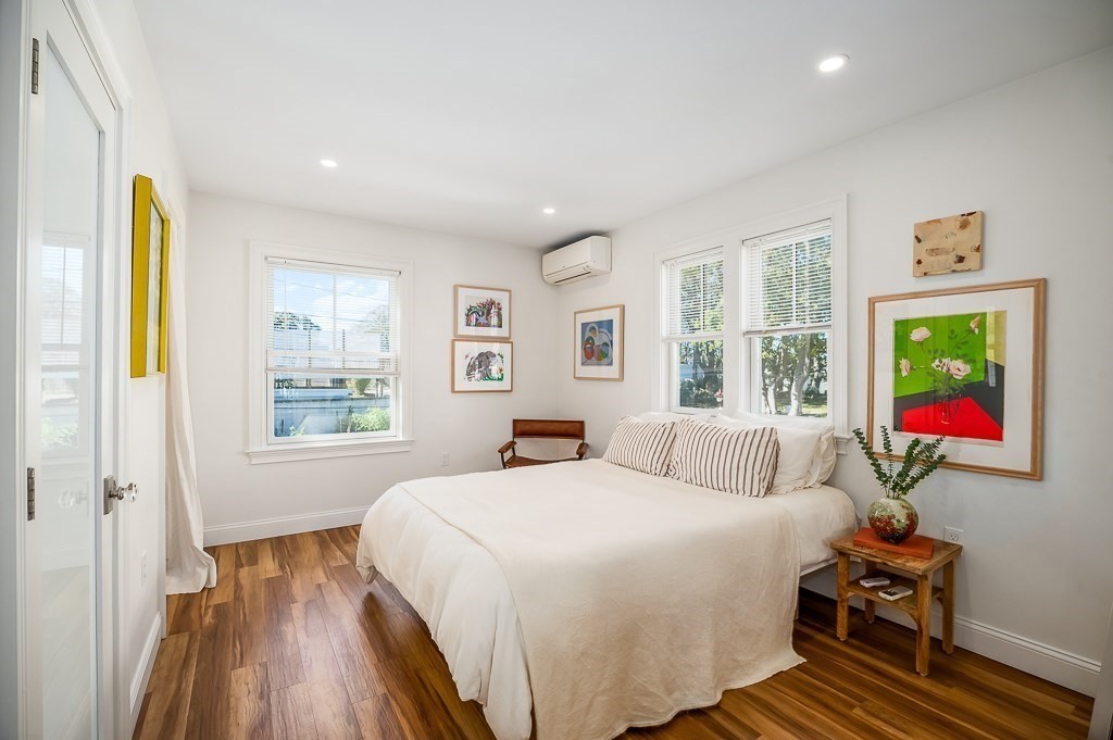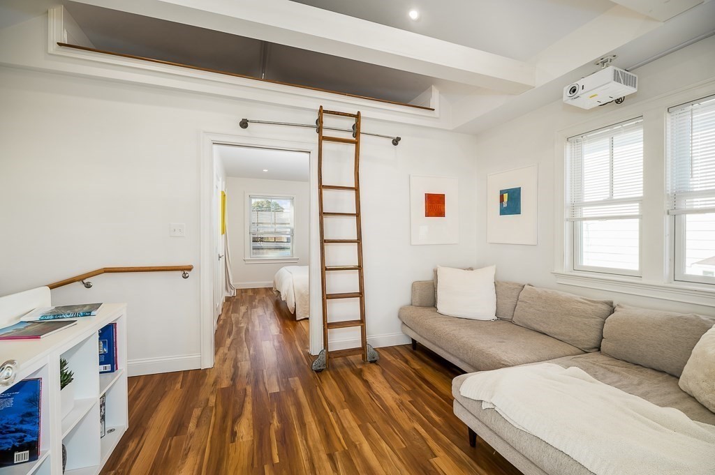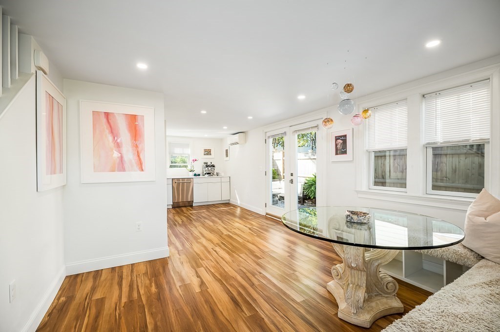Centrally located, recently updated colonel that is sure to please many potential buyers. The attention to detail was well thought out and crafted in this downtown home. On the first level you enter into an open Living area which has glass French doors leading to a fenced in patio with stone pavers and crushed white marble. The Kitchen has Silestone countertops, new gas Zline stove/oven, range hood, dishwasher and Summit refrigerator/freezer with ice maker. Off the Kitchen you will also find a half bath with an energy efficient Rinnai tankless gas water heater and a stackable washer/dryer.The second floor has a sitting room with a loft that could be used multiple ways. You enter the bedroom through pocket doors which has a walk in closet with Elfa custom design storage. The bathroom has a radiant heat tiled floor and a walk in shower with duel shower heads,Silestone countertop with a LED mirror.