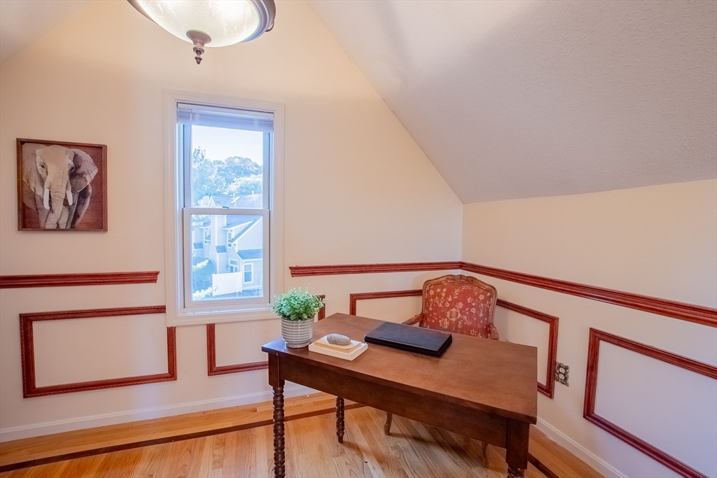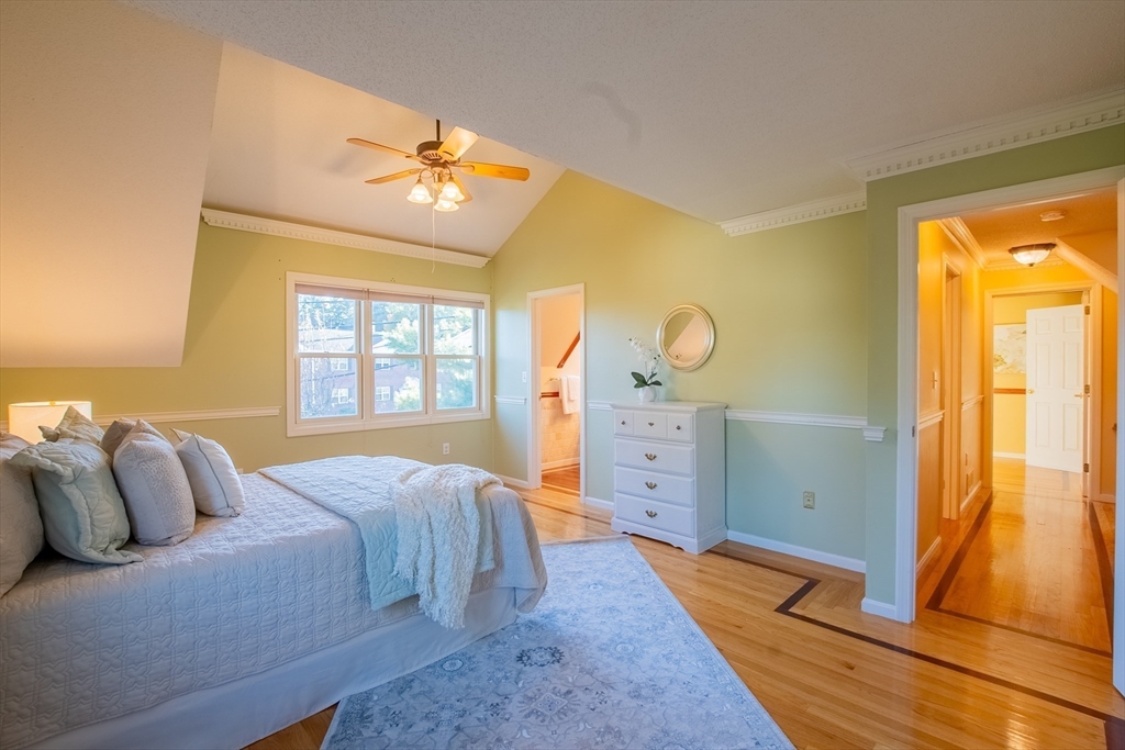 Welcome to Hammond Place! This sunny and spacious 2+ bedroom, 1.5-bath corner townhouse offers 1,676 sq. ft. of living space including a bright loft—ideal for a home office, guest bedroom, exercise or media space. The open living/dining room features newer lighting, crown molding, a cozy fireplace and French doors that open to a private deck surrounded by mature landscaping. A cheerful eat-in kitchen with stainless appliances and granite countertops . Enjoy central air, gas heat, and pet-friendly living in a well-managed community. Ideally located near Whispering Hill Park (0.4 mi) and Horn Pond (1.5 mi), with shopping and dining at Crossroads Center, Wayside Commons, and Burlington Mall—featuring Target, Whole Foods, Wegmans, Capital Grille, Seasons 52, and LL Bean. Just 2 miles to Lahey Hospital and minutes to I-93, I-95, and Woburn Village. The perfect blend of sunlight, comfort, and convenience! Won't Last!
