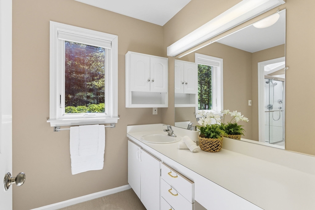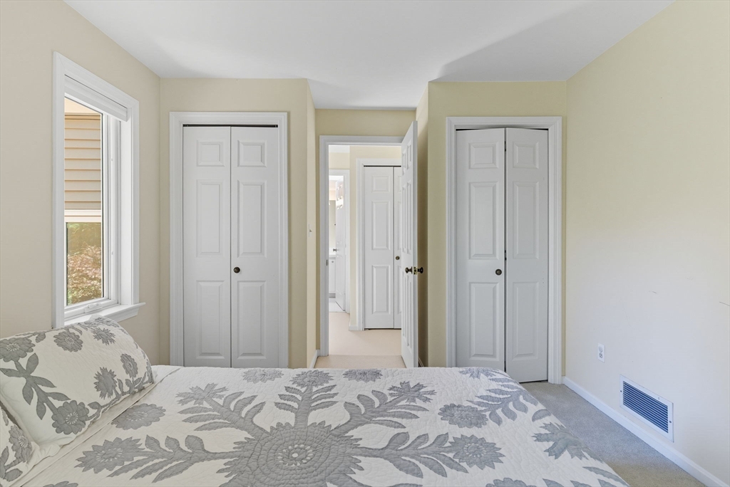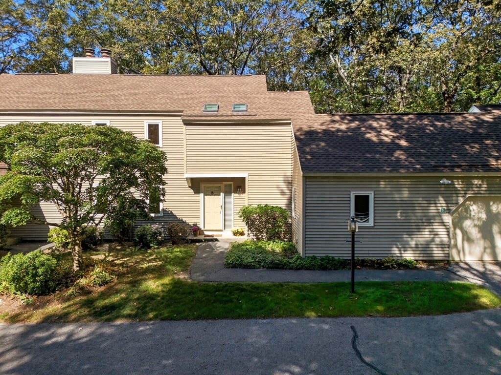 Tucked away on a cul-de-sac in tranquil Turkey Hill Village, this lovely townhouse lives like single-family w/ease of condo living. Surrounded by woods, it’s a suburban oasis minutes to MA-90, I-95, Rtes 30 & 9. Enjoy Wayland’s natural beauty, New England charm & top-rated schools-while staying close to Boston. Beautifully landscaped grounds welcome you home. Inside discover sun-filled spaces, gleaming hardwoods, open layout & peaceful wooded views. Living room has mantled fireplace, custom built-ins & picture window. Perfect home office or possible 1st-fl bed conversion. Open dining area w/slider to private patio ideal for relaxing or entertaining. Beautiful kitchen w/maple cabinets, farmer’s sink, backsplash, pantry & newer appliances. Upstairs offers spacious primary suite w/walk-in closet, built-in & sit-down shower. Good-sized 2nd bed & full bath. Basement storage & expansion potential. Replacement windows. Newer systems. Pro-managed, pet-friendly HOA w/pool & tennis/pickleball.