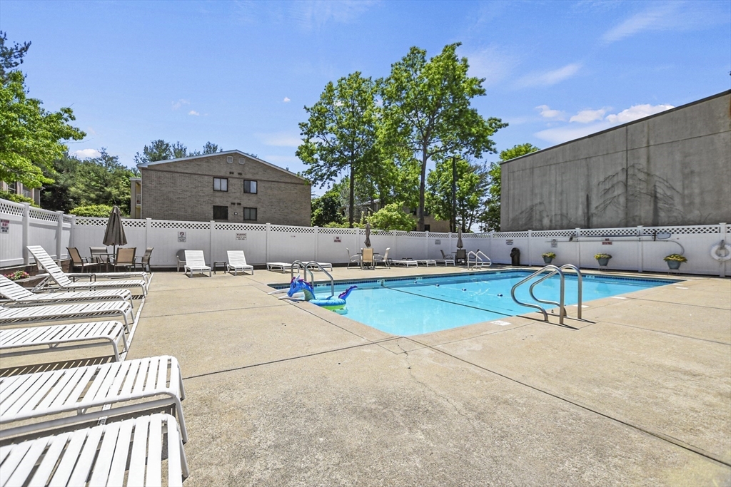This beautifully updated ground-level 2-bedroom condo offers comfort, convenience, and community amenities all in one package. Venture inside to find a bright kitchen with stainless steel appliances, generous cabinet storage, and a dedicated dining area. The expansive living room opens to a private patio, perfect for relaxing or entertaining. Both bedrooms are spacious with ample closet space, while the modern full bath features a tiled shower and the added bonus of in-unit laundry & equipped with central A/C. Enjoy the benefits of a well-maintained community, including professionally landscaped grounds, an in-ground pool with clubhouse, and private access to walking trails. With easy access to highways, shopping, and restaurants, this condo truly delivers a lifestyle of comfort and convenience. Move right in and start enjoying everything The Courtyards has to offer!