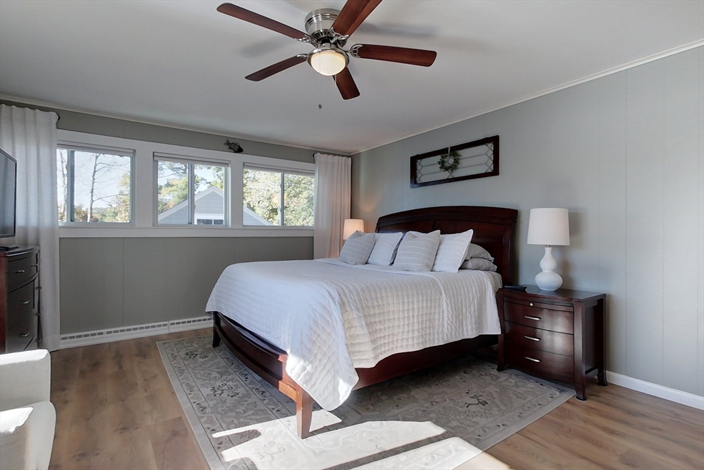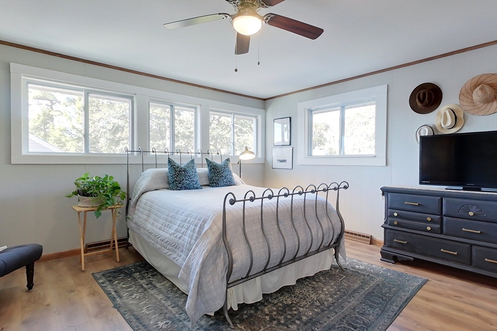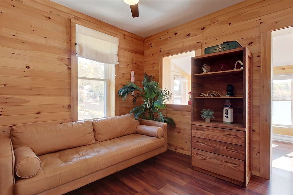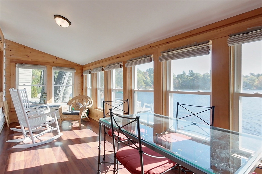 Experience year-round waterfront living on nearly 2.5 acres w/ over 400 ft of frontage! This stunning 2-bedroom raised ranch w/ a detached 1-bedroom lofted cottage—each w/ its own kitchen & living area—has been beautifully updated throughout. Enjoy new floors, counters, & island, fully renovated baths, added electric fireplaces, & new garage doors and insulation (2019). The main home’s open layout showcases a grand kitchen w/ white shaker cabinets, stainless farmers sink, & coffered ceilings that flow into a sun-drenched living & dining area wrapped in 14 windows framing serene water views. Both bedrooms feature private ensuites. Outdoors, enjoy professionally landscaped grounds, an outdoor shower, new dock (power boats welcome), fire pit area, & oversized heated garage. The unfinished lower level offers excellent storage or future expansion. The charming guest cottage completes this private, picturesque retreat. Showings begin at an Open House on Sat, 10/18 from 11:00-1:00.