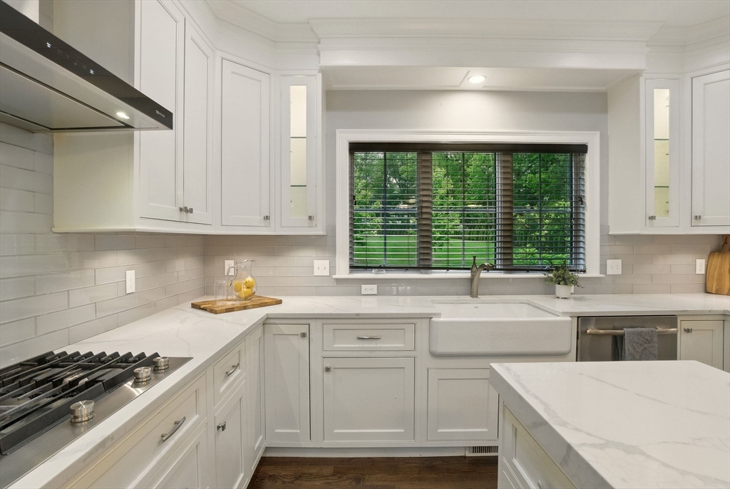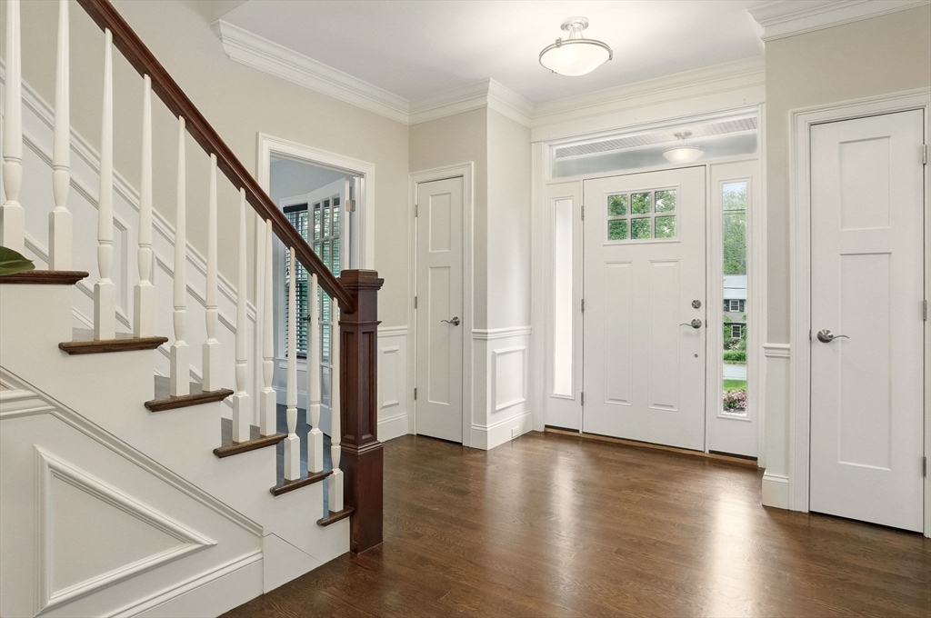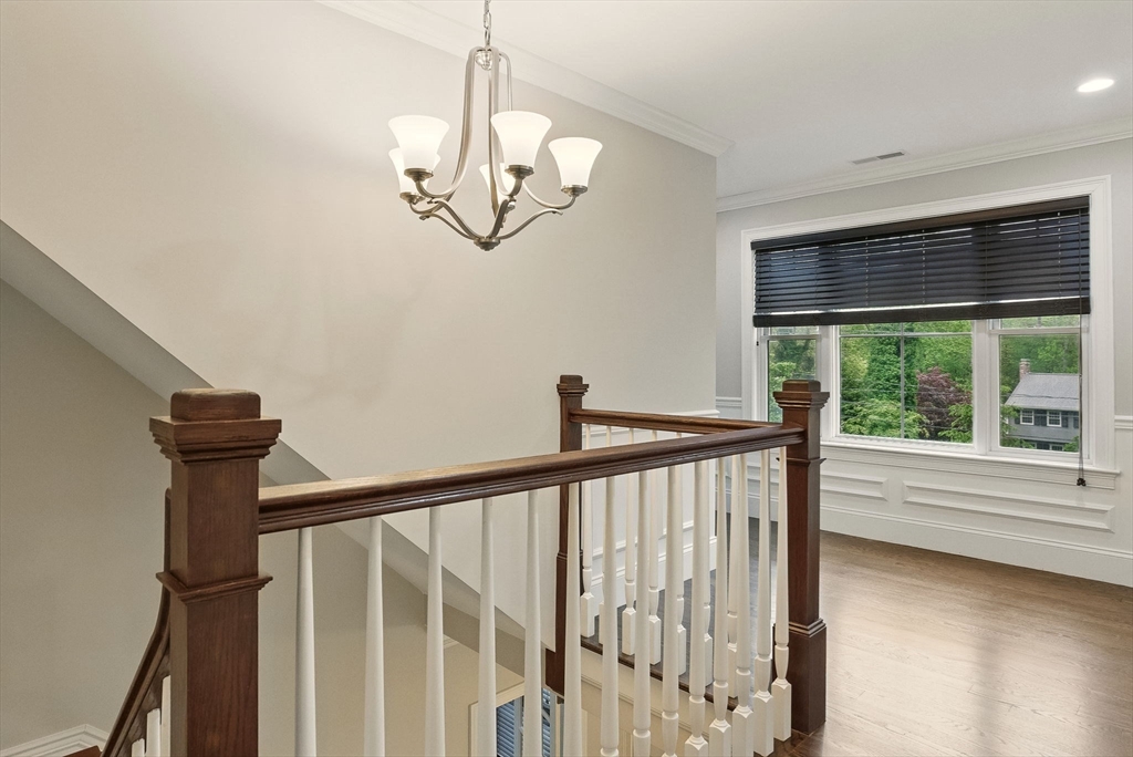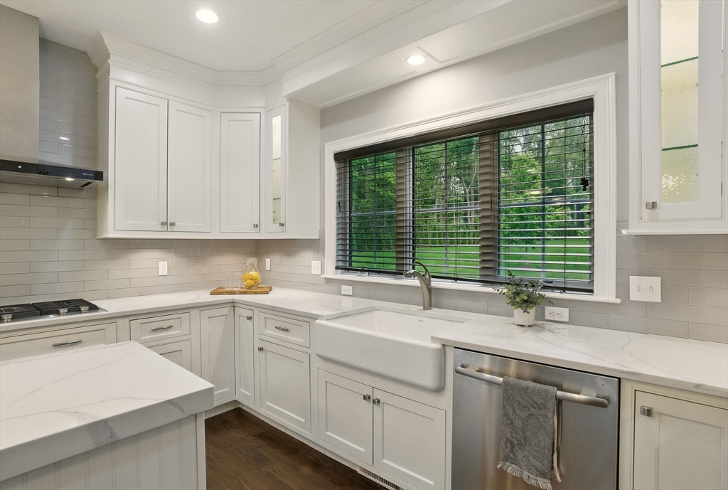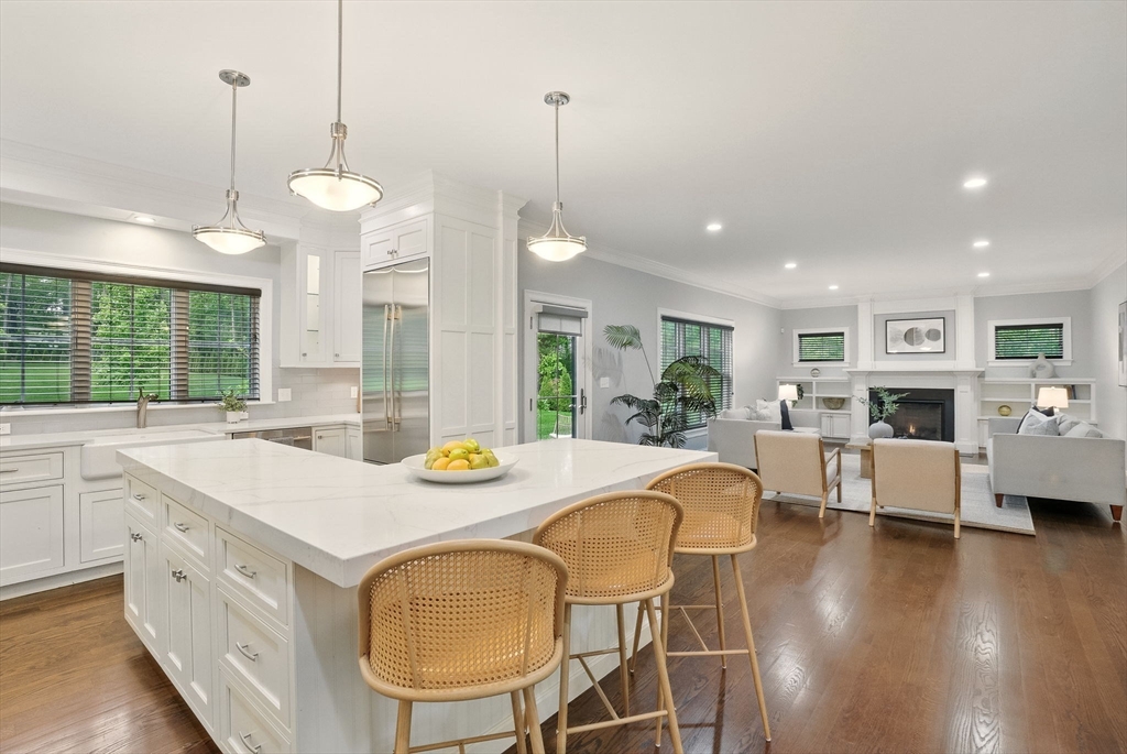 This hallmark home on desirable Fox Run is defined by beautiful curb appeal on the exterior and amazing touches and designer features on the interior! Step inside to find a gracious and ideal floor plan, with the chef's kitchen at the heart of it all- featuring stylish white cabinets, quartz counters, a Kohler farmhouse sink, stainless Jenn-Aire appliances and a great island! The bar area w/ built in beverage fridge is great for entertaining- which you will do with ease in your 26x16 family room, anchored by a beautiful gas fireplace w/ custom built-in surround. Need a 1st floor bed w/ full bath? We have you covered! Upstairs you will find 5 more bedrooms- incl the main primary w/ fireplace, gorgeous bathroom, walk in closet- plus another huge en-suite plus 2 other bedrooms share a Jack/Jill bath. Finished 3rd floor plus tricked out finished lower level w/ full bath as well! and the outside!!! HUGE acre fenced in yard- southern facing w/ sports court, patio w/ firepit, room for pool!!