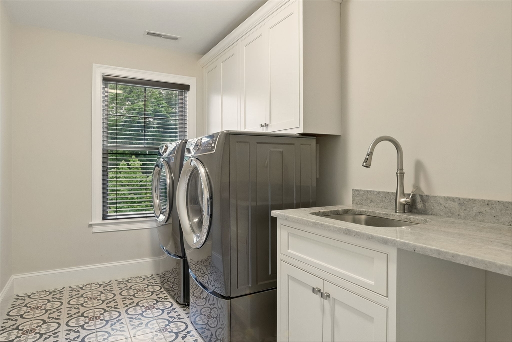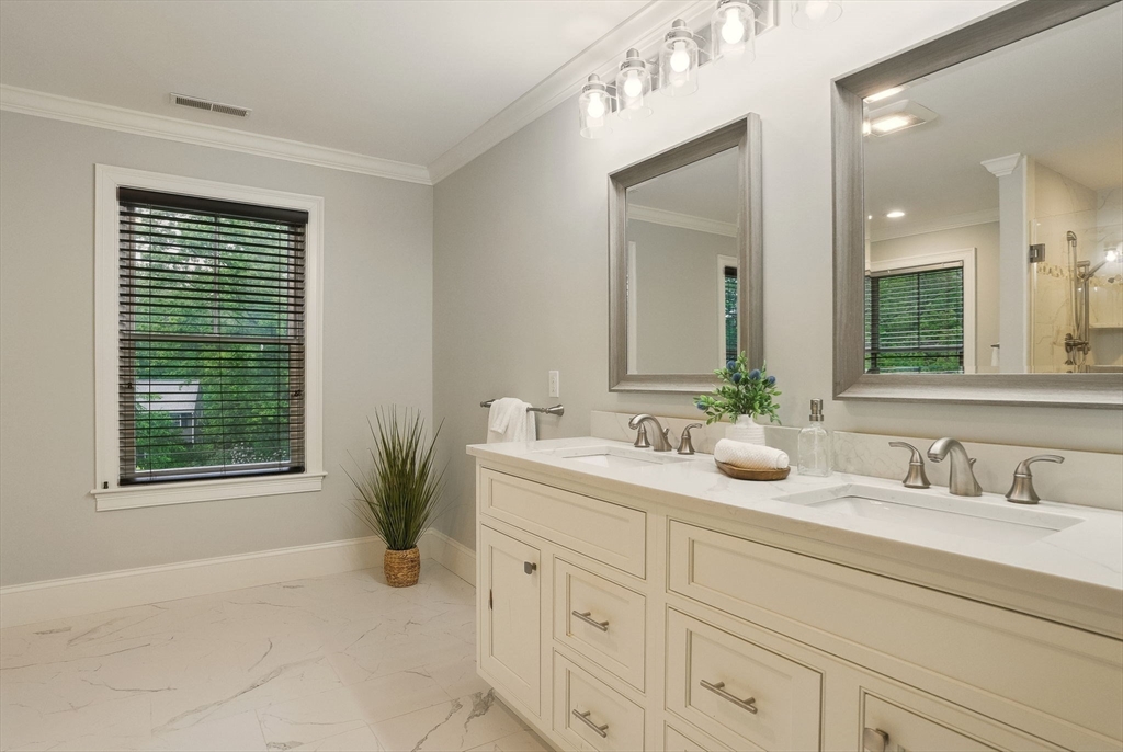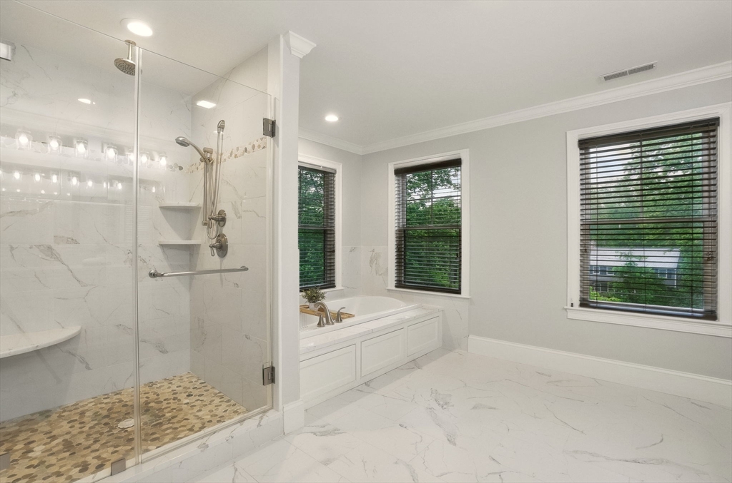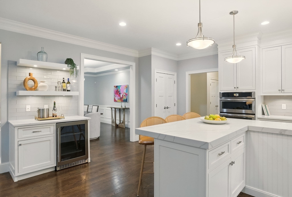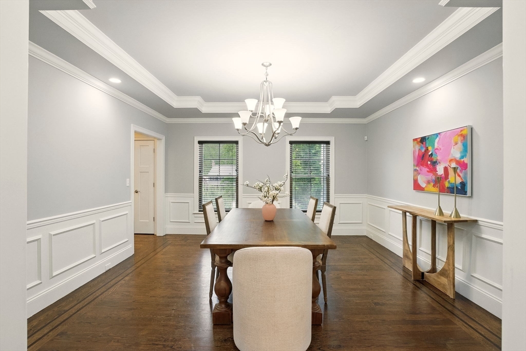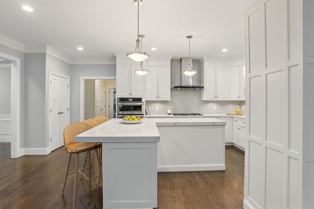This hallmark home on desirable Fox Run is defined by beautiful curb appeal on the exterior and amazing touches and designer features on the interior! Step inside to find a gracious and ideal floor plan, with the chef's kitchen at the heart of it all- featuring stylish white cabinets, quartz counters, a Kohler farmhouse sink, stainless Jenn-Aire appliances and a great island! The bar area w/ built in beverage fridge is great for entertaining- which you will do with ease in your 26x16 family room, anchored by a beautiful gas fireplace w/ custom built-in surround. Need a 1st floor bed w/ full bath? We have you covered! Upstairs you will find 5 more bedrooms- incl the main primary w/ fireplace, gorgeous bathroom, walk in closet- plus another huge en-suite plus 2 other bedrooms share a Jack/Jill bath. Finished 3rd floor plus tricked out finished lower level w/ full bath as well! and the outside!!! HUGE acre fenced in yard- southern facing w/ sports court, patio w/ firepit, room for pool!!