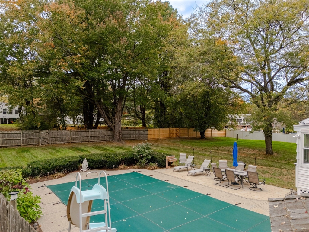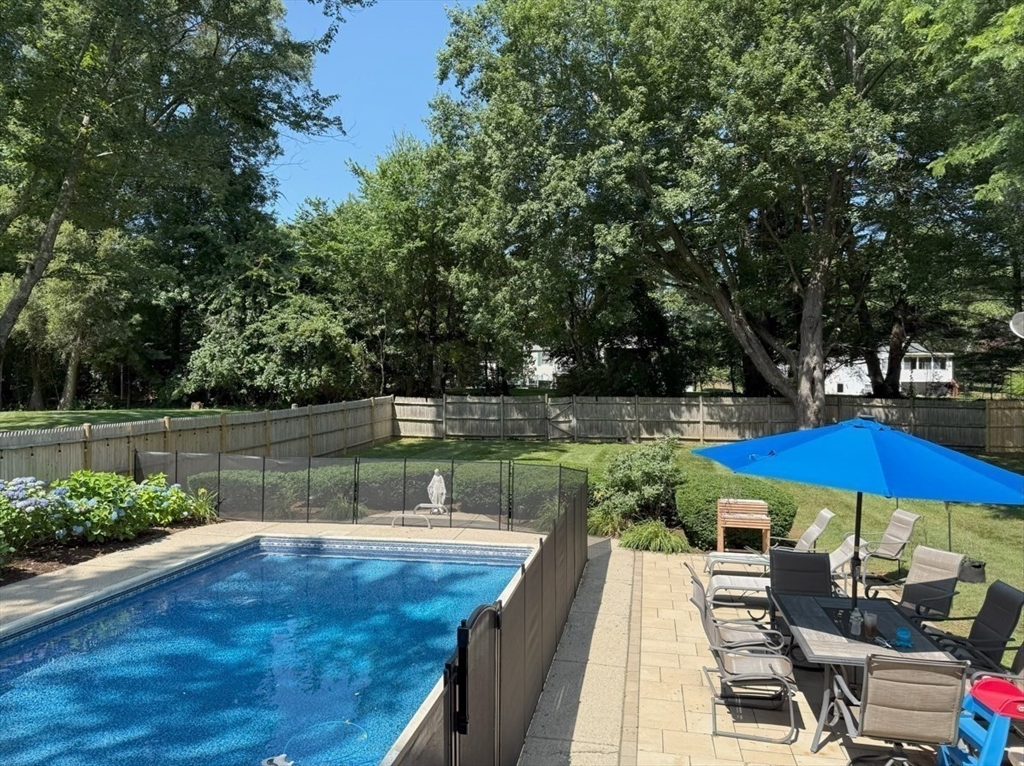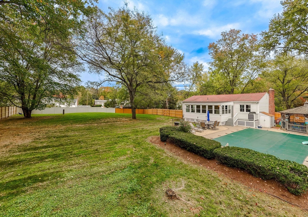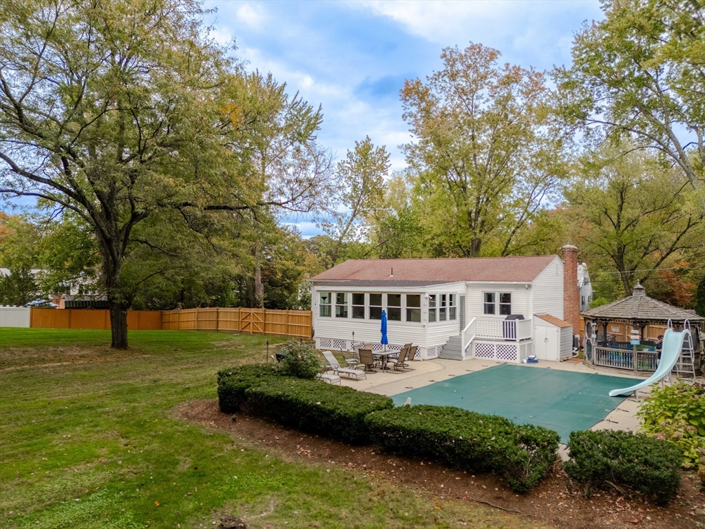 Beautiful East Holliston ranch offering comfort, updates, and an incredible backyard. Set on over half an acre of level, fenced-in land, the outdoor space includes a heated in-ground pool with slide and safety fence, a spacious patio, and a gazebo—perfect for relaxing or entertaining. Inside, hardwood floors run throughout the main level with three comfortable bedrooms and efficient gas heating with central air (2019) plus a new water heater (2023). The finished lower level features a gas fireplace, bar, and recreation area, providing plenty of flexible space. Located in a desirable East Holliston neighborhood, this move-in-ready home combines modern updates with exceptional outdoor living.