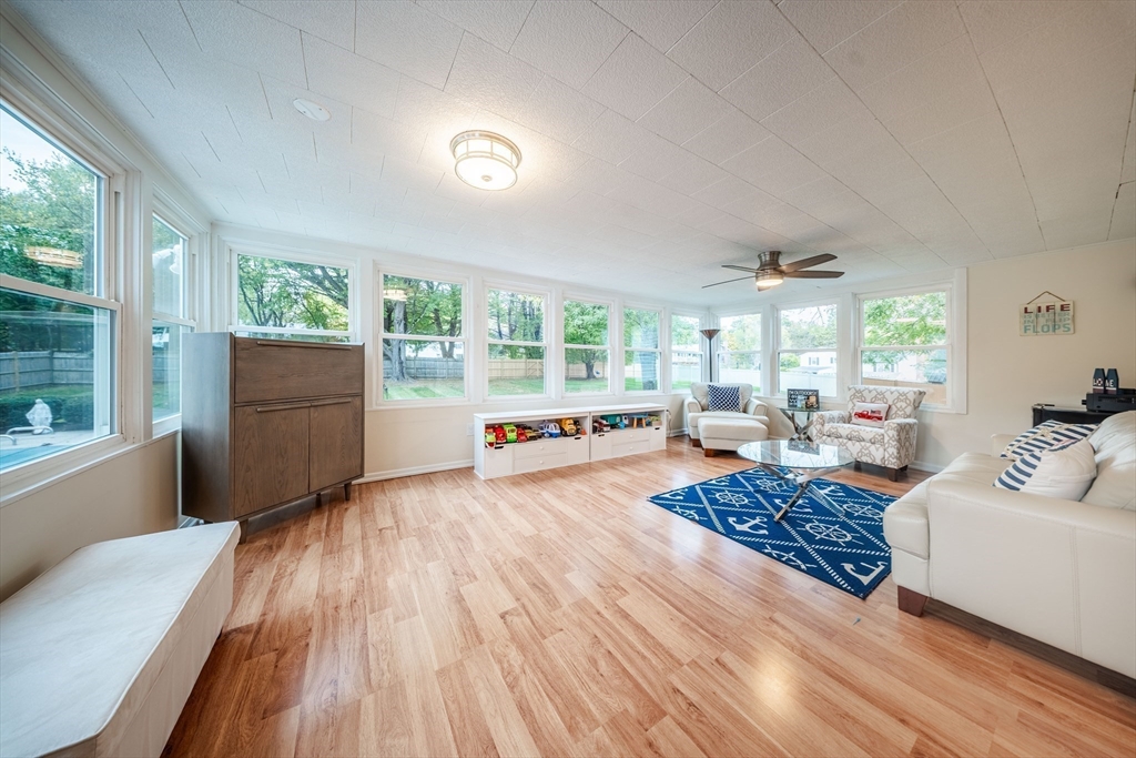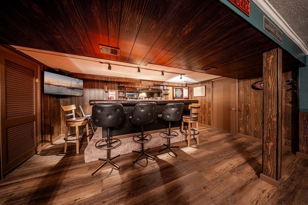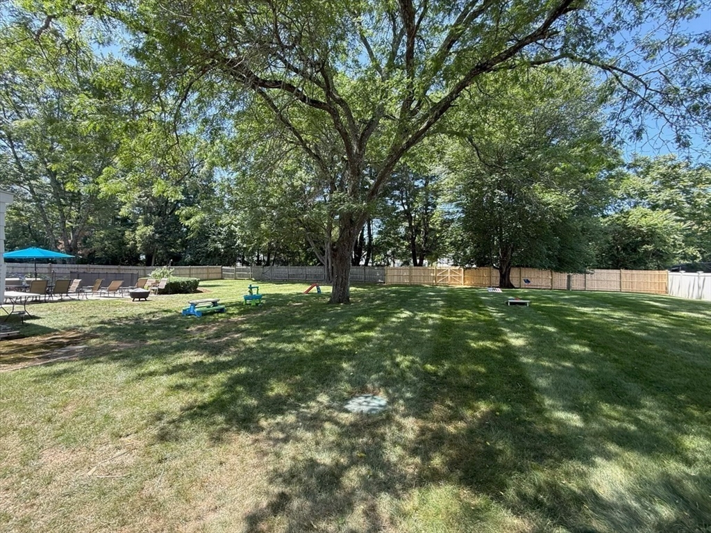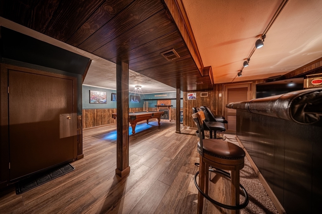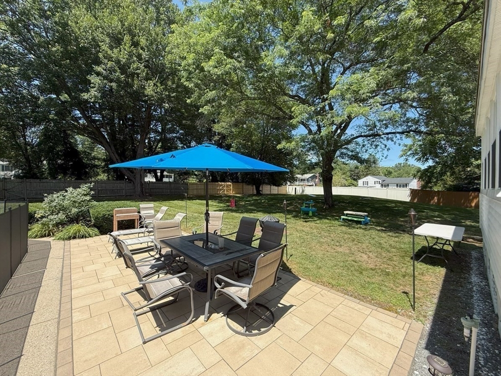 Beautiful East Holliston ranch offering comfort, updates, and an incredible backyard. Set on over half an acre of level, fenced-in land, the outdoor space includes a heated in-ground pool with slide and safety fence, a spacious patio, and a gazebo—perfect for relaxing or entertaining. Inside, hardwood floors run throughout the main level with three comfortable bedrooms and efficient gas heating with central air (2019) plus a new water heater (2023). The finished lower level features a gas fireplace, bar, and recreation area, providing plenty of flexible space. Located in a desirable East Holliston neighborhood, this move-in-ready home combines modern updates with exceptional outdoor living.